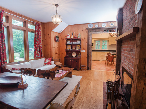 Enchanting Storybook Home - Fully Renovated & Move-In Ready This one-of-a-kind home has been impeccably renovated from top to bottom, offering timeless charm and modern convenience. Every detail has been thoughtfully curated, with no expense spared in perfecting this exceptional residence. From the moment you arrive, you'll be captivated by its character and craftsmanship. Inside, the home features rich pine walls, custom finishes, and beautifully designed living spaces. The dramatic cathedral-style living room is a true showstopper, with exposed wood beams, expansive wraparound windows, and a stunning floor-to-ceiling fireplace. The kitchen is equally impressive-designed for both form and function with top-tier materials that will inspire any home chef. The seamless indoor-outdoor flow leads to breathtaking outdoor living spaces. Enjoy multiple flagstone and brick patios surrounded by lush, professionally landscaped gardens-ideal for relaxing or entertaining. A classic cedar shake roof completes the fairytale aesthetic. This rare property effortlessly blends classic charm with high-end updates, offering beauty, comfort, and ease of living. Move-in ready and truly unforgettable-don't miss your chance to own this special home.