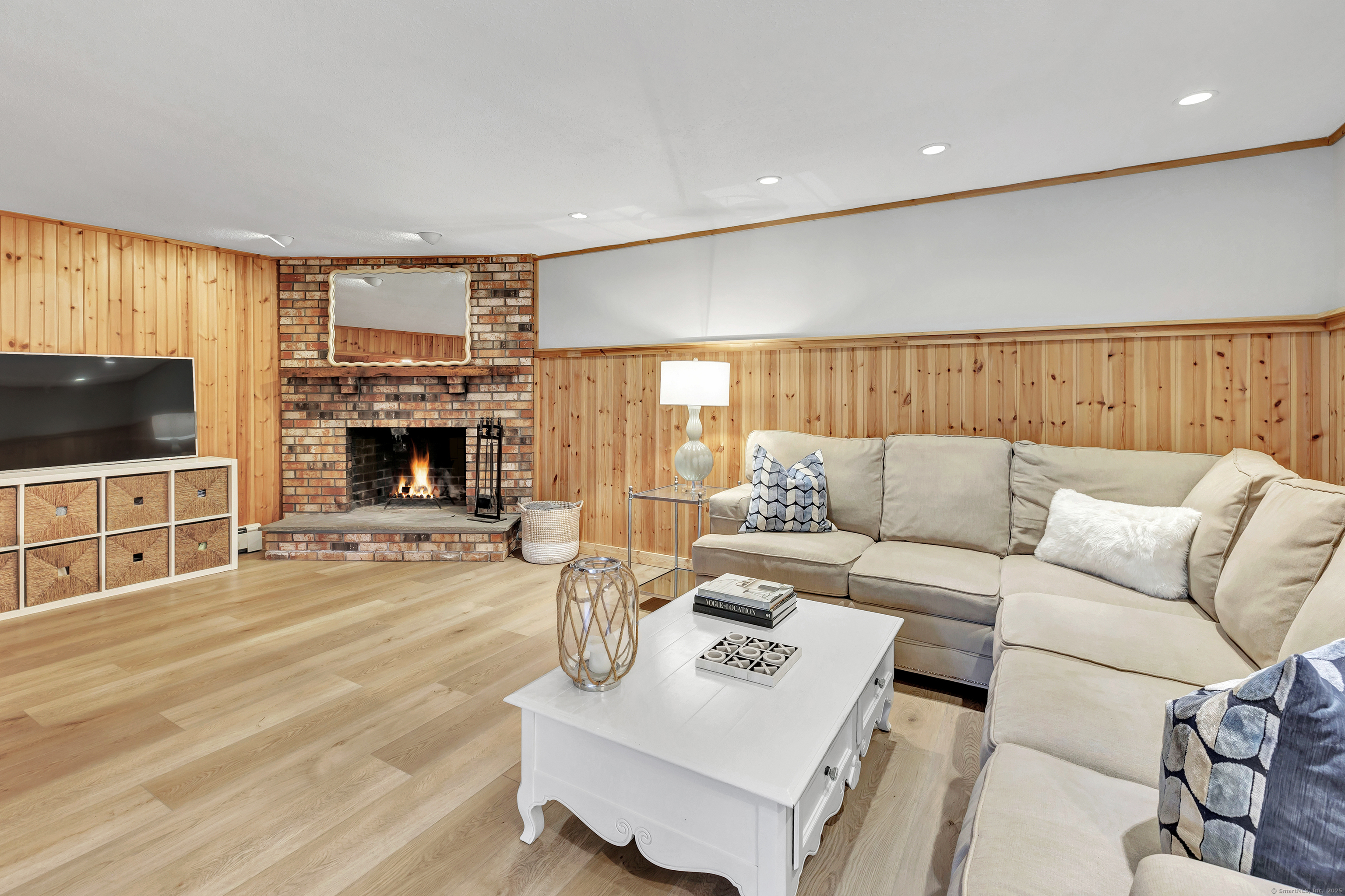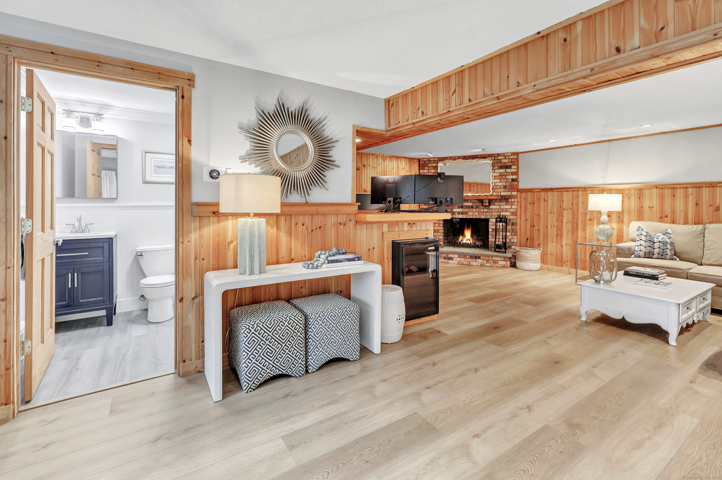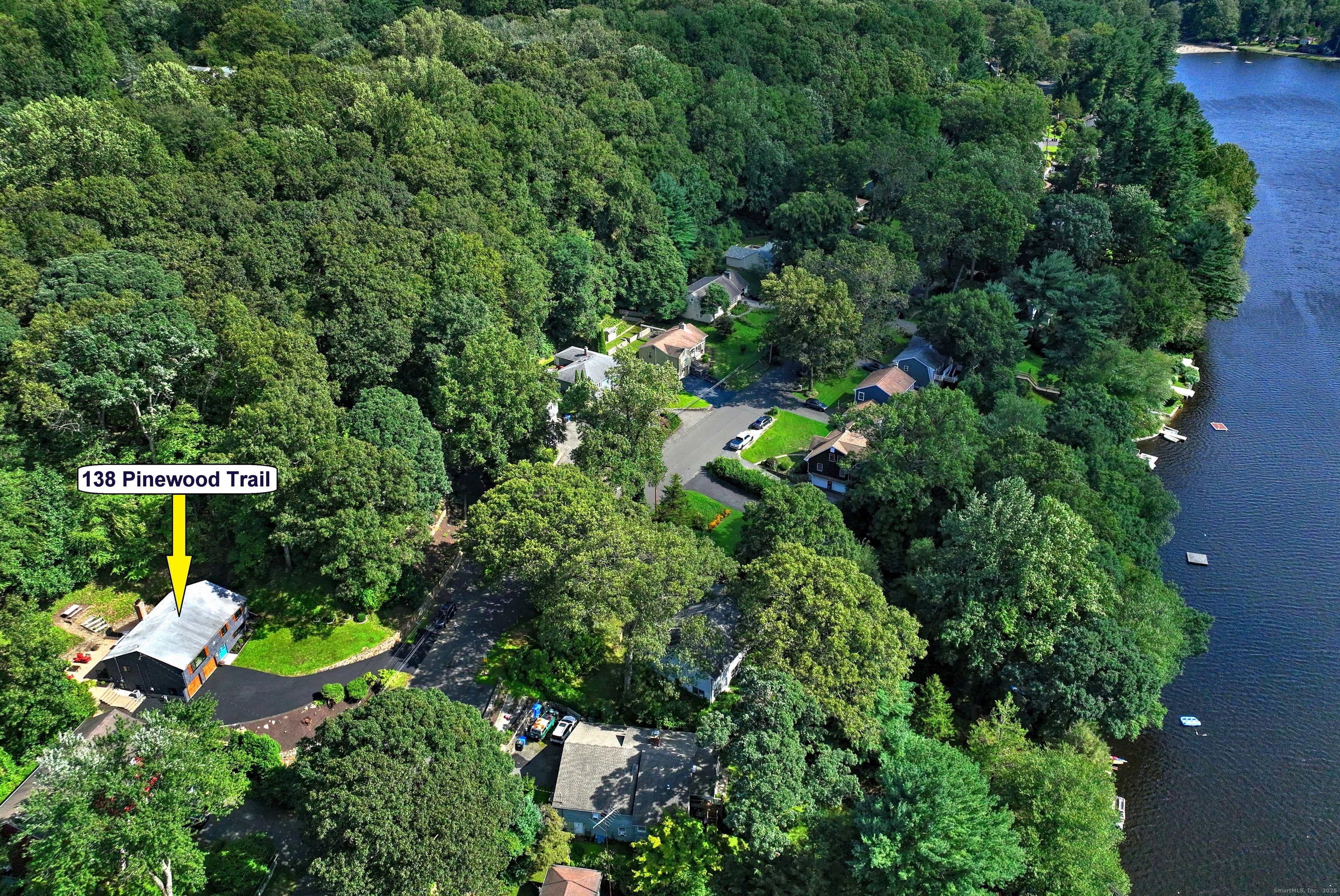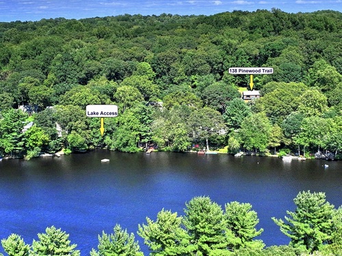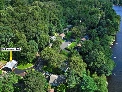 Discover the charm of lakeside living at Pinewood Lake! This beautifully updated raised ranch offers seasonal water views of the lake and an optional Pinewood Lake Association membership w/year-round activities. Offering 2,038 SF ft of living space, this 3-bedroom, 2.5-bath home is perfect for those seeking both comfort & convenience. Step inside to find an inviting layout with beautiful hardwood floors. Enjoy lake views from the spacious living room, while the kitchen opens to an amazing 1,000 sq ft stone patio w/brick pavers & an outdoor fireplace ideal for relaxing or entertaining. The kitchen is fully outfitted w/modern appliances, including double ovens, an induction cooktop, & breakfast bar, making it a dream for anyone who loves to cook. The primary bedroom features custom-built storage & an ensuite bathroom with a double shower & quartz vanity. On the lower level, you'll find a comfy space with wood paneling, a fireplace, built-in bar & wine chiller, and an additional half bath & laundry area. Recent updates include central air, newer windows, and a Smart Home system for added convenience. The home also features a large two-car garage with extra storage. For those who enjoy lake activities, as a owner you have the option of becoming a member of the Pinewood Lake Association with access to Pinewood Lake. Your membership is optional but gives you access to swimming, fishing, boating, & a renovated clubhouse w/year round social events & activities for your whole family.