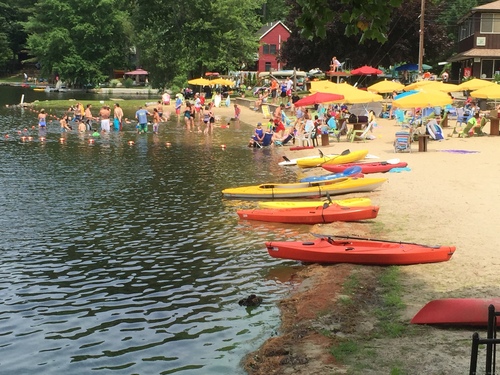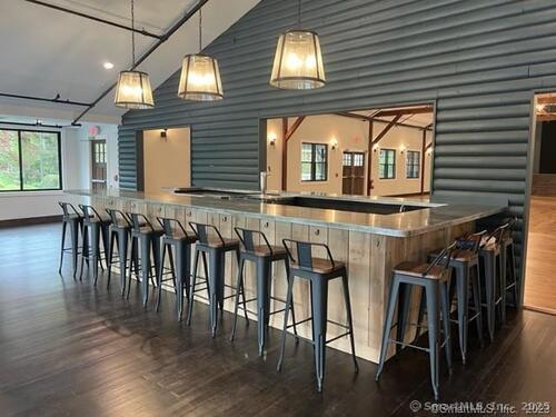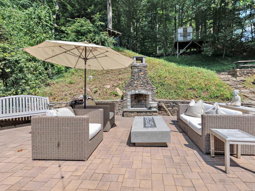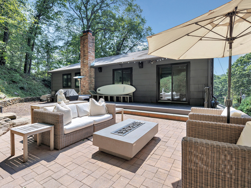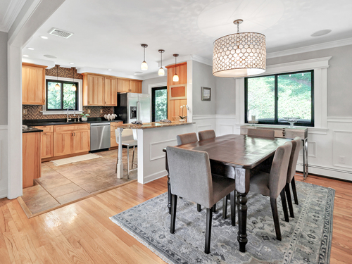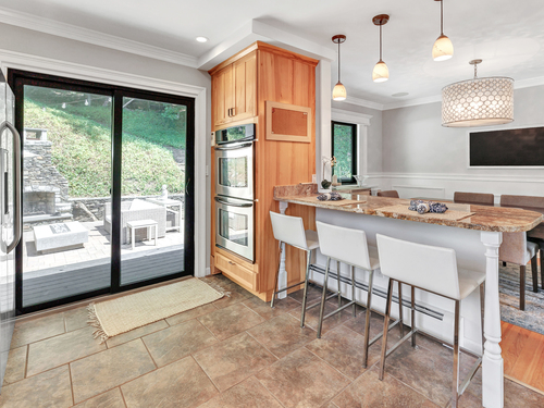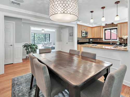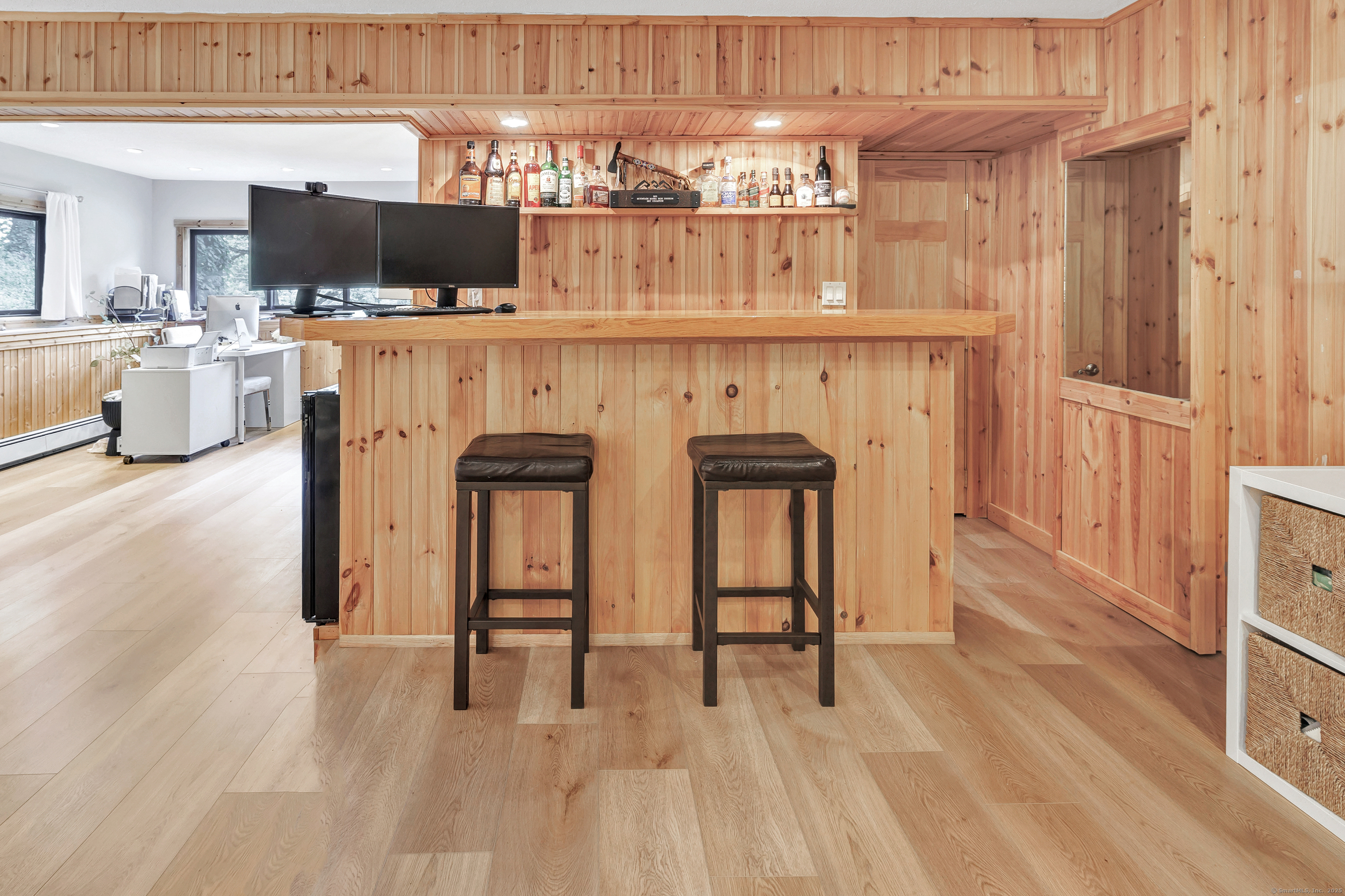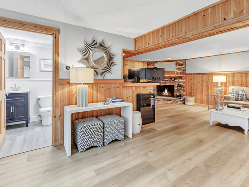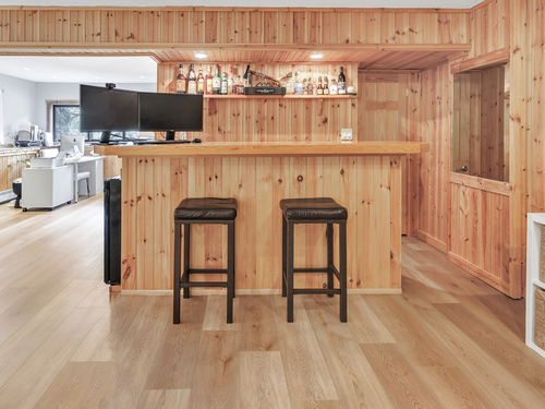 Discover the charm of lakeside living at Pinewood Lake! This beautifully updated raised ranch offers seasonal water views of the lake and an optional Pinewood Lake Association membership w/year-round activities. Offering 2,038 SF ft of living space, this 3-bedroom, 2.5-bath home is perfect for those seeking both comfort & convenience. Step inside to find an inviting layout with beautiful hardwood floors. Enjoy lake views from the spacious living room, while the kitchen opens to an amazing 1,000 sq ft stone patio w/brick pavers & an outdoor fireplace ideal for relaxing or entertaining. The kitchen is fully outfitted w/modern appliances, including double ovens, an induction cooktop, & breakfast bar, making it a dream for anyone who loves to cook. The primary bedroom features custom-built storage & an ensuite bathroom with a double shower & quartz vanity. On the lower level, you'll find a comfy space with wood paneling, a fireplace, built-in bar & wine chiller, and an additional half bath & laundry area. Recent updates include central air, newer windows, and a Smart Home system for added convenience. The home also features a large two-car garage with extra storage. For those who enjoy lake activities, as a owner you have the option of becoming a member of the Pinewood Lake Association with access to Pinewood Lake. Your membership is optional but gives you access to swimming, fishing, boating, & a renovated clubhouse w/year round social events & activities for your whole family.