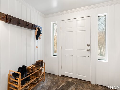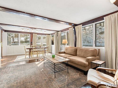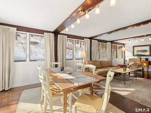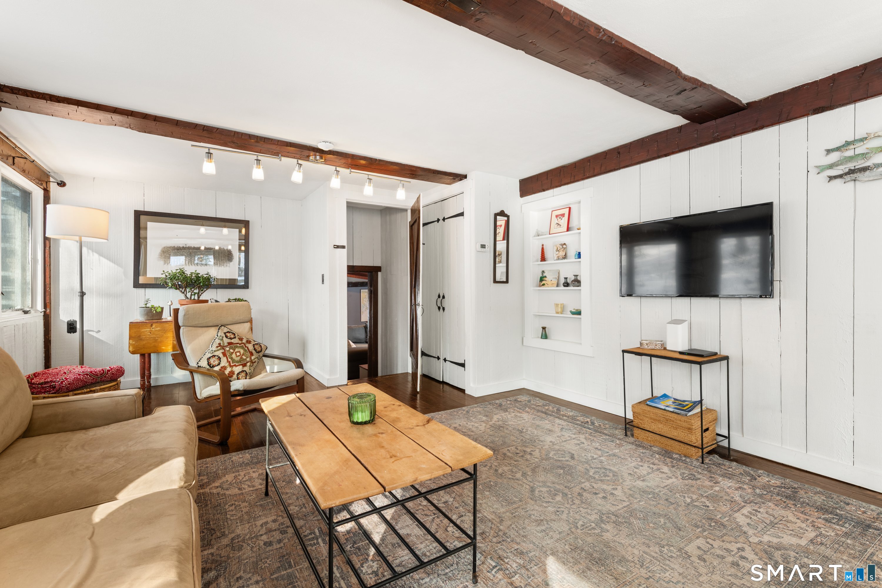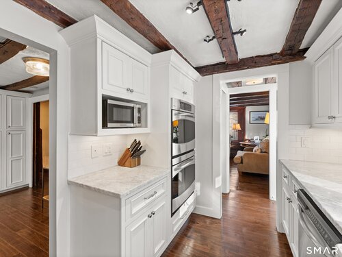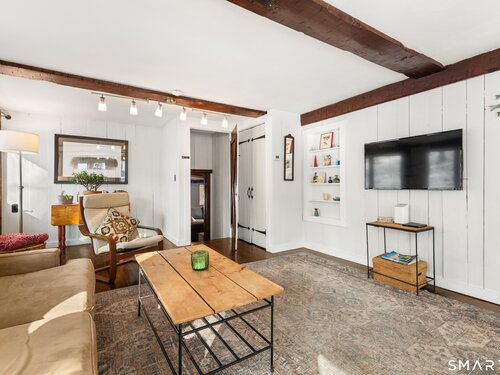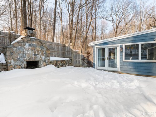 A rare and beautifully updated New England Cape offering timeless character and a private backyard retreat with heated in-ground pool and newly designed patio and outdoor fireplace. Inside, old-world craftsmanship blends seamlessly with refined updates. The gourmet eat-in kitchen is filled with natural light and features white granite countertops, a basket-weave marble backsplash, premium stainless appliances, double ovens, wine refrigerator, and a bay window overlooking the fenced pool area and outdoor stone fireplace - perfect for entertaining. Architectural details include a dramatic original stone wood-burning fireplace, wide plank floors, exposed beams, curved wood spindle staircase, skylights, and authentic period elements throughout. Thoughtful upgrades include newer roof and gutters, central air, blown-in insulation, renovated designer bath, new oil tank, new pool pump and newer paved driveway. Spacious sunlit bedrooms, beautifully updated baths, open living spaces, and seamless main-level access to the pool and level yard complete the home. Ideally located in Southern Bethel, 5 minutes to Metro-North for effortless New York commute.