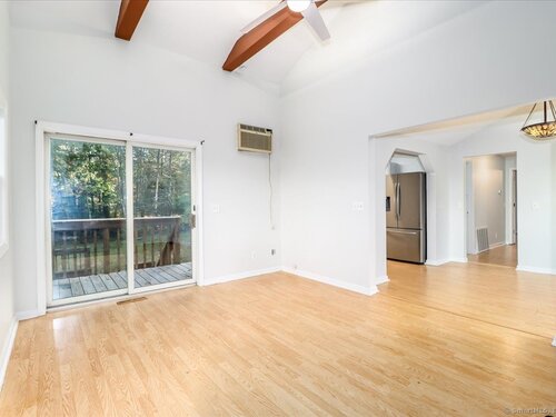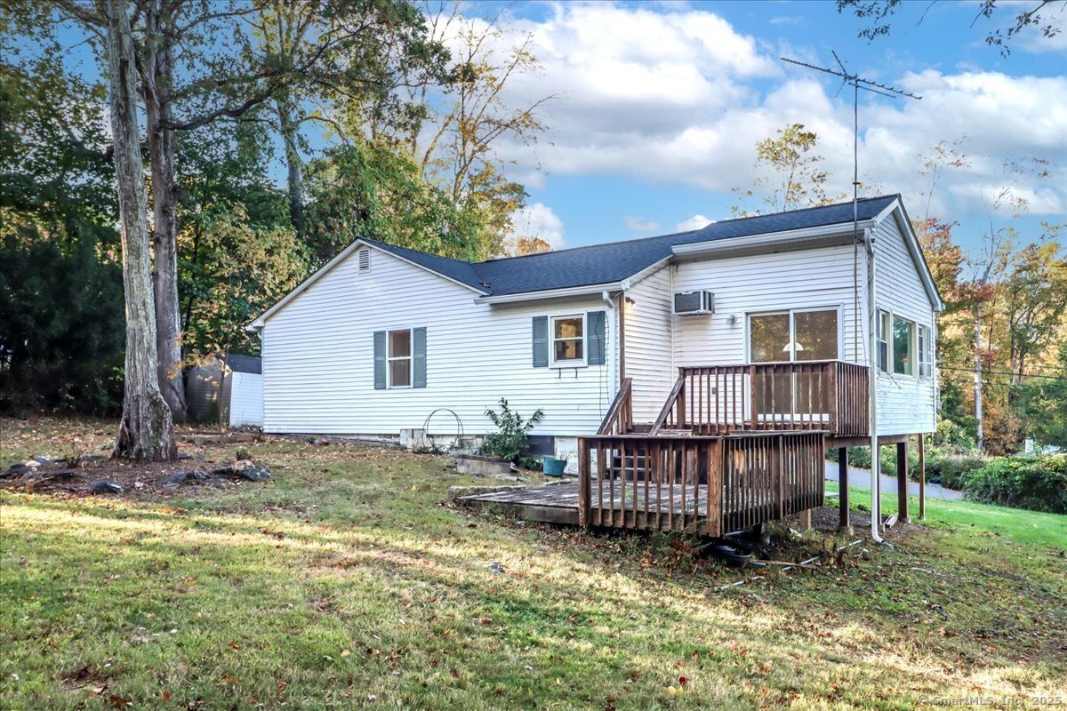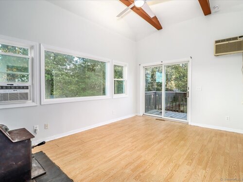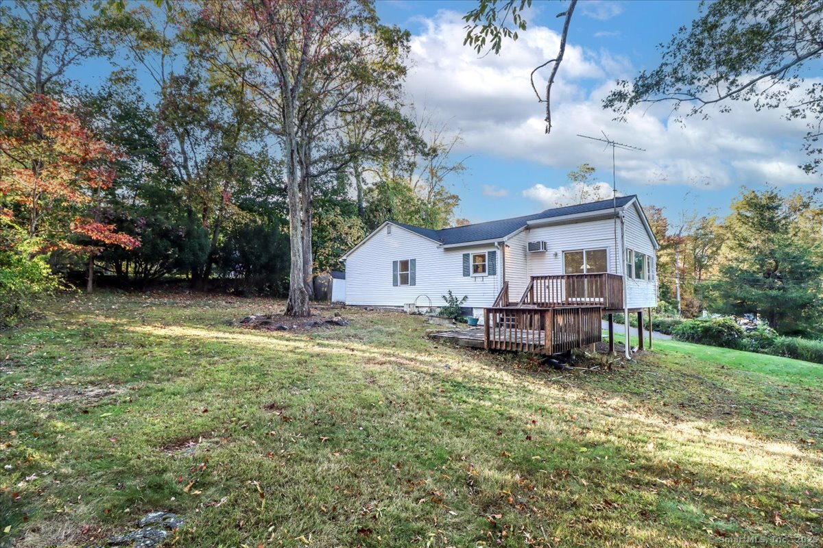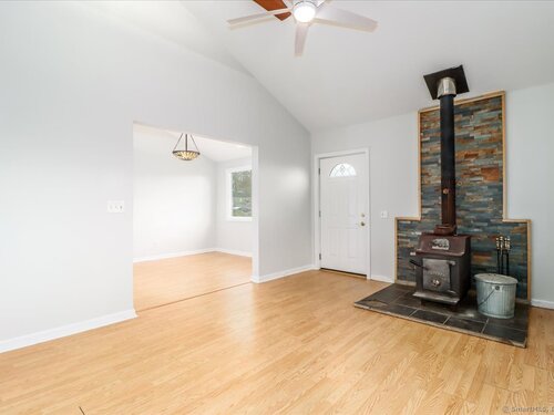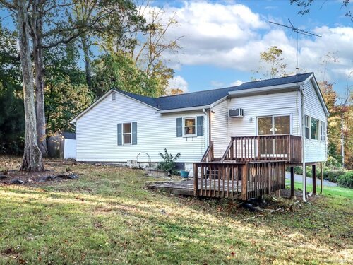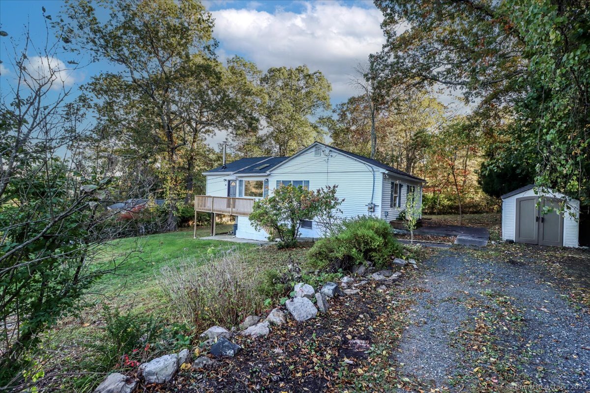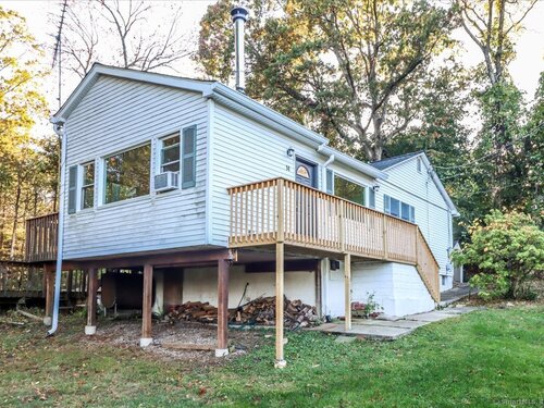 Welcome to this charming and light-filled home offering soaring beamed ceilings, a skylight, and a large picture window framing beautiful seasonal views of Candlewood Lake. The inviting family room features a cozy wood-burning stove, while the spacious primary bedroom includes a walk-in closet with built-in shelving. A second bedroom provides a generous closet for additional storage. The full bath has been tastefully renovated and includes newer washer and dryer. Outside, you can relax on the deck or patio overlooking the open yard and enjoy your new home!