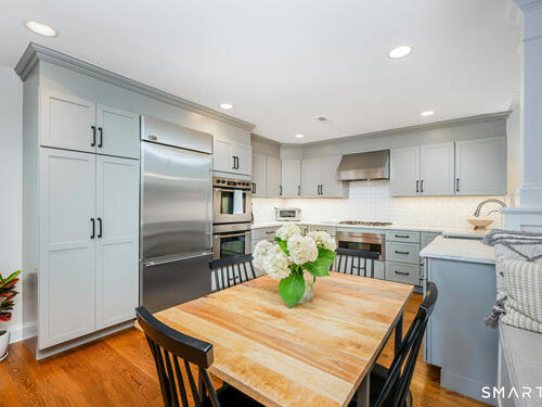 Highest and Best by Sunday, 1/25/26 at 5:00PM. PLEASE SEE MANAGING MULTIPLE OFFER GUIDLINES IN SUPPLEMENTS. Completely re-architected in 2003- with many recent updates-this stunning, 4 bedroom, 3 full bath home is truly move-in ready. Beautifully situated on a desirable cul-de-sac, the main level offers a sun-filled, open-concept with a thoughtfully remodeled kitchen with high-end SS appliances, Thermador gas cooktop, Bosch double ovens, and quartz counters. The adjacent family room for gatherings has hardwood floors and a cozy fireplace accented by a hand-hewn mantle beam. The first floor also includes a versatile office/bedroom or playroom with an updated full bath, a bright dining room with sliders to the bluestone patio and views of the backyard, and a spacious mudroom designed to keep daily life organized. Upstairs, the primary suite offers a luxurious, spa-like updated bath with heated tile floors, double sinks, a soaking tub, a separate shower, and a large walk-in closet. Three additional generously sized bedrooms, all with hardwood floors, an updated full bath and a convenient laundry location complete the second level. Ideally located minutes from downtown Wilton and Ridgefield, it has access to Quarry Head State Park trails and hiking. Full house generator too. This exceptional home is a must see!
