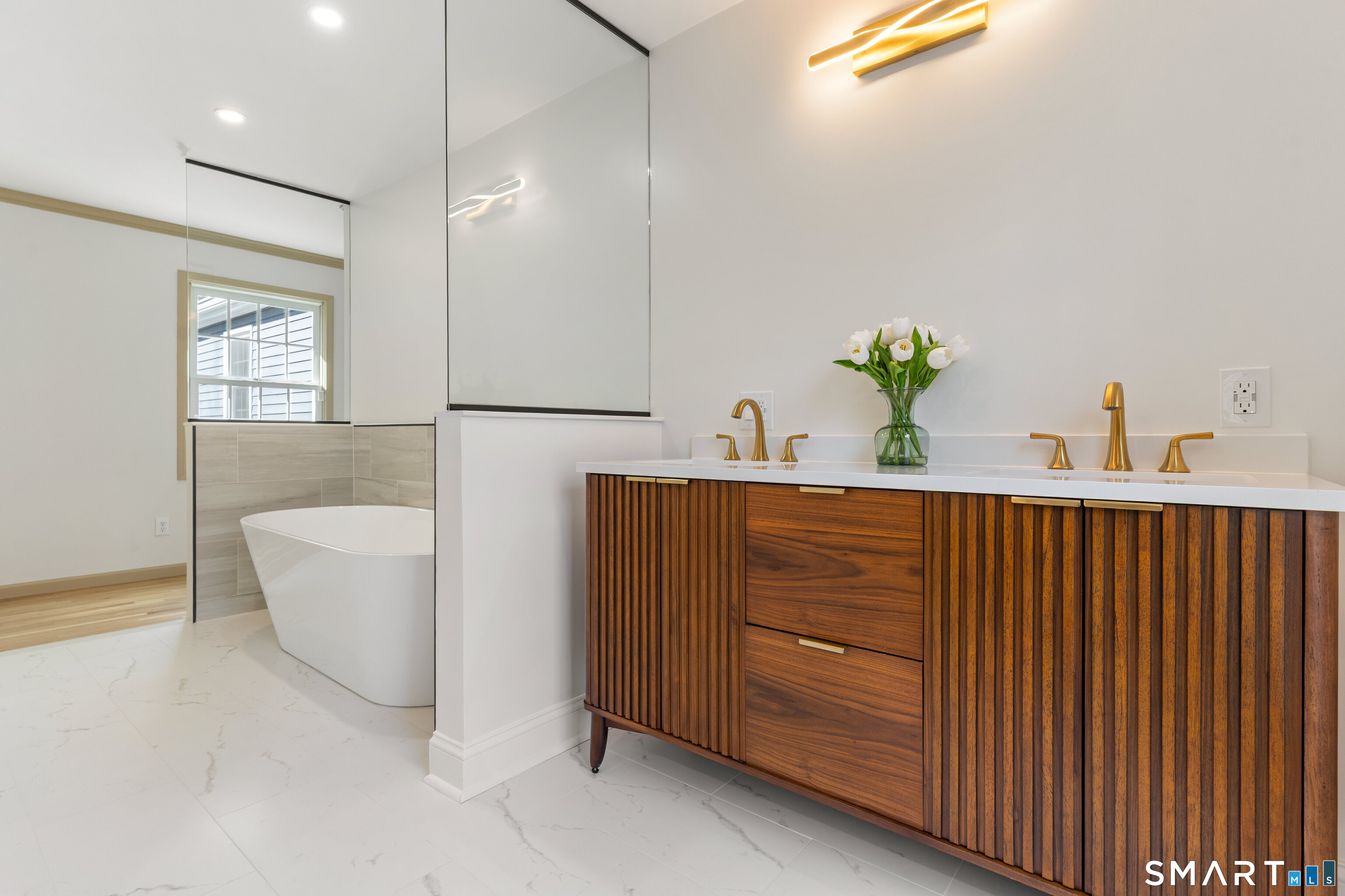 14 Windermere Lane - Elegance and modern comfort converge in this comprehensively renovated 6-bedroom, 5.5-bath residence, where every detail has been thoughtfully curated. A full-home renovation includes beautifully updated bathrooms throughout and a stunning open-concept kitchen designed for both effortless daily living and refined entertaining. The home also offers the convenience and flexibility of a desirable **first-floor primary suite**. Inside, freshly refinished floors, newly painted interiors, and thoughtfully selected lighting fixtures create a bright and sophisticated atmosphere. Convenience has been elevated with two sets of new washers and dryers, including a newly added second-floor laundry ideally located near the bedrooms. Beyond the interiors, the property is framed by professionally manicured landscaping that enhances the home's curb appeal. The two-car garage has been upgraded with 220-volt wiring to support dual electric vehicle charging stations. Additional improvements include a new boiler, new 80-gallon hot water heater, whole-house generator, and an external security system-providing both comfort and peace of mind. With every system and finish carefully considered, this move-in-ready home offers a seamless blend of luxury, efficiency, and modern convenience.