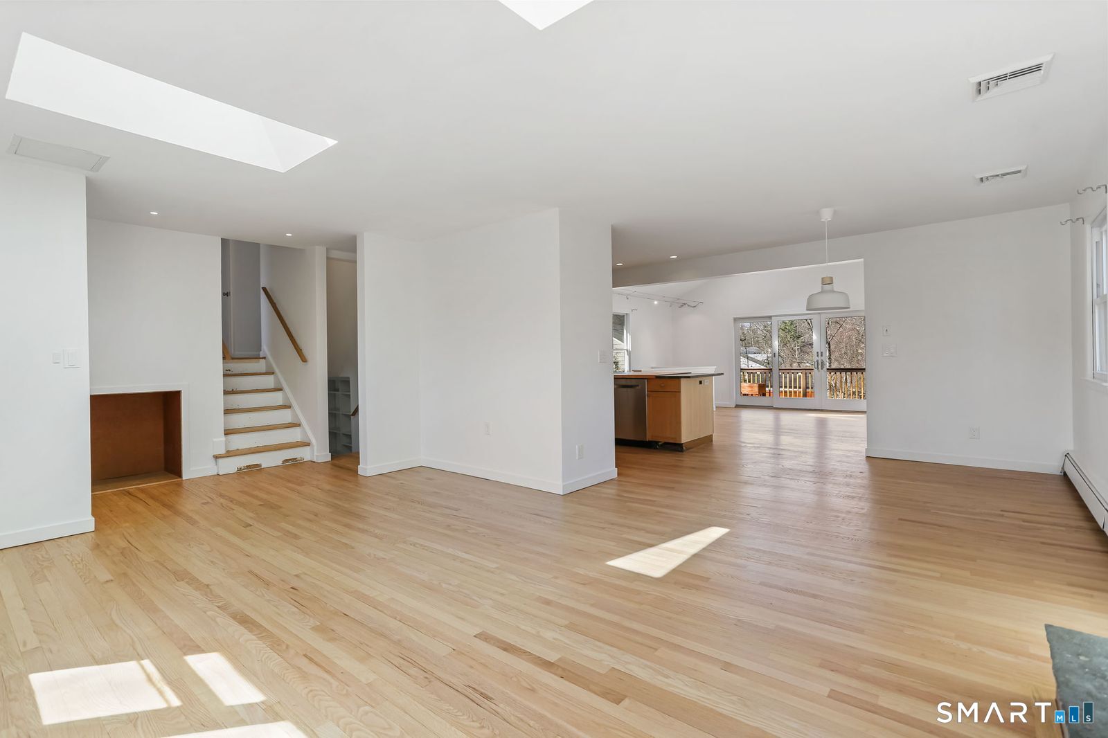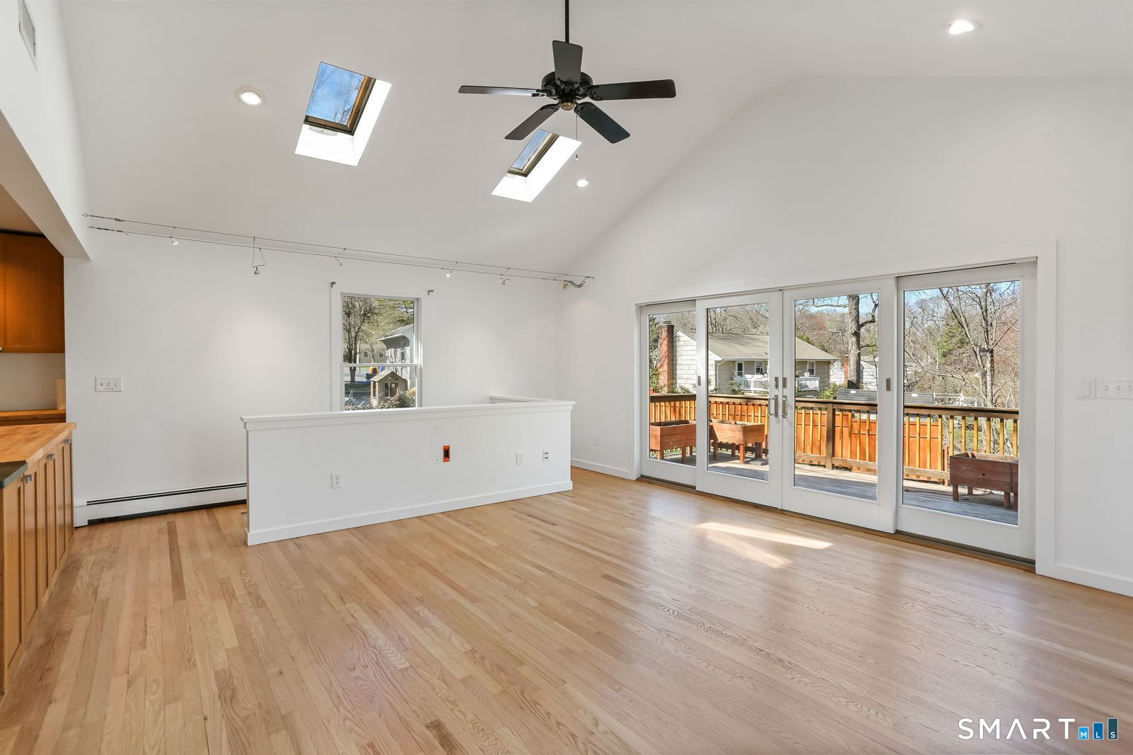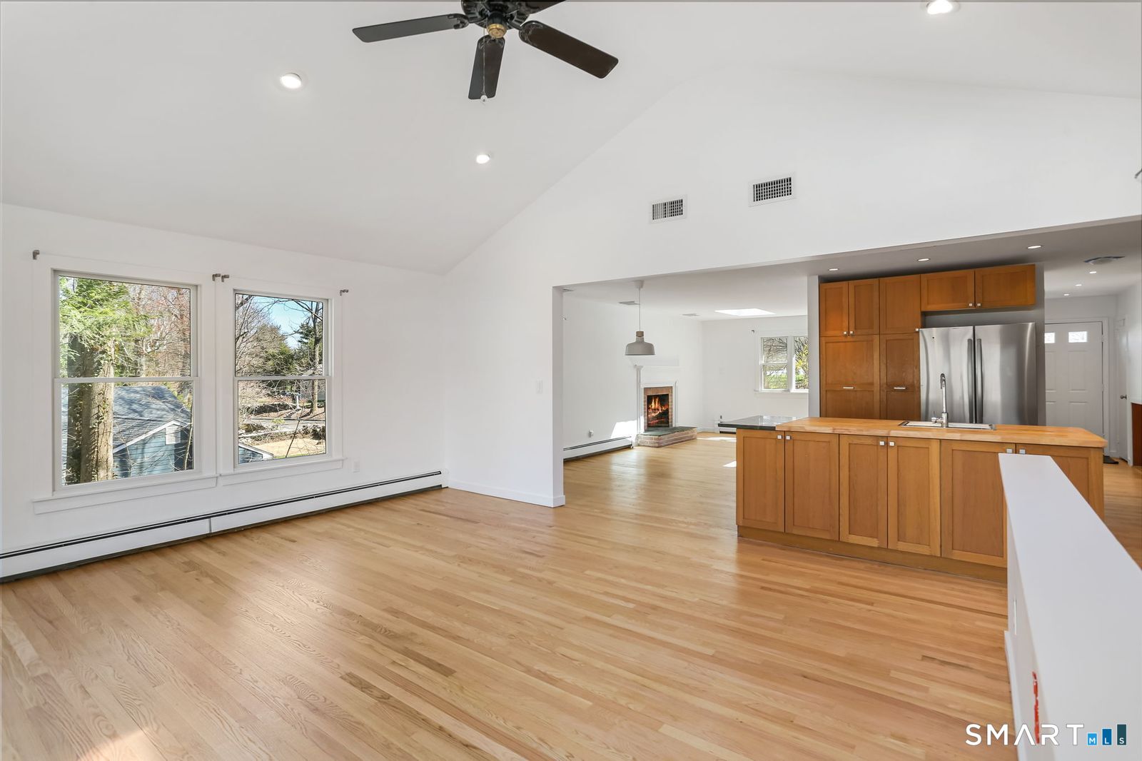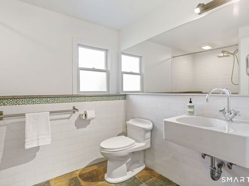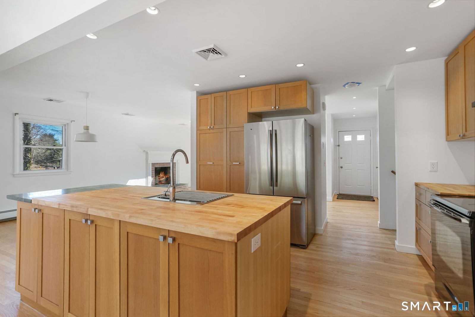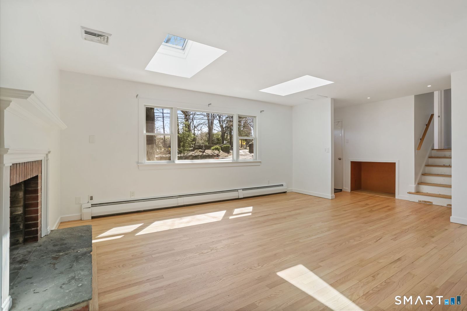 Welcome to 140 Ponus Avenue, a sun-filled 4-bedroom split-level in desirable West Norwalk. This meticulously maintained 2,200+ sq ft home sits on a peaceful 0.36-acre lot with a fenced backyard overlooking beautiful woods, creating a private retreat. Enter through the central foyer and step into an impressive open floor plan connecting the living room with fireplace and skylights to the dining area, and completely renovated kitchen featuring butcher block countertops, center island with Bosch dishwasher, pull-out pantry cabinets with oak doors, and 2021 Bosch three-door refrigerator. The family room has cathedral ceilings and more skylights and flows from the kitchen seamlessly. It opens to the yard with a large wall of windows and a slider to a 2018 cedar deck. The upstairs has 3 bedrooms and another updated full bath. With a completely unique layout, two lower levels expand your living space with two recreation rooms or a fourth bedroom, a full bathroom with slate flooring, oversized walk-in shower, and Dornbracht fixtures, laundry room/bathroom, and ample storage. This home has been loved and upgraded extensively: 2017 roof, 2019 C/A, 2021 boiler and hot water system with zoned heating, 2023 Andersen windows, 2022 electric car charger, 2024 driveway work, 2025 new fence, and 2026 refinished floors and fresh paint throughout (and more). The circular driveway and extra basement storage add convenience. A rare find that's move-in ready close to everything you may need!