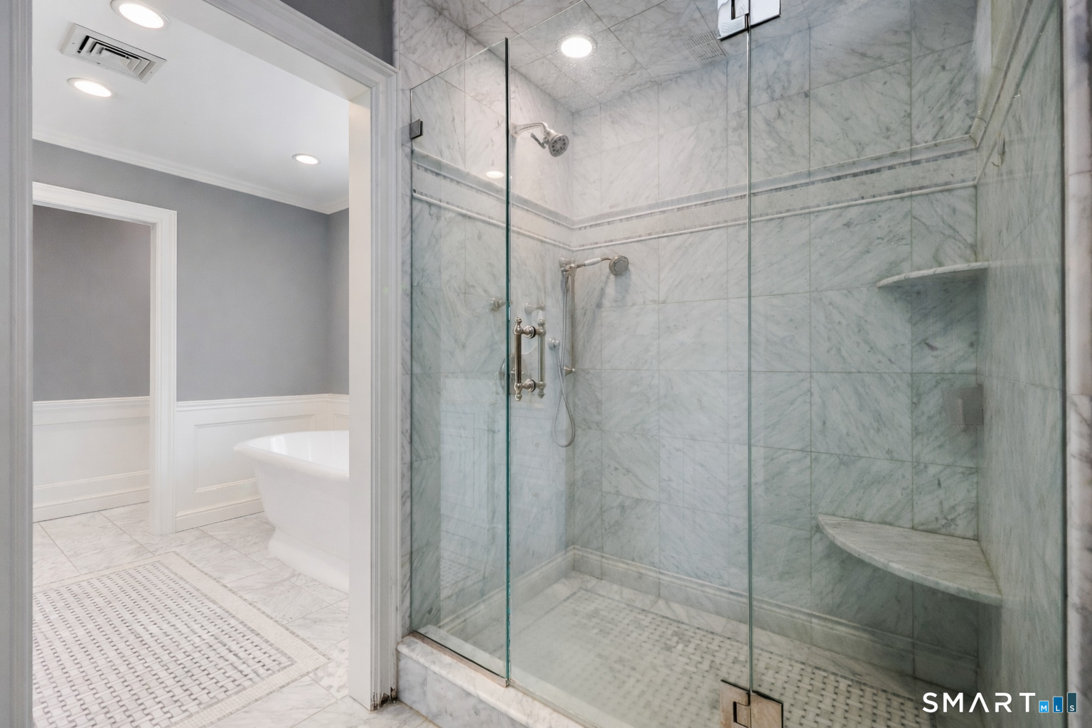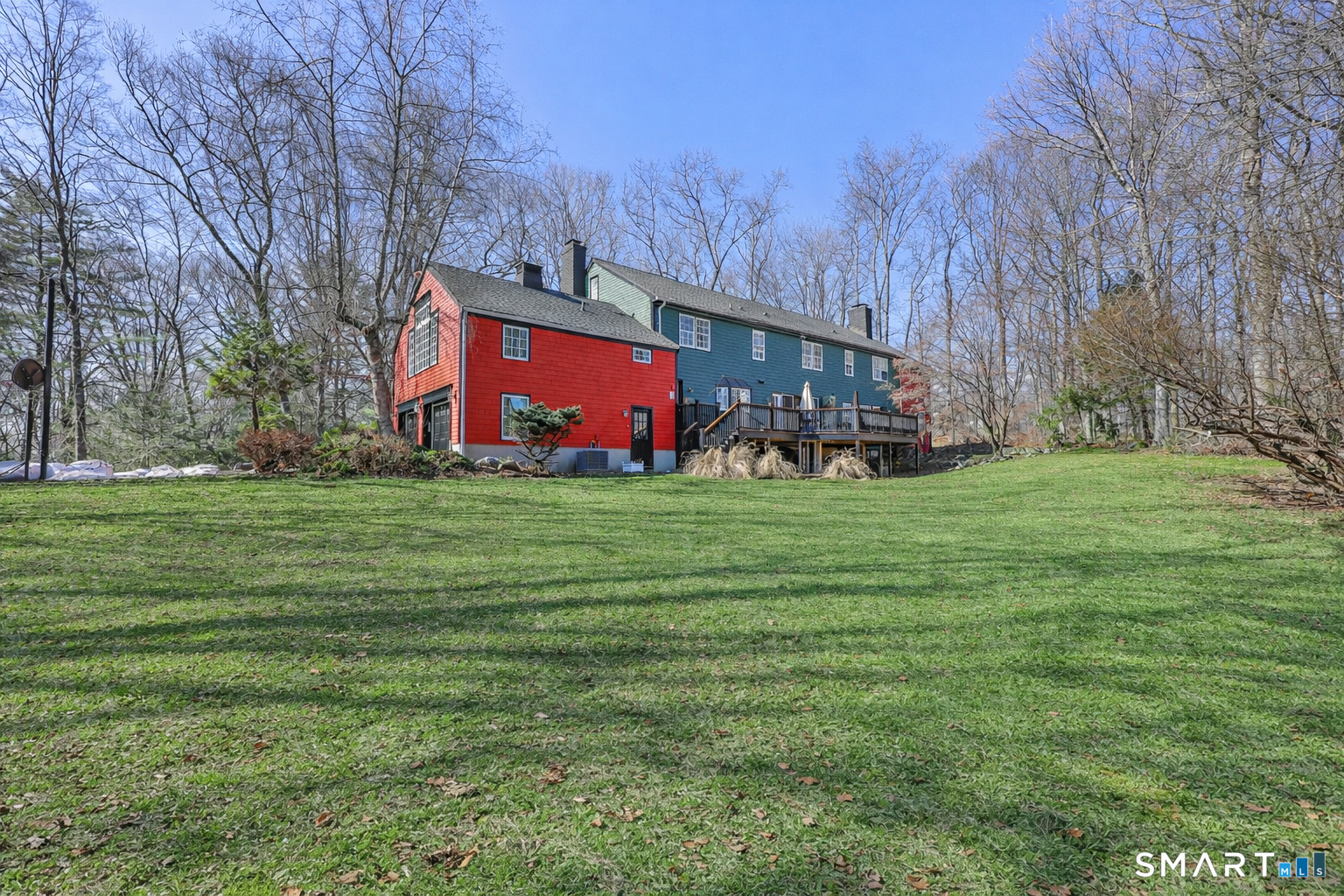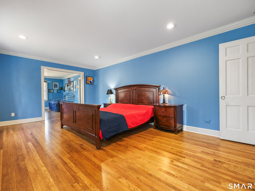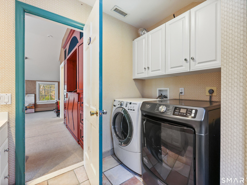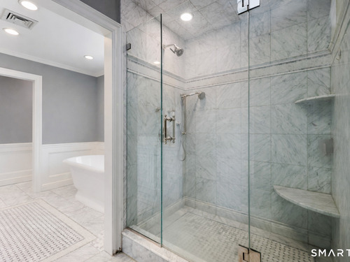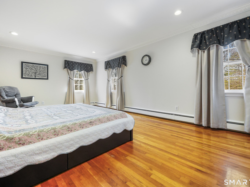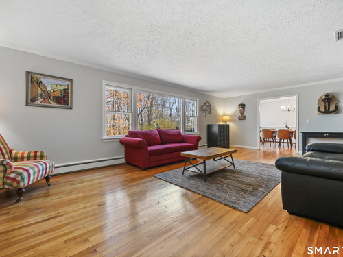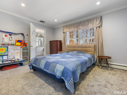 Tucked away on 2.18 private acres, this beautifully designed 5-bedroom, 6-bathroom home offers exceptional space, natural light, and a layout ideal for both everyday living and entertaining. Discover hardwood floors and a thoughtfully designed main level. The open kitchen flows seamlessly into the family room, anchored by a fireplace that creates a warm gathering space. A sun-filled den with a wall of windows and custom built-ins provides the perfect place to relax or work from home. Adjacent, convenient laundry room and half bath. The first floor includes a private home office with wet bar, spacious sunroom with tile flooring that brings the outdoors in. For entertaining, the formal living room with fireplace and elegant dining room open directly to a large deck overlooking the expansive property, creating effortless indoor-outdoor living. Upstairs, the primary suite offers a true retreat, featuring a spa-inspired bath with double sinks, soaking tub, separate shower, and dressing room with walk-in closet. Two bedrooms share a full bath, while two additional bedrooms and another hall bath provide comfortable accommodations for family and guests. The fully finished walk-out lower level with fireplace adds exceptional versatility-perfect for a recreation space, media room, gym, or additional entertaining area. A walk-up attic provides valuable storage and potential expansion. Located in a desirable Wilton setting, combining privacy, space, and classic New England comfort