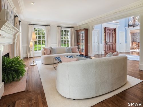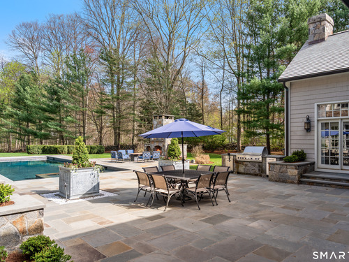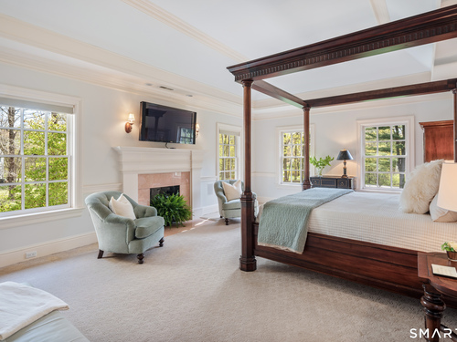 Discover the epitome of timeless luxury in this magnificent Colonial Chateau-style residence. Perfectly situated on two flat, meticulously landscaped acres in a coveted walking neighborhood, this home offers unparalleled privacy while remaining just moments from town and top-rated schools. This quiet, no-cut-through street is a haven for outdoor enthusiasts, offering exceptional bike riding and walking routes right from your door. The active neighborhood association fosters a true sense of community-think spirited trick-or-treating, seasonal gatherings, and friendly faces at every turn. Enjoy the best of both worlds: peaceful residential living with convenient access to prime roadways for an easy commute. The interior is a masterful blend of elegance and comfort, featuring six spacious en suite bedrooms and an astounding eight indoor fireplaces that create warmth and ambiance throughout. Designed for grand entertaining and modern family living, the home boasts multiple family rooms, ensuring ample space for every occasion. Indulge your passions in the dedicated wine cellar and the custom-designed sports den. The sophisticated primary level flows seamlessly to the breathtaking exterior amenities, which include a built-in pool for summer relaxation and a beautiful outdoor fireplace for year-round enjoyment. Completing this exceptional estate are four spacious garage bays, providing abundant storage and convenience.