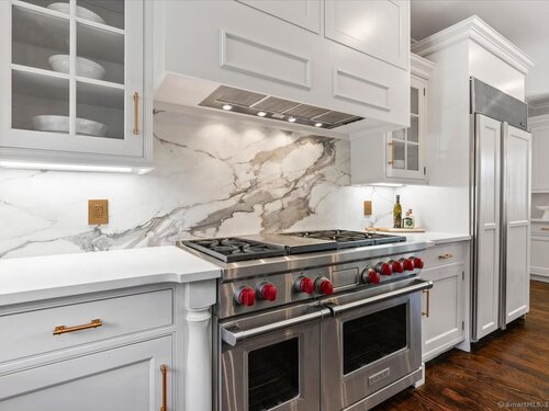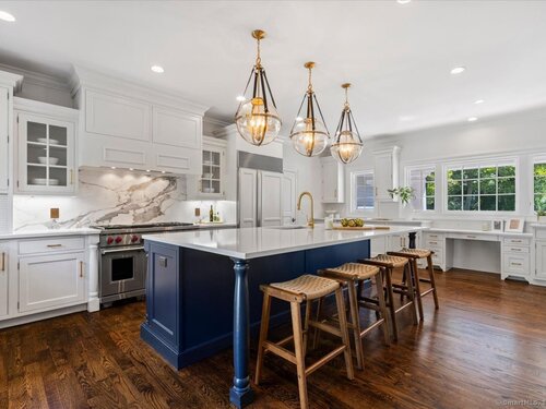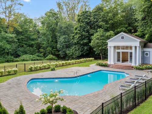 Welcome to 1421 Oenoke Ridge in the picturesque town of New Canaan, CT. A gated entrance and circular drive lead you to this gorgeous home just minutes from New Canaan's vibrant town center. Expertly crafted by Douglas Carter Architects, and stunningly transformed by its current owner/designer, the more than 10,250-square-foot residence, sited on 2.5 pristine acres, offers a luxurious retreat for the most discerning buyer. With four finished levels, the home boasts the finest quality craftsmanship and meticulous attention to detail. The newly updated gourmet kitchen is a chefs dream, and with its high ceilings and abundance of oversized windows, the home is flooded with natural light, seamlessly blending the indoors with the surrounding nature. The primary suite is a sanctuary of its own, featuring dual bathrooms, sitting room, fireplace, and balcony overlooking the pool area. The six bedrooms in the main house are all ensuite, and the finished walk-out lower level includes a movie theater and wine cellar. A separate 700+ sq. ft. pool/guest house (built in 2020), complete with kitchen, bath, and optional bedroom, overlooks the 30x50 lagoon-style pool. Note: Property taxes reflect the town-appraised total market value of $5,378,200.