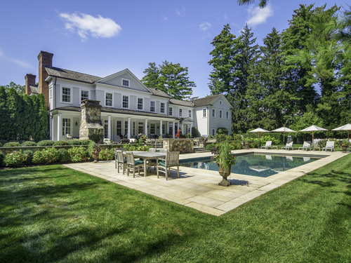 Experience the pinnacle of sophisticated living in this extraordinary estate by renowned builder Kaali-Nagy, perfectly situated within walking distance to the village, train, and nature center. The residence showcases impeccable craftsmanship throughout, defined by extensive custom moldings, intricate wainscoting, and an effortless flow designed for both grand entertaining and intimate daily life. At the heart of the home, a gourmet chef's kitchen features a sun-drenched breakfast room and a butler's pantry, with French doors opening to one of three private terraces for seamless indoor-outdoor transitions. Designed to elevate everyday living, the home also boasts a fully equipped private home gym, an inviting billiards room and media area, perfect for relaxed gatherings.The private property is equally impressive, boasting a spectacular 20 x 40 heated gunite pool surrounded by professionally designed, mature landscaping that creates a serene and secluded outdoor retreat-ideal for summer entertaining or peaceful relaxation. This thoughtfully designed floor plan includes five spacious ensuite bedrooms, each boasting its own walk-in closet, ensuring unparalleled comfort for family and guests alike. Complete with the modern convenience of a private elevator serving the home's multiple levels, this property offers a rare blend of timeless architectural detail, exceptional amenities, and a premier "walk-to-everything" location.