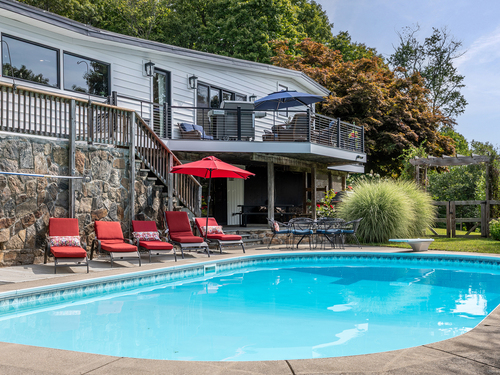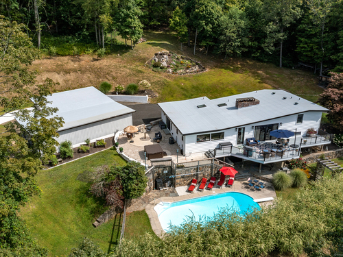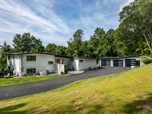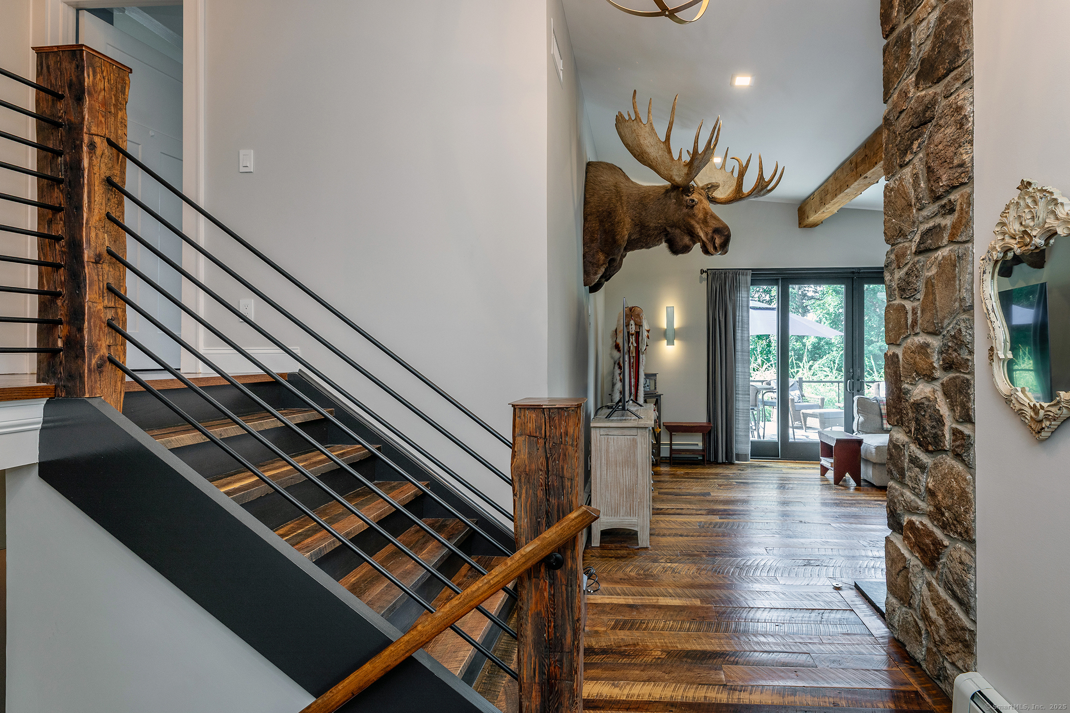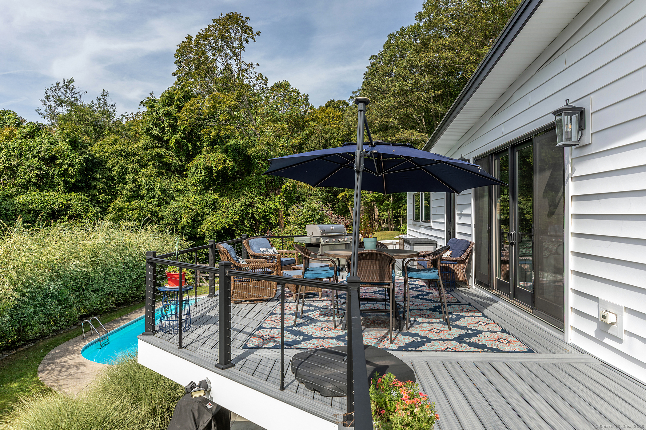 Welcome to 145 Pine Hill Rd! An exquisite home offering 4-bedrooms with 3.5 baths and a generous 3400+/- total sf. Home is set on a spacious 4.57 -acre lot and features an oversized 4 car-detached garage. As you approach the property, you'll be greeted by a front porch, welcoming you inside. The heart of the home is adorned w/reclaimed, hand-hewn beams accentuating the ceilings & mantle, paired harmoniously with a propane log fireplace. This central gathering space is bathed in natural light spilling in through expansive windows, complemented by a twelve-foot wide Anderson double slider leading to a meticulously crafted deck, optimizing the western exposure for all day sun. The kitchen offers a state-of-the-art appliances and extensive countertop space with over 20 feet on the perimeter and an 11 ft island. Each of the 4 bedrooms provides a unique space, while the 3.5 baths feature refined fixtures & chic designs. Off the primary bedroom is a retreat unto itself, featuring a circular patio where one can reflect in the joyful sounds of the water fountain or unwind in the private hot-tub. The lower-level family room with a built-in bar and a cozy wood-burning stove, ideal for entertaining & relaxation alike. A saltwater in-ground heated pool & beautifully crafted outdoor entertainment areas, including a whimsical chicken coop/shed, enrich the outdoor living experience. Nestled near captivating attractions such as Pootatuck State Forest & Candlewood Lake.