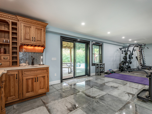 Beams, Wet Bar, Wood Stove, Sliders, Tile Floor