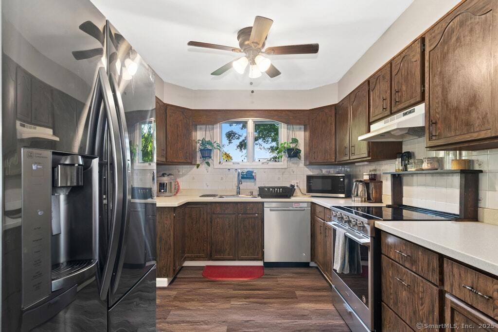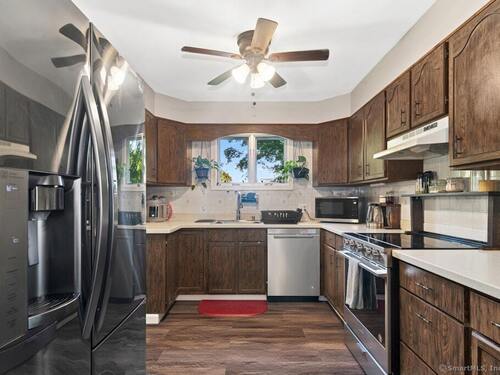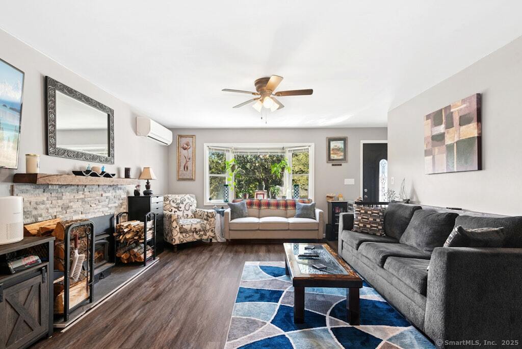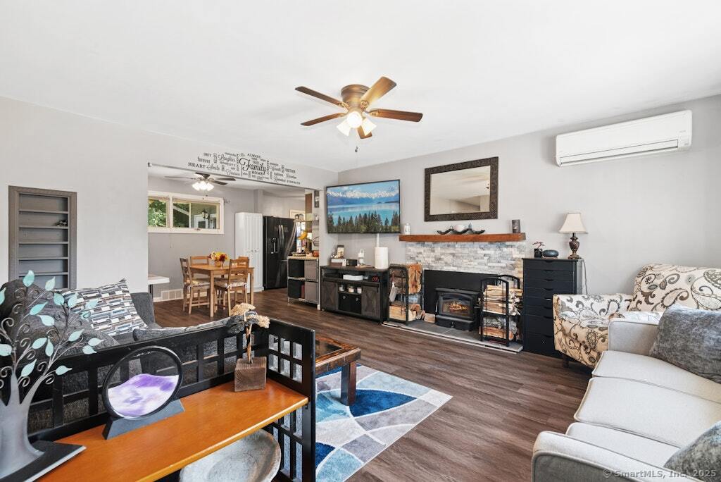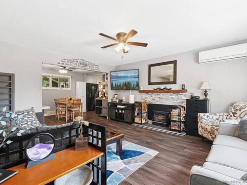 Love at first sight on Alexander Drive! This charming 3-bedroom ranch is set on a quiet cul-de-sac just minutes from Candlewood Lake and everyday conveniences. Step inside to a light-filled living room with a picture window, and a cozy wood-burning fireplace. Seamless flow to the dining area and kitchen make this space perfect for everyday gathering. Three comfortable bedrooms and a full bath complete the main level. All main level flooring is a very attractive and easy-care, wood-look vinyl. The unfinished lower level with bilco door access to the outside offers plenty of potential to finish as a playroom, gym, or home office. A delightful three-season sun porch extends your living space and opens to the private backyard--ideal for summer evenings in the gazebo, gardening, or outdoor activities & sports. A detached two-car garage, PLUS carport and paved driveway provide ample parking. The heating system has been converted to four mini-split units and solar power enabling very efficient heating and cooling year round. In addition, recently added, blown insulation keeps the home warm in the winter & cool in the summer! With an exceptionally level lot, low-maintenance interior and exterior, and easy access to shopping, schools, parks, and commute routes, this home is a smart choice whether you're downsizing, buying your first home, or seeking a weekend retreat. Move in, make it your own, and enjoy all Brookfield has to offer!