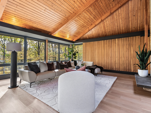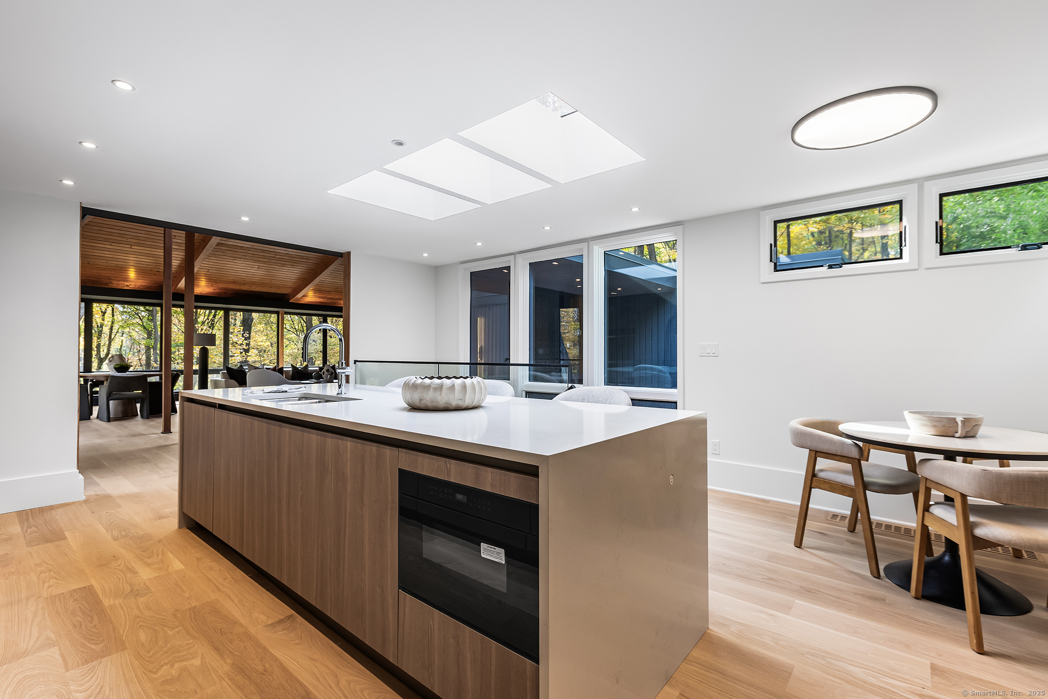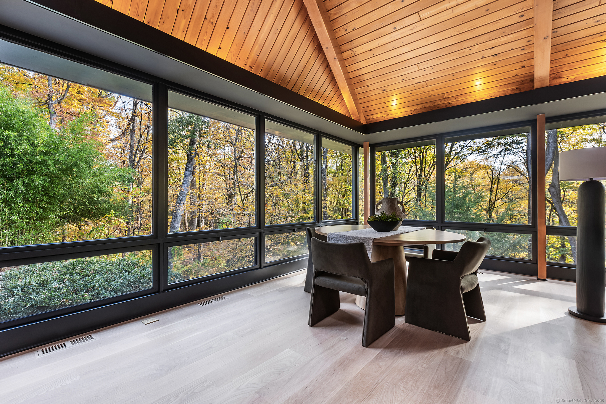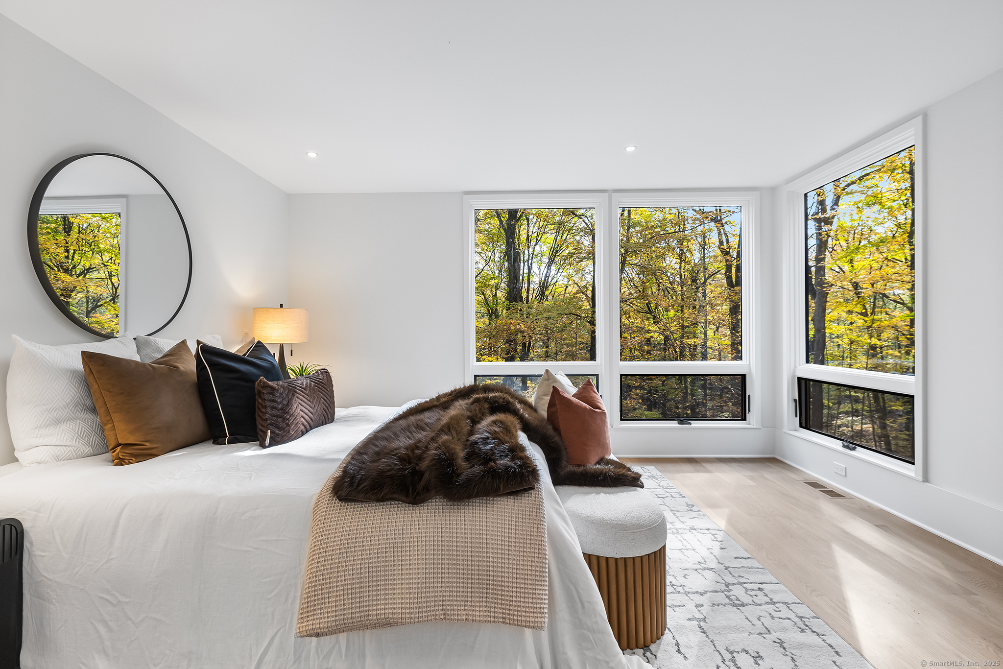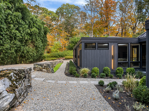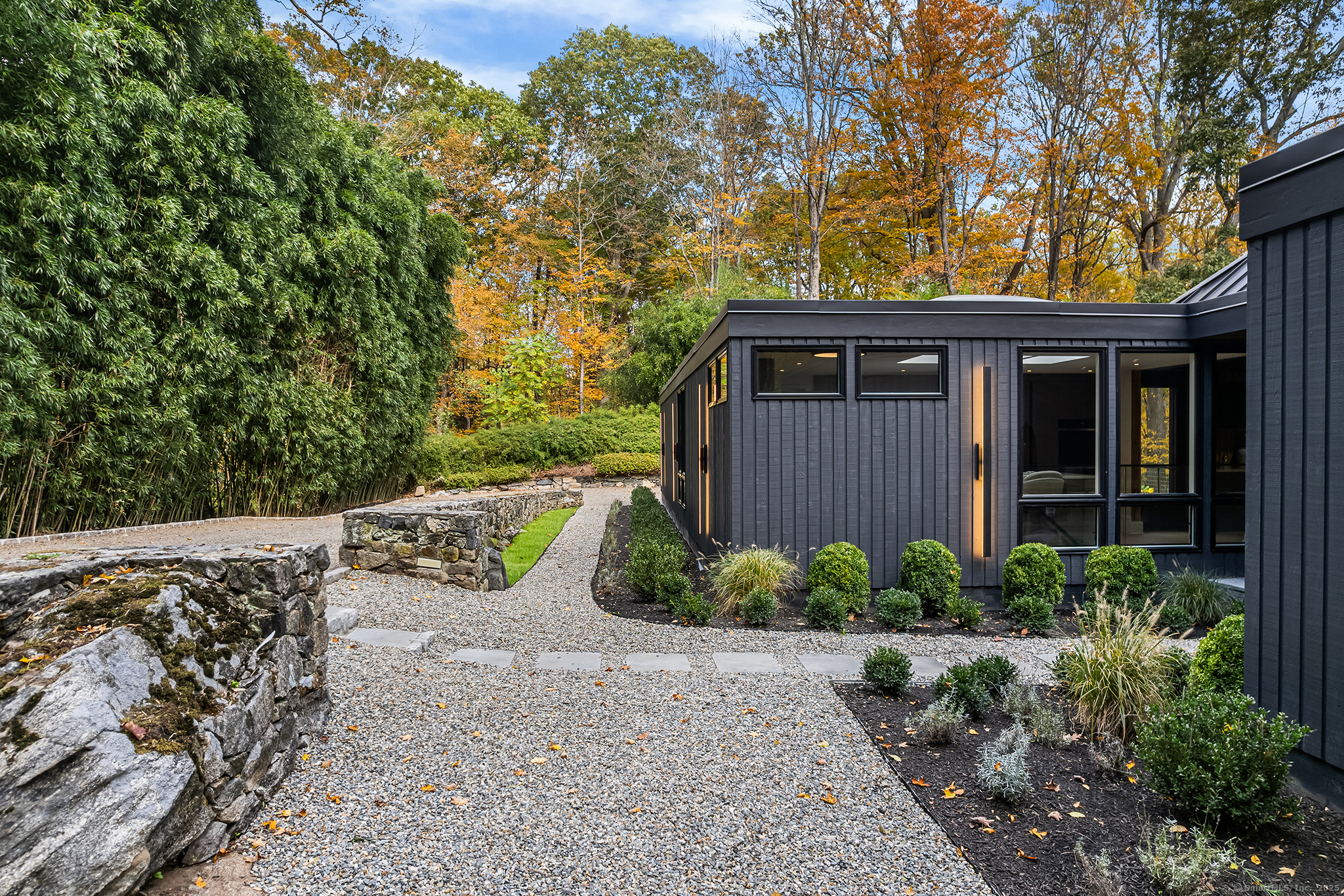 Welcome to 15 Audubon Lane, a modern sanctuary set on 4.2 serene, private acres in one of Greenwich's most coveted backcountry locations. Quietly nestled at the end of a cul-de-sac and surrounded by mature woodlands and premier estates, this architectural retreat offers a rare blend of tranquility, exclusivity, and turnkey luxury. Fully renovated to the highest standards, the 3,038-sq.-ft. residence features a new standing-seam metal roof and all-new plumbing, electrical, and HVAC systems. Inside, refined living unfolds with white oak select flooring, custom cabinetry and closets, and a gourmet kitchen featuring Wolf and Fisher & Paykel appliances set against sleek granite countertops. A new TimberTech deck creates the ideal outdoor setting for entertaining or unwinding in nature. Located in one of Greenwich's most tranquil and private backcountry settings-just minutes from the Merritt Parkway, Glenville, and Westchester County amenities-this is Greenwich backcountry living at its finest.