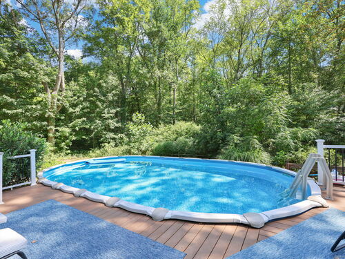 Nestled in the desirable Whitney Farms community, this 4-bedroom, 3-full-bath raised ranch blends modern updates with inviting warmth. The heart of the home is the beautifully updated kitchen, featuring sleek finishes, a walk in pantry, and an effortless flow into the sun-filled dining and living areas-perfect for both everyday living and entertaining. The main level also features a primary bedroom with WIC and full bath along with 3 additional spacious bedrooms and another full bath. Hardwood floors and central air ensure year-round comfort and style. Step outside to your own private retreat: a composite deck overlooking the sparkling above-ground pool, ideal for summer gatherings and relaxation. The walk-out lower level offers exceptional versatility, with another living room, a third full bath, garage access, and a potential 5th bedroom-perfect for guests, a home office, or in-law/au pair accommodations. Located moments from top-rated schools, golf course, parks, and commuter routes, this home offers not only space and style, but also the lifestyle you've been looking for. Schedule your showing today!