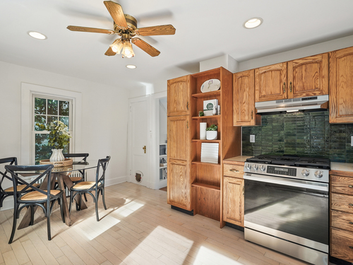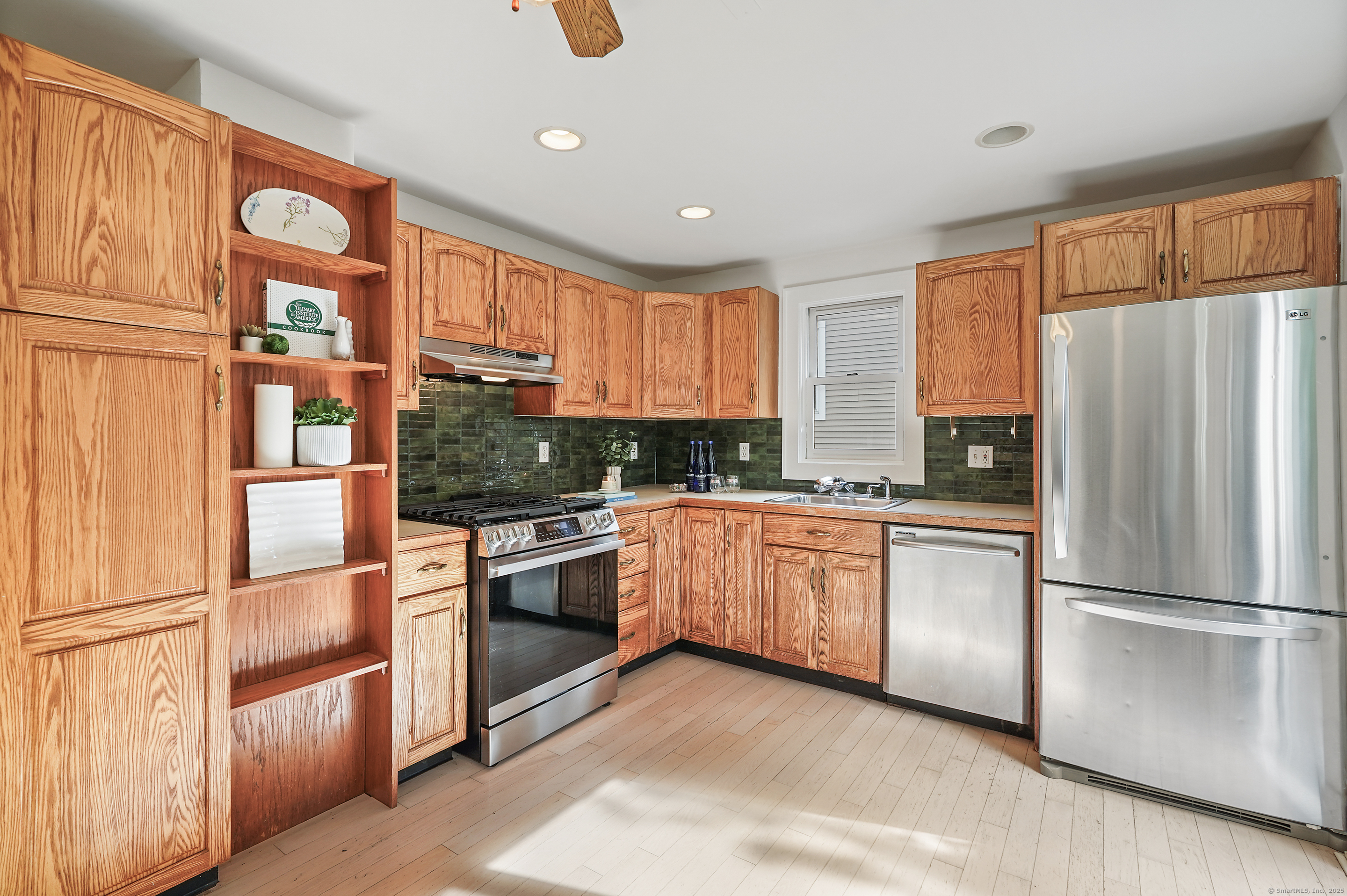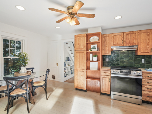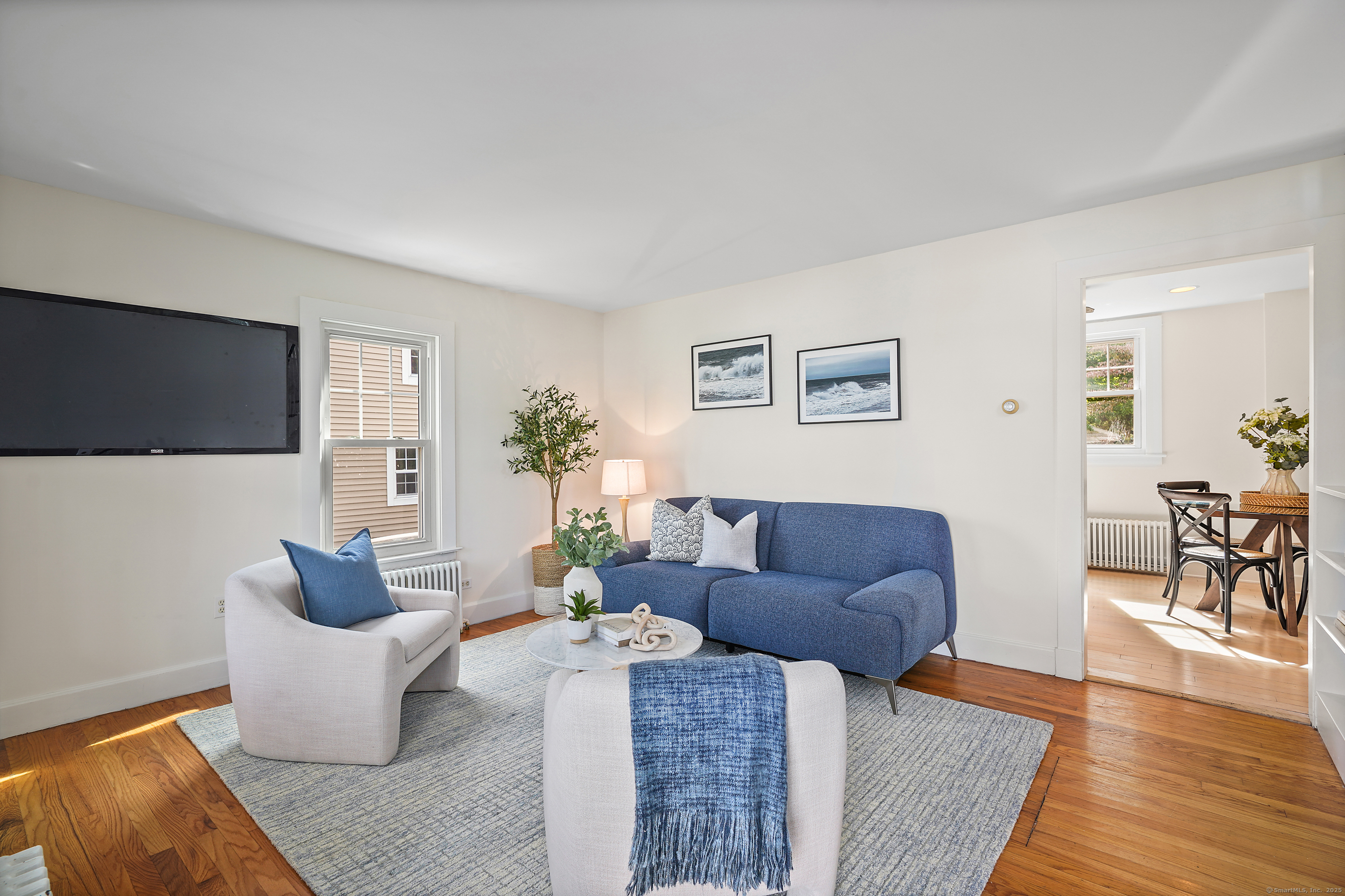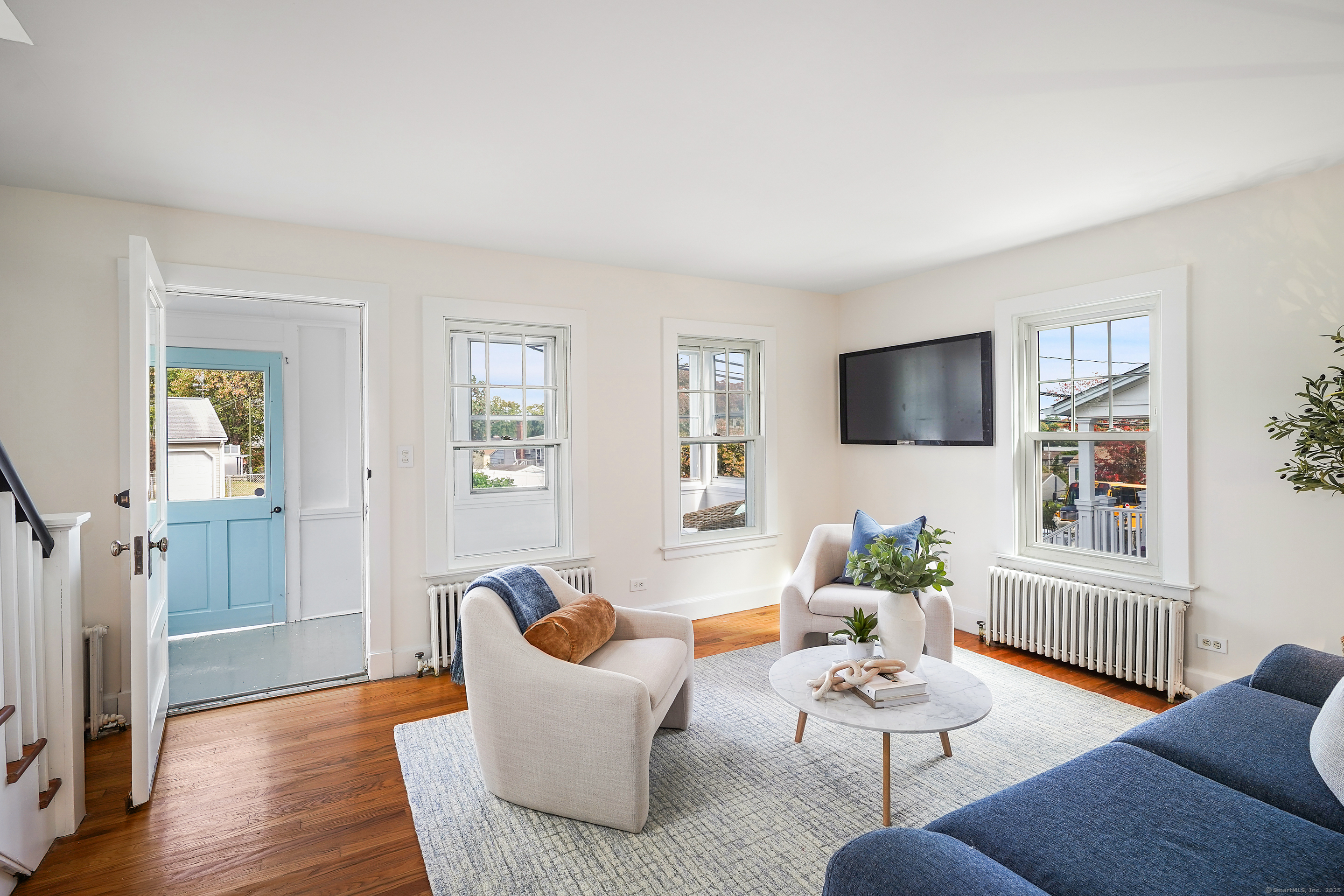 Welcome to coastal living at its finest in this charming 1910 Colonial, just a short walk from Cove Island Park and beach. Freshly painted throughout, this 2-bedroom, 1-bath home features 864 square feet of thoughtfully designed living space with hardwood floors, a sunny eat-in kitchen with stainless steel appliances, and sliders leading to a back deck perfect for morning coffee or evening gatherings overlooking the private, fully fenced yard. Enjoy sunrise strolls, afternoon picnics, and watching boats drift across Long Island Sound at nearby Cove Island Park, where swimming, fishing, ice skating, and scenic waterfront paths make every season special. A full 432-square-foot basement provides excellent storage, while off street parking and easy access to I-95 and the Stamford Train Station create the perfect balance of relaxed coastal living and city convenience, just steps from your front door.