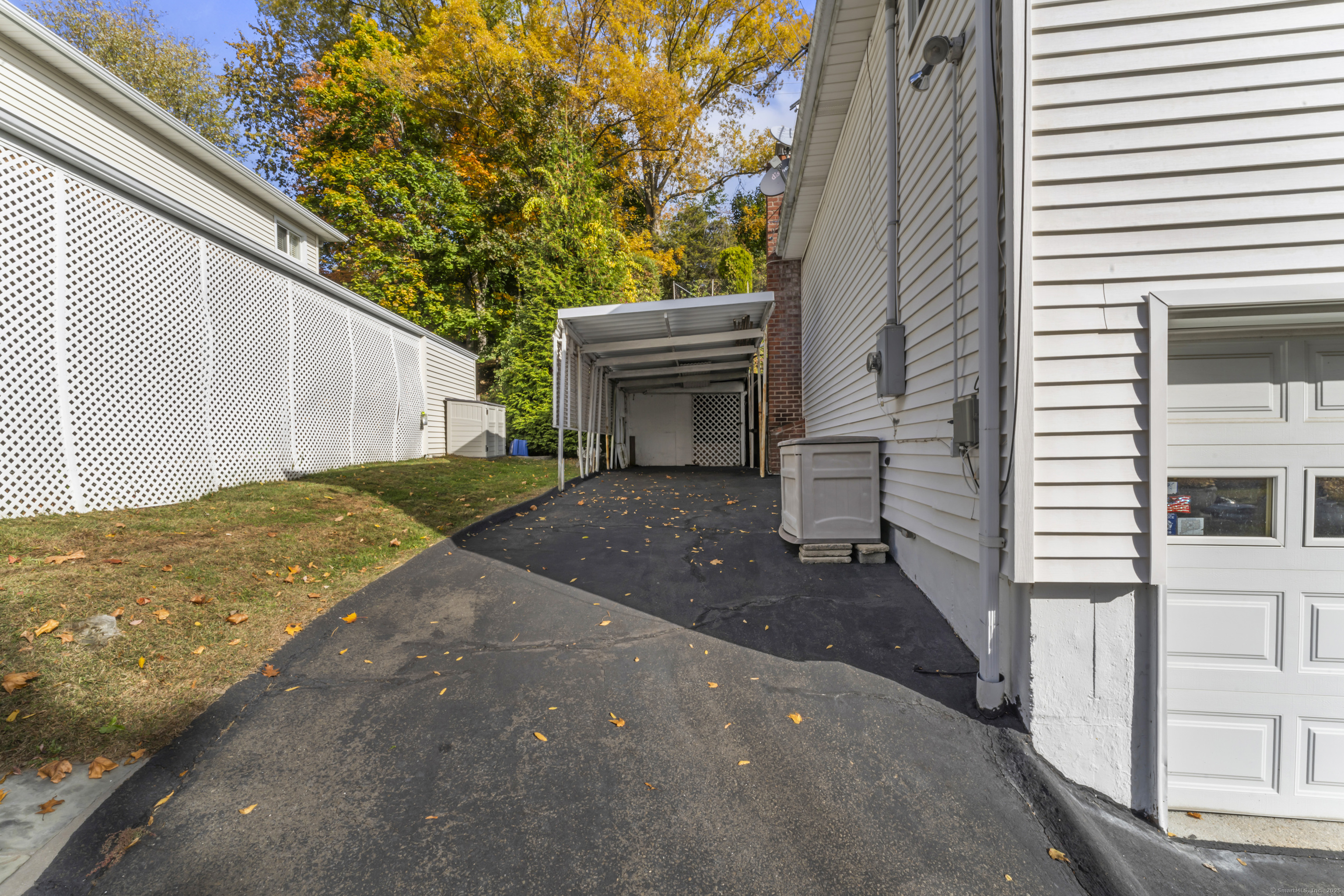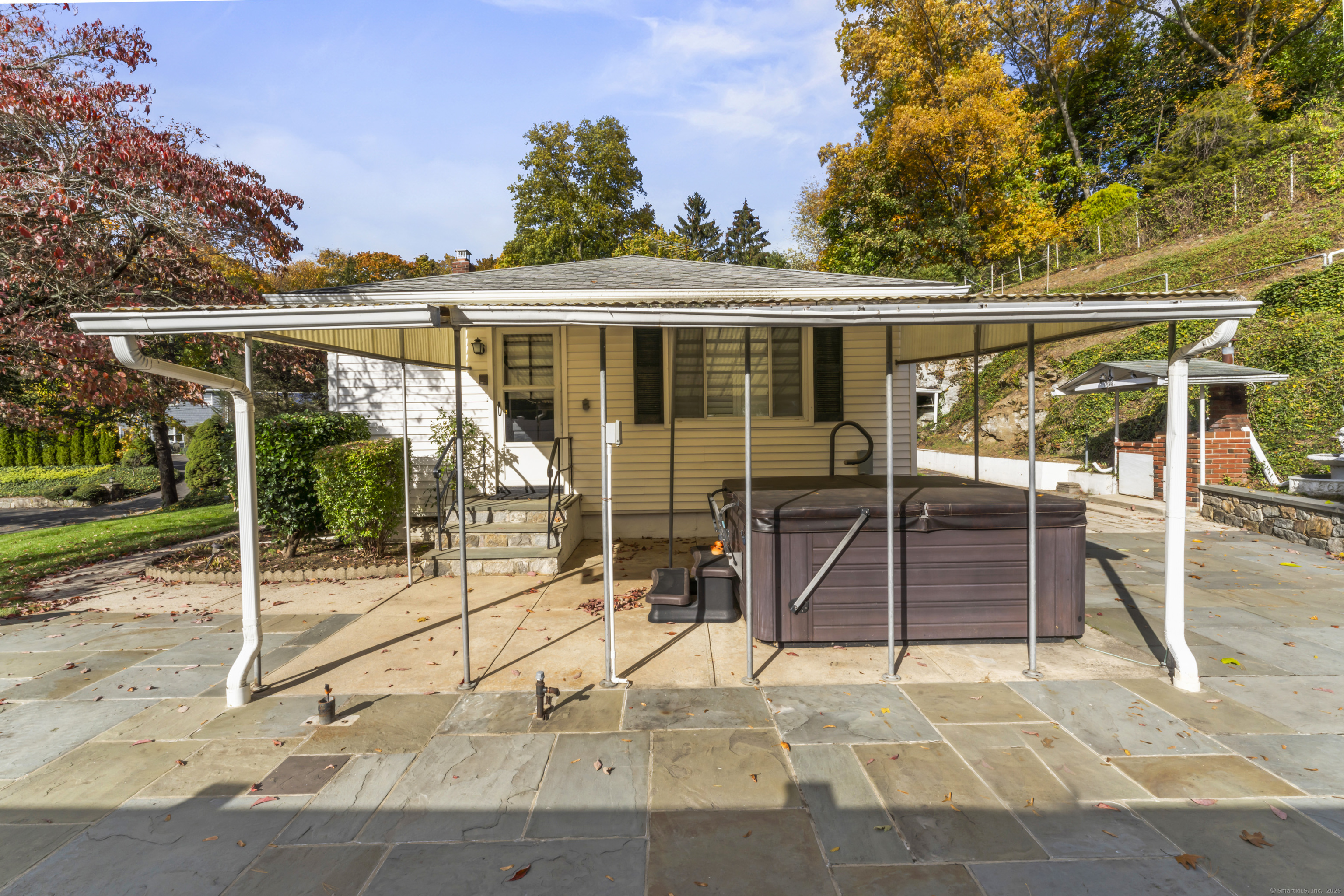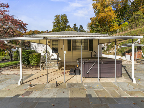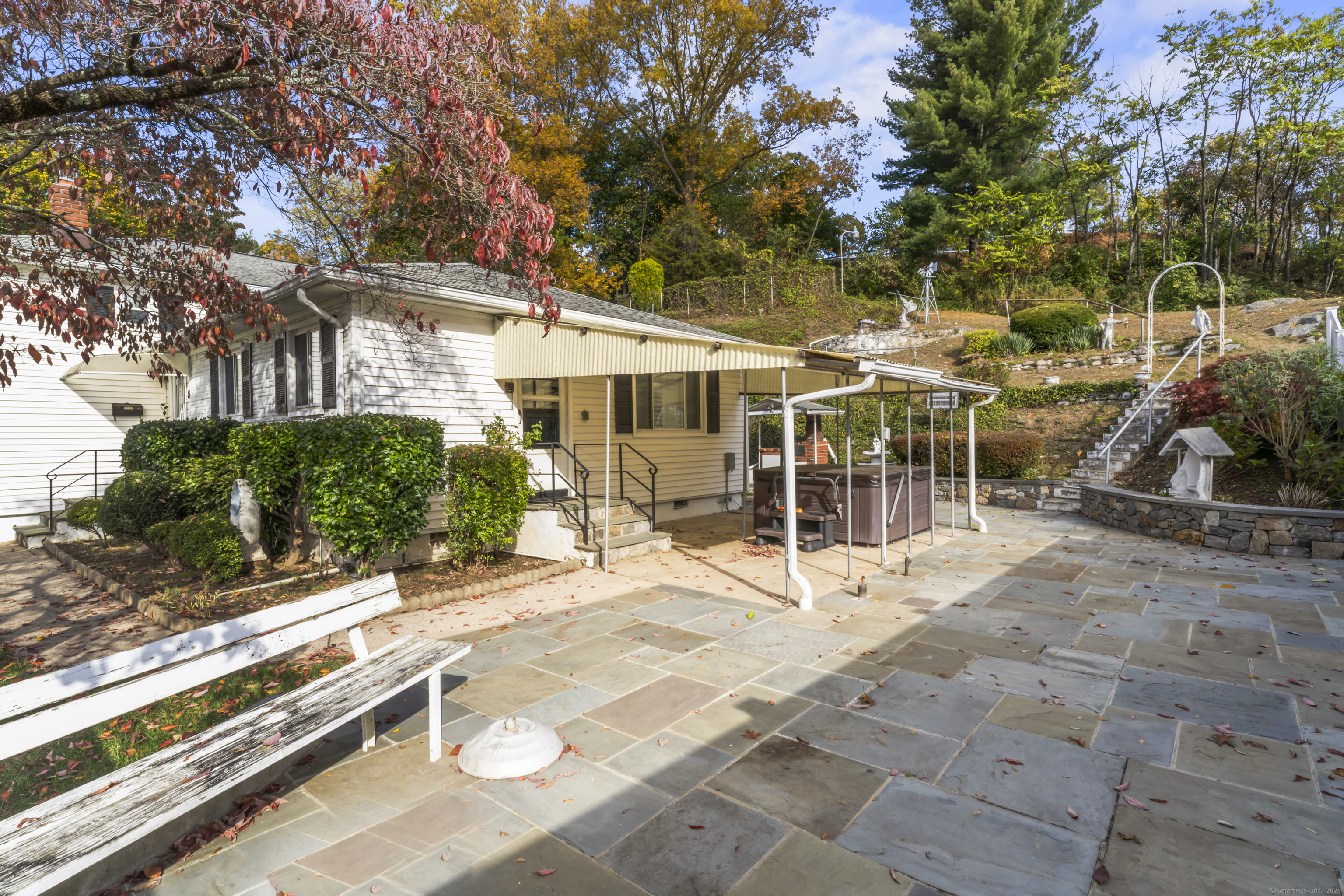 Welcome to this move-in ready split-level home ideally located in the Glenville neighborhood. Set on a quiet cul-de-sac, this residence offers comfort, convenience, and great flow. The main level features a bright living room and dining area with easy access to the kitchen, perfect for everyday living and entertaining. Upstairs are three bedrooms and two full baths, including a spacious primary suite. The lower level offers a comfortable family room with a fireplace. The private yard has a relaxing hot tub-ideal for outdoor enjoyment. Additional features include central air, public utilities (water, sewer, gas), an attached garage plus a carport. Convenient to schools, parks, shopping, and major roadways, this home combines suburban tranquility with easy access to everything Greenwich has to offer.