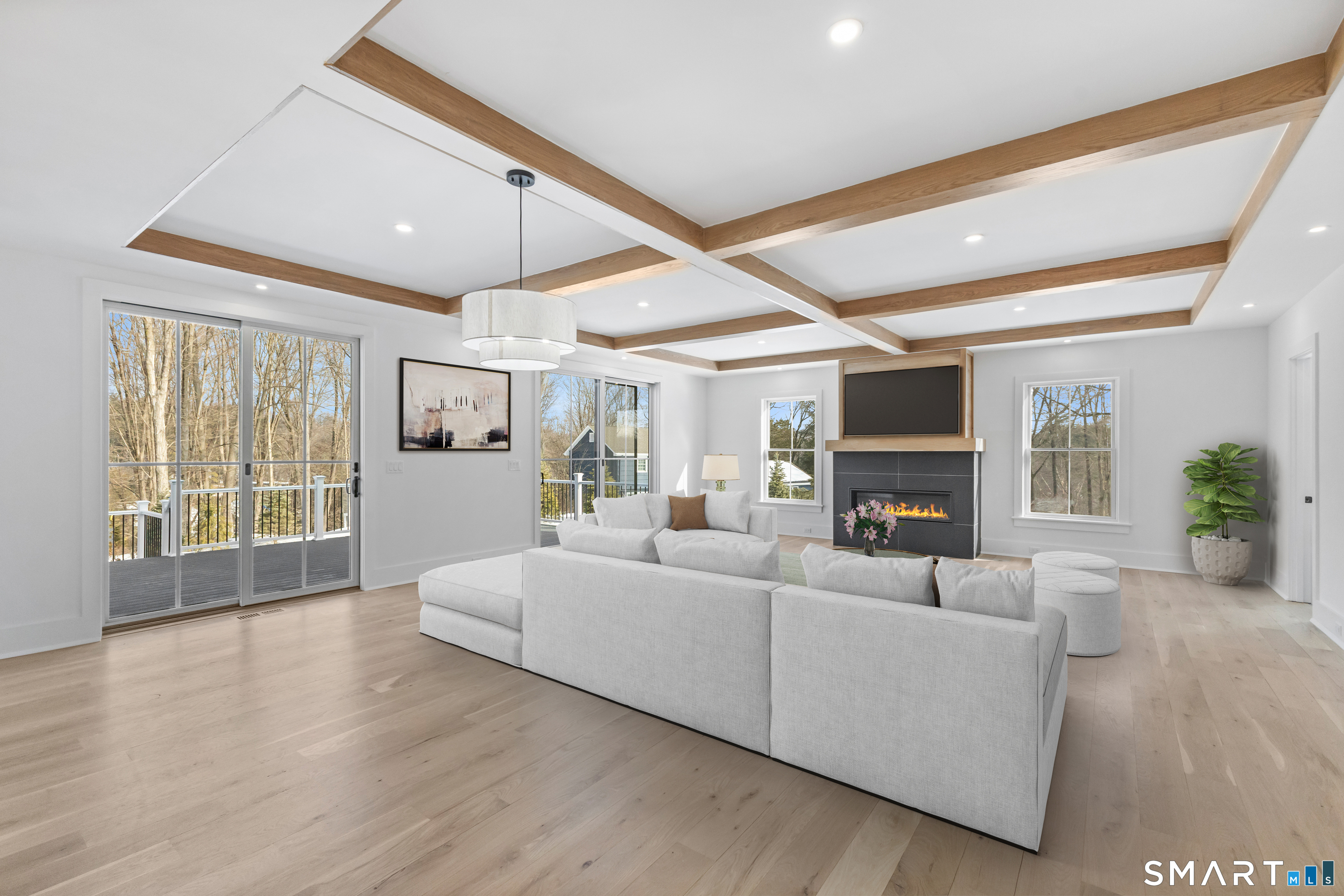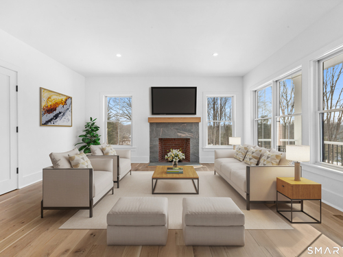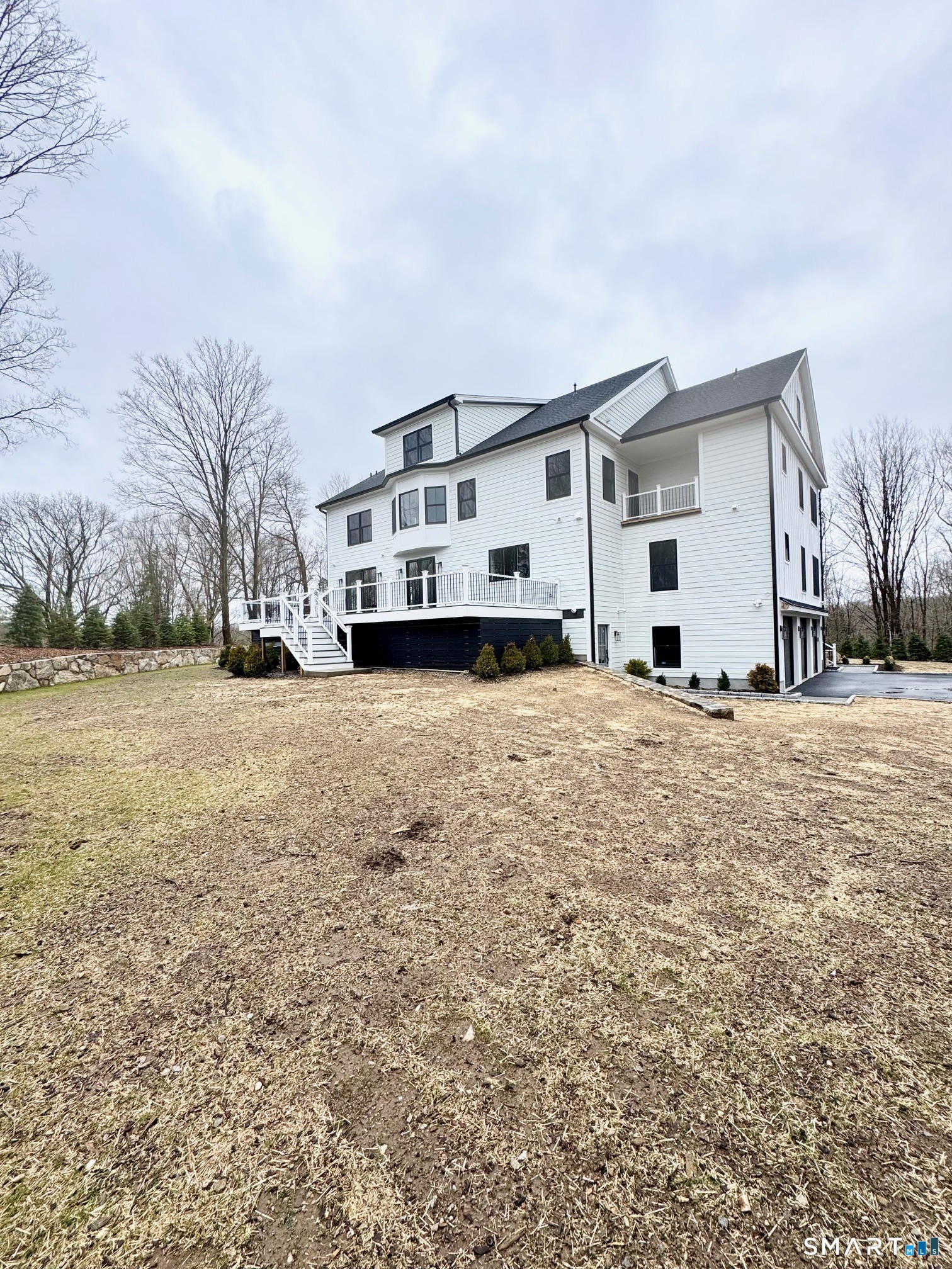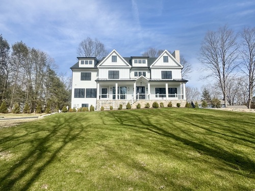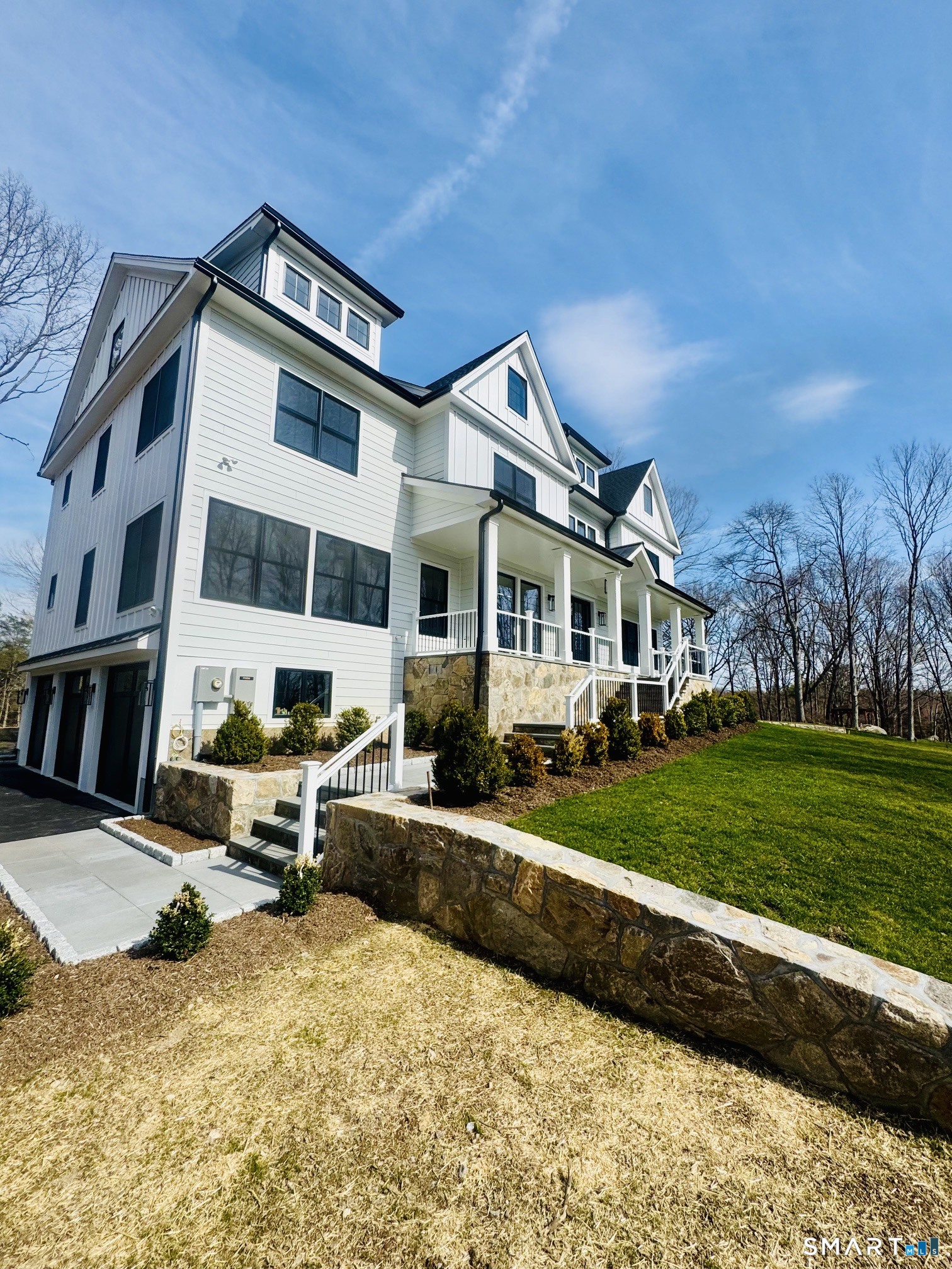 Welcome to 150 Wildwood Road, an exceptional new construction residence that perfectly blends timeless colonial architecture with modern sophistication. Set on 1.12 private acres in one of Stamford's most sought-after neighborhoods, this 9,349-square-foot masterpiece showcases superior craftsmanship and thoughtful design by a respected local builder known for quality and attention to detail. This modern colonial offers four fully finished levels of luxurious living space, designed for both everyday comfort and elegant entertaining. From the moment you enter, you're greeted by a 2-story foyer, sun-filled open spaces, and exquisite mill work throughout. The main level features a grand foyer, expansive family room/EIK with custom fireplaces, formal dining rm, living room with custom fireplace & a gourmet chef's kitchen with Thermador appliances, custom cabinetry, and a generous center island - all opening to a light-filled breakfast area and spacious family room that lead to the huge deck overlooking backyard. The serene primary suite includes a walkout balcony, huge walk-in closet, and a master bath with massive curbless shower and his and hers sinks. 3 other bedrooms on 2nd floor with private baths. The 2nd fl offers an office space. The finished third floor offers flexible space for a playroom, home gym, or guest suite, while the fully finished walkout ll provides endless possibilities spaces includ. full bath & fireplace. Generator and Irrigation System to be installed.