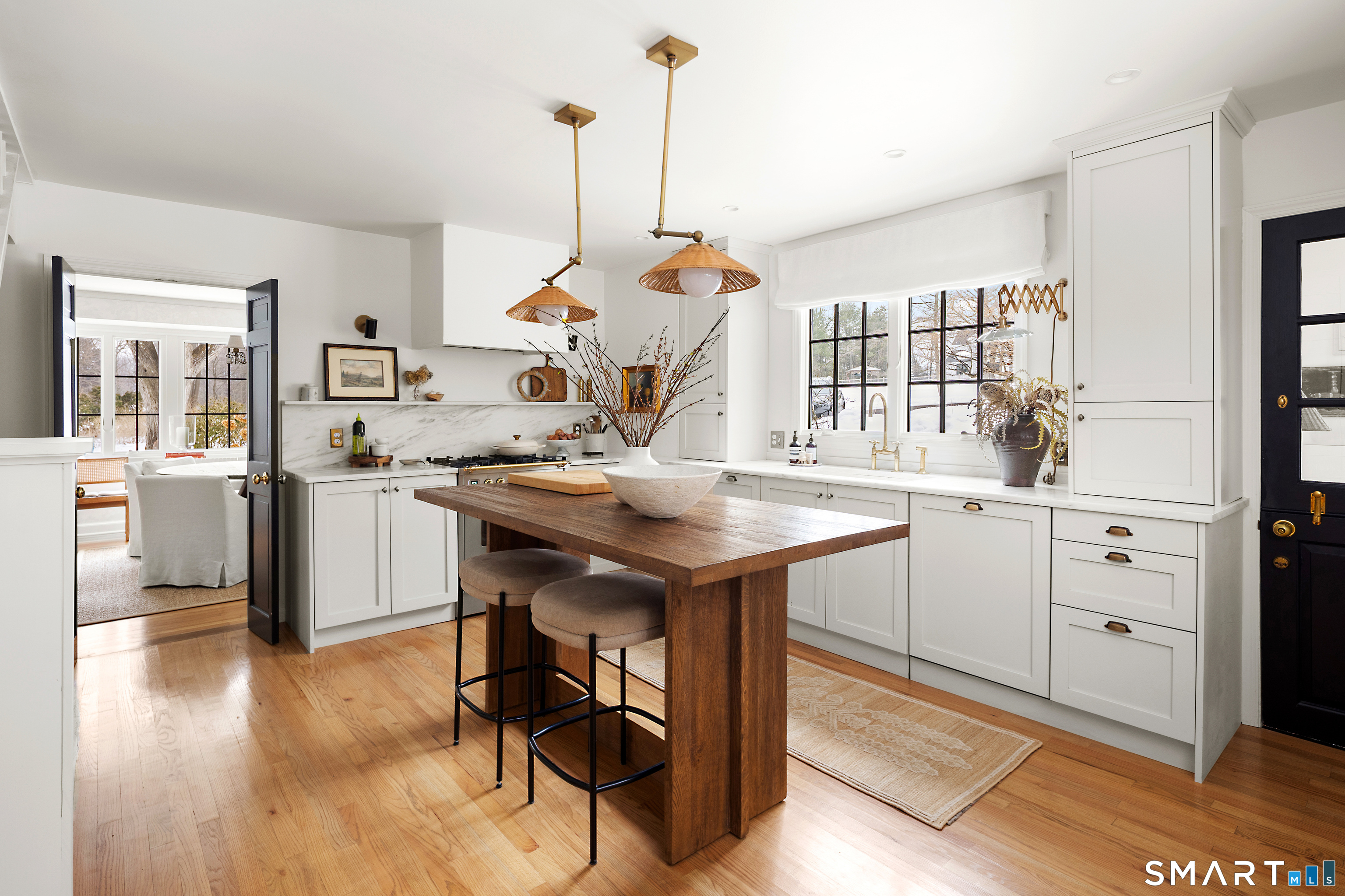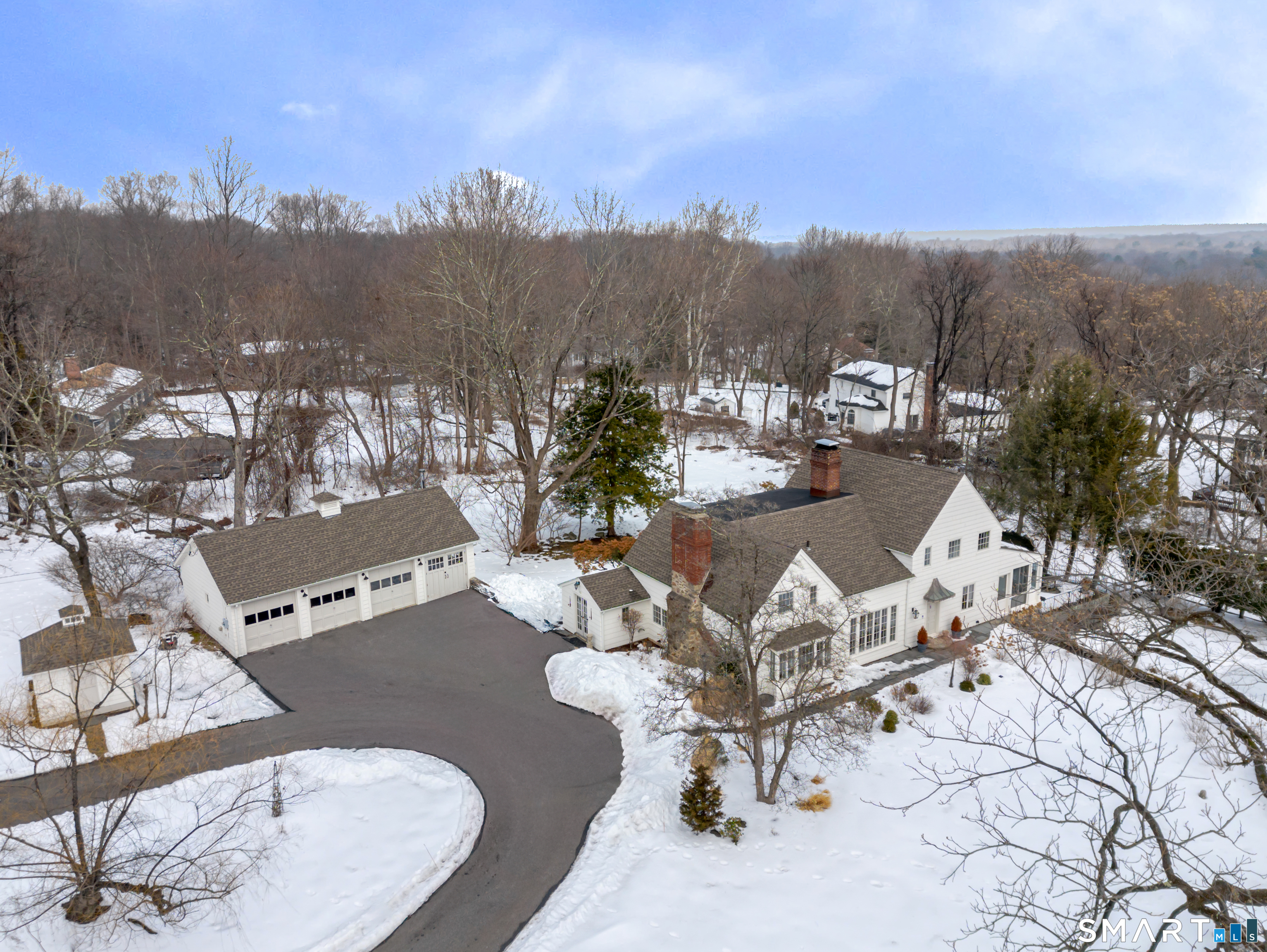 Quietly tucked away on ~2.5 private acres in the highly coveted Cranbury neighborhood, this stunning colonial estate offers an unparalleled lifestyle. Located just minutes from the heart of Norwalk, Westport, New Canaan and Wilton this one-of-a-kind home is a rare gem. Completely transformed inside and out by a visionary designer and architect duo, this home has been featured in countless magazines - and it shows. Every inch has been reimagined with intention, craftsmanship, and elevated style. This meticulously updated residence boasts 4 spacious bedrooms, with 3.5 stunning bathrooms, providing luxury and privacy. Every detail has been considered - from the beautifully appointed baths, to the luxurious chefs kitchen (with the most incredible Imperial Danby Marble), to the whole new house systems, all the way to the brand new roofs on home & structures + the finest lighting fixtures... just to name a few! Step outside to your own private oasis. Manicured grounds, mature plantings, and lush flower beds create a storybook setting. The fully updated sparkling pool, brand new bluestone patio and classic cedar split-rail fencing complete this idyllic retreat. Multiple outbuildings provide exceptional flexibility - ideal home office, artist studio, gym, hangout space, or potential pool house. The possibilities are endless. This home is the perfect combination of luxury, comfort, & convenience, and it's ready for you to move in & enjoy!