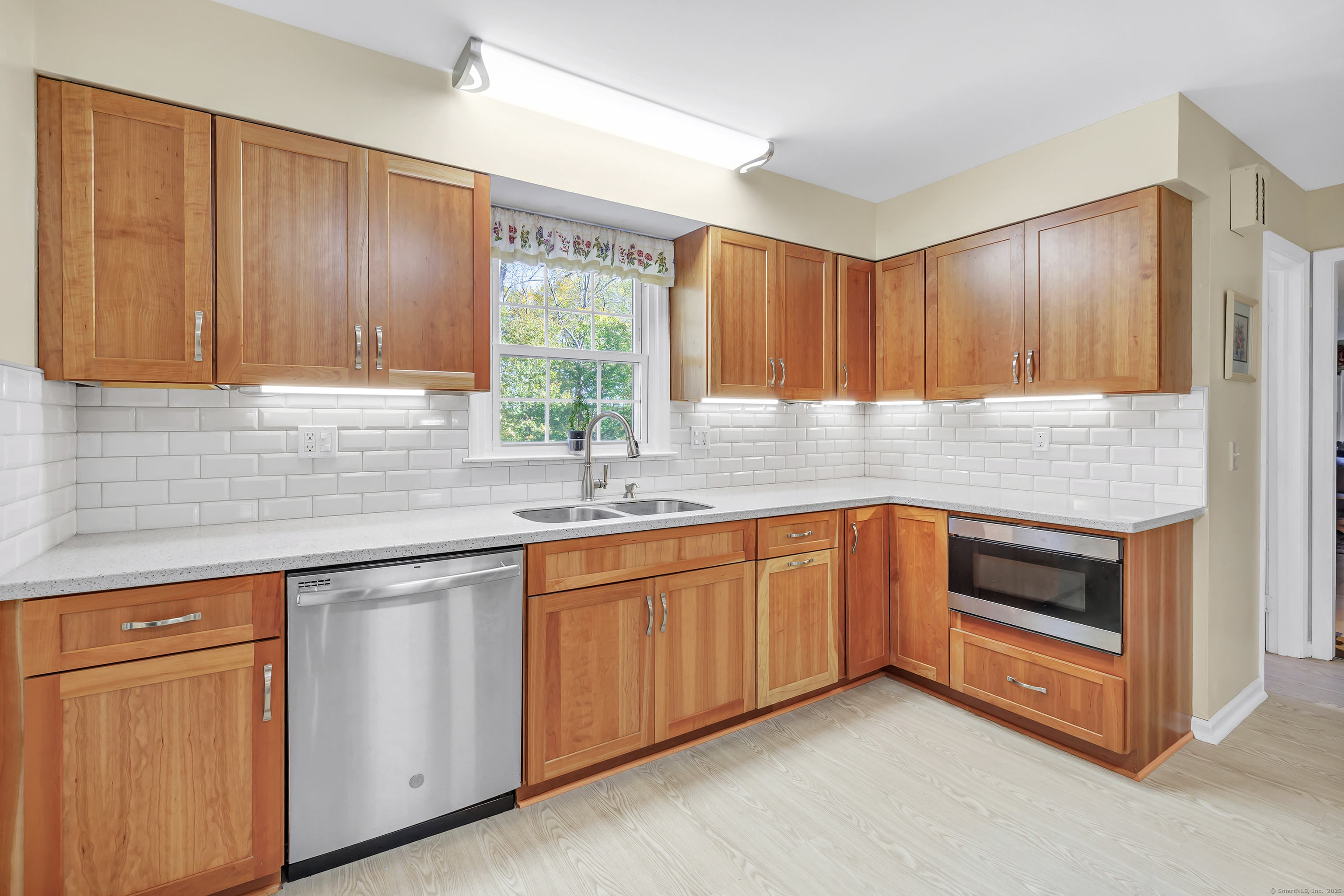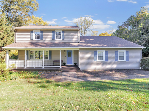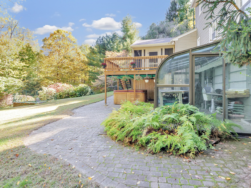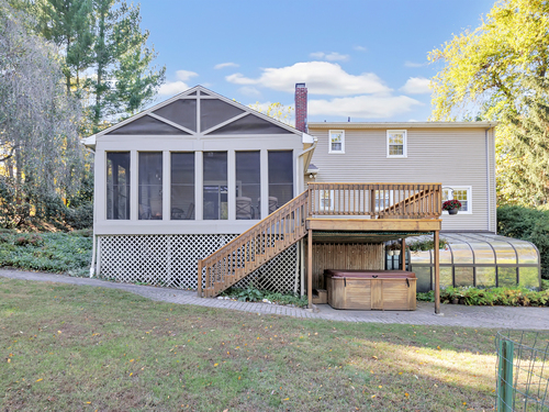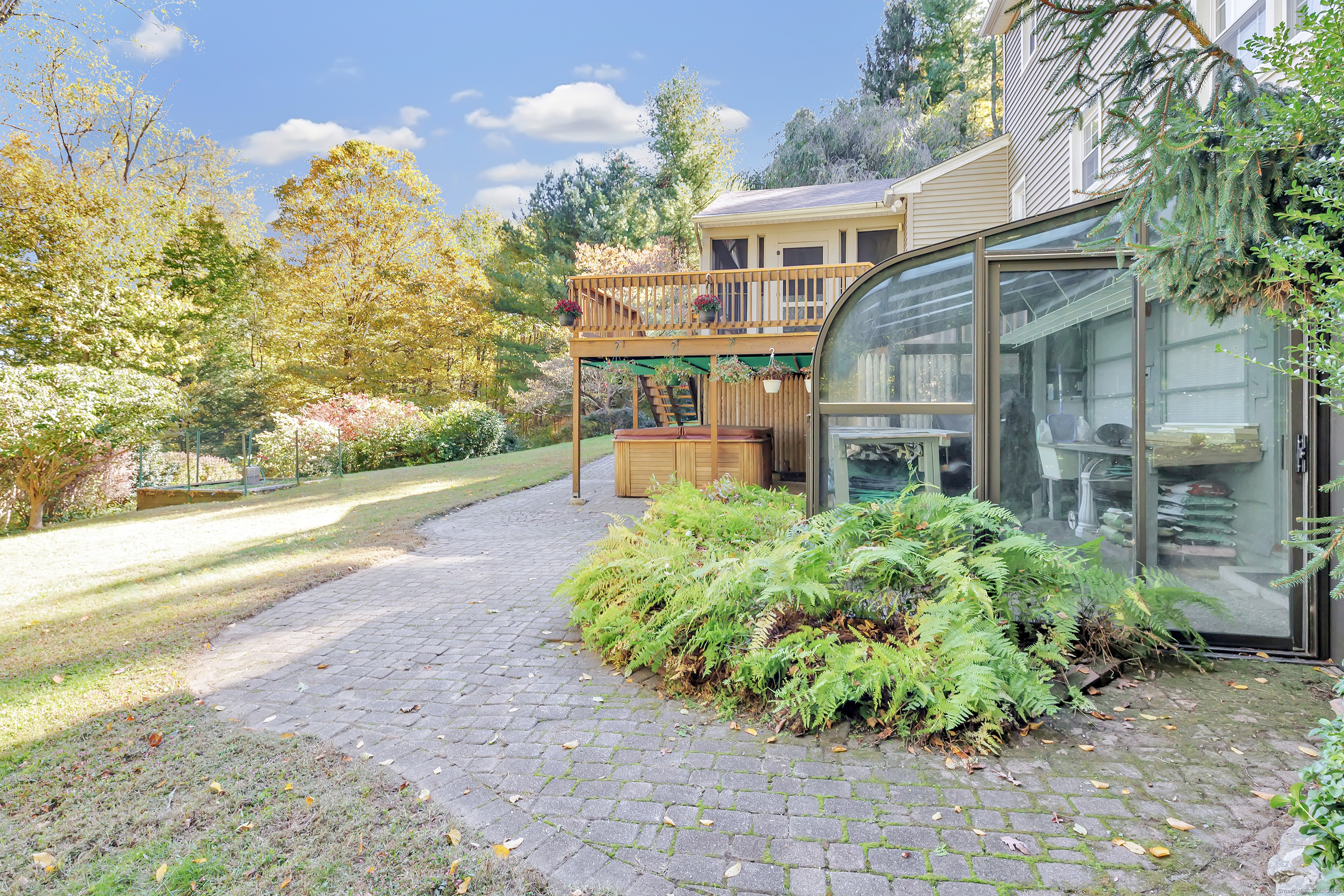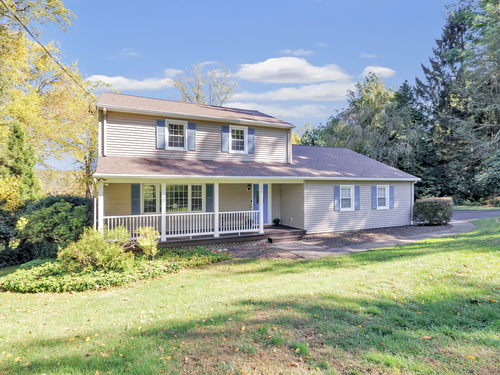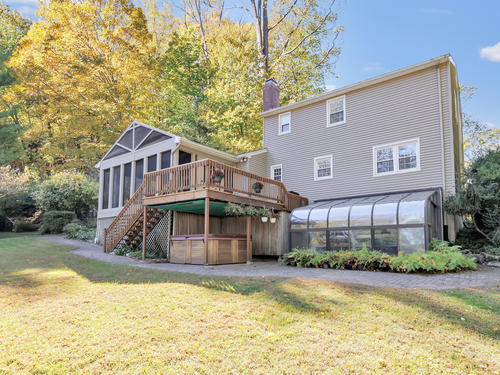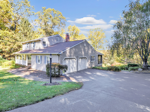 Nestled at the end of a quiet cul-de-sac in the White Hills, this 2.3 acre scenic property offers the perfect blend of comfort and serenity. Kick back and enjoy the beautiful ridge view of the Oxford countryside. This unique property abuts the Shelton Land Conservation Trust property that contains the Poet Path section of the Paugussett Trail. Head north on this trail to enjoy vistas of the Housatonic River and Lake Zoar. The front of the house has an open porch, which faces west. Enter thru the front door and be greeted by the rose tile foyer. From here, go left to enjoy the afternoon sun through the large window in the inviting living room, or go straight down the hallway to the remodeled kitchen, which boasts custom cherry cabinets, subway tile, induction cooktop, convection oven, and microwave drawer. If you can draw yourself away from the view of the Oxford Countryside from the dining room, go through the kitchen and step down into the cozy family room, which has built-in shelves, a glass door wood stove insert that can heat the whole house, and a slider to the screened porch. Step out of this porch and onto the multilevel deck to behold the view of the beautiful yard and countryside. Walk down the deck stairs and onto the patio to unwind in the hot tub under the deck. There is a greenhouse with a sink attached to the home, a fenced garden with running water, a detached storage hut with electricity and multiple walking paths for you to enjoy.