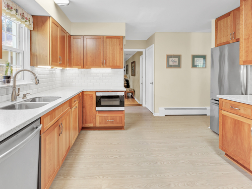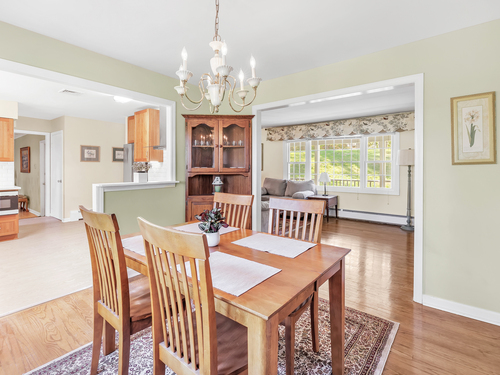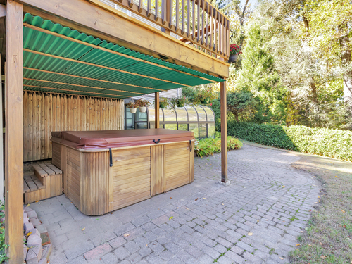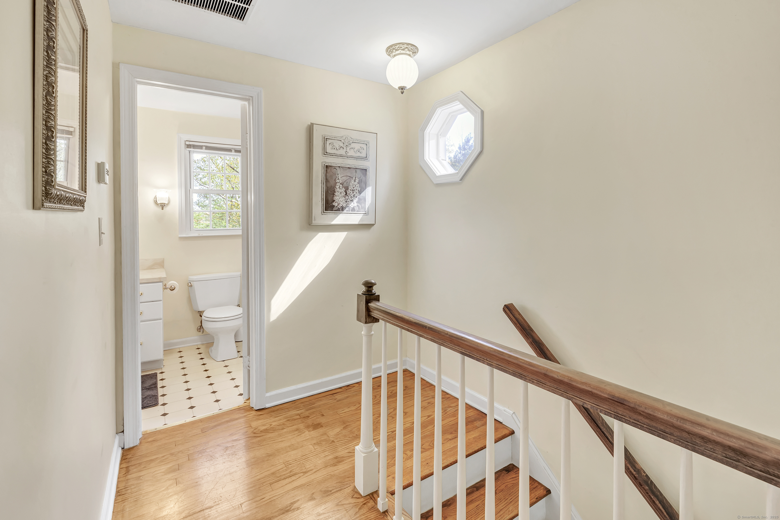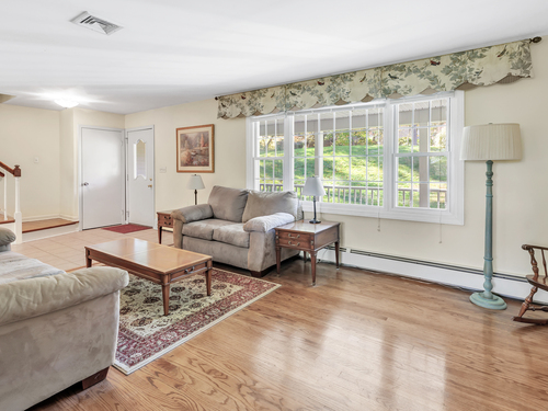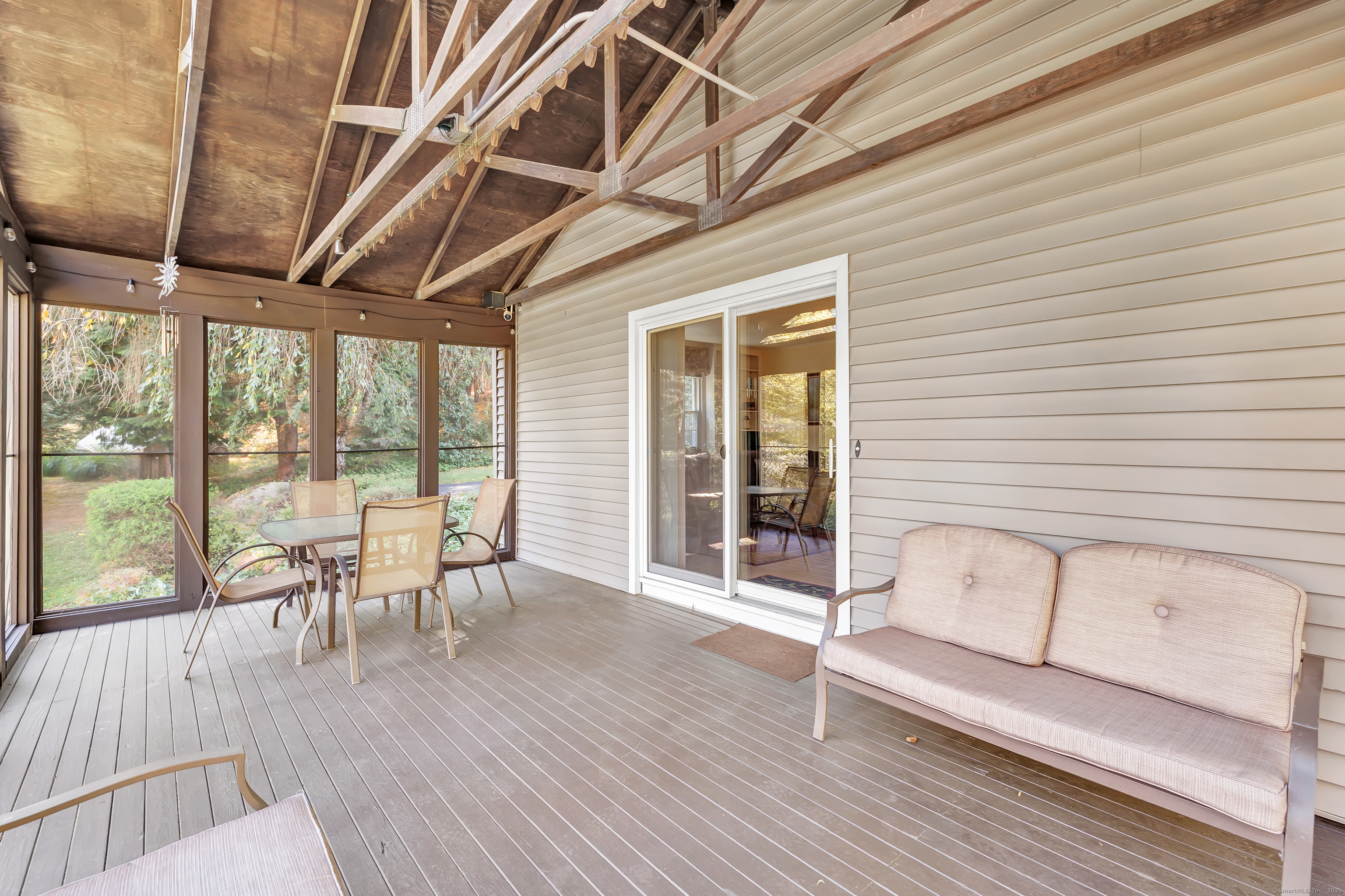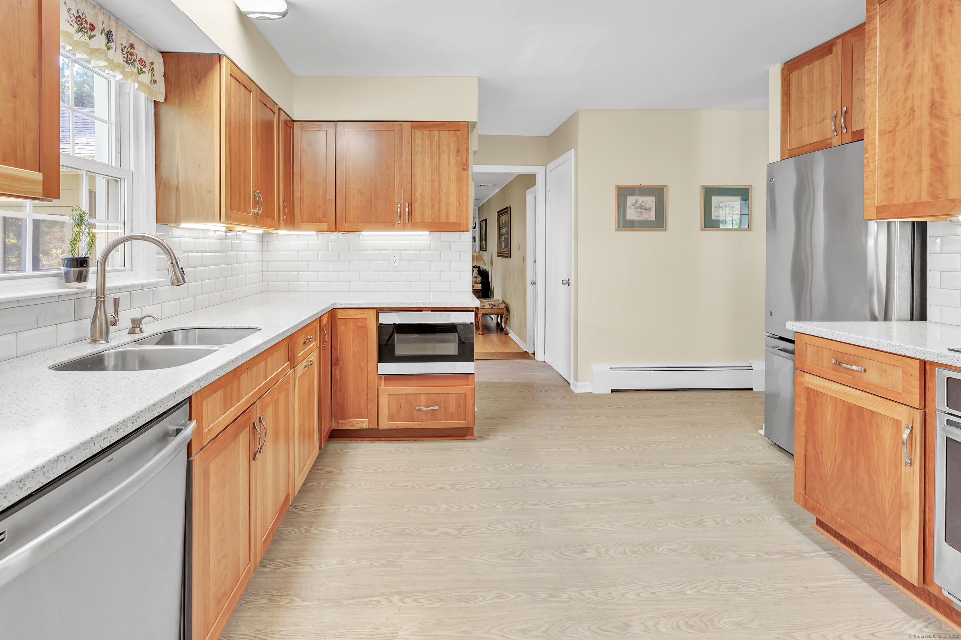Nestled at the end of a quiet cul-de-sac in the White Hills, this 2.3 acre scenic property offers the perfect blend of comfort and serenity. Kick back and enjoy the beautiful ridge view of the Oxford countryside. This unique property abuts the Shelton Land Conservation Trust property that contains the Poet Path section of the Paugussett Trail. Head north on this trail to enjoy vistas of the Housatonic River and Lake Zoar. The front of the house has an open porch, which faces west. Enter thru the front door and be greeted by the rose tile foyer. From here, go left to enjoy the afternoon sun through the large window in the inviting living room, or go straight down the hallway to the remodeled kitchen, which boasts custom cherry cabinets, subway tile, induction cooktop, convection oven, and microwave drawer. If you can draw yourself away from the view of the Oxford Countryside from the dining room, go through the kitchen and step down into the cozy family room, which has built-in shelves, a glass door wood stove insert that can heat the whole house, and a slider to the screened porch. Step out of this porch and onto the multilevel deck to behold the view of the beautiful yard and countryside. Walk down the deck stairs and onto the patio to unwind in the hot tub under the deck. There is a greenhouse with a sink attached to the home, a fenced garden with running water, a detached storage hut with electricity and multiple walking paths for you to enjoy.