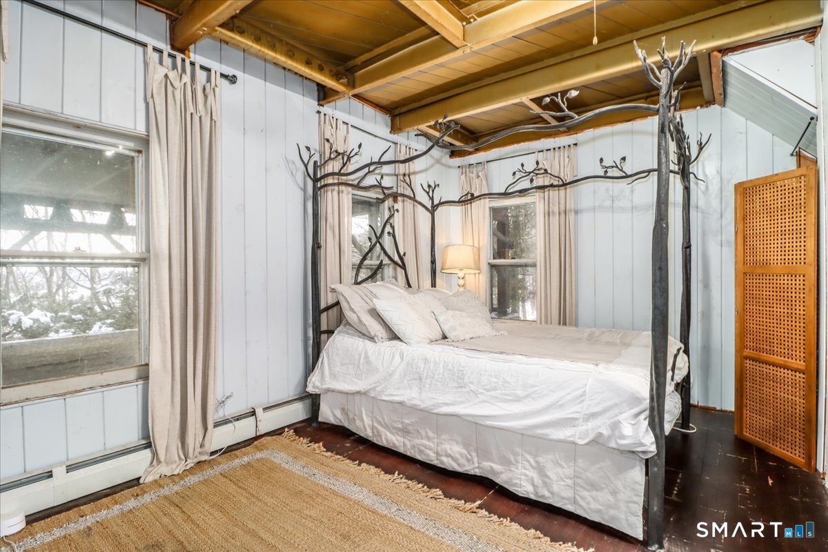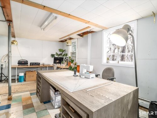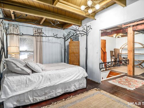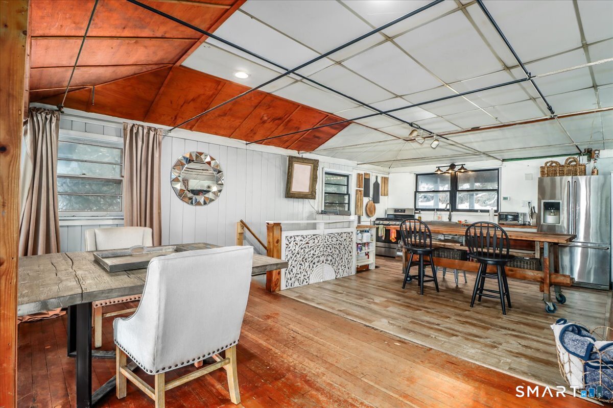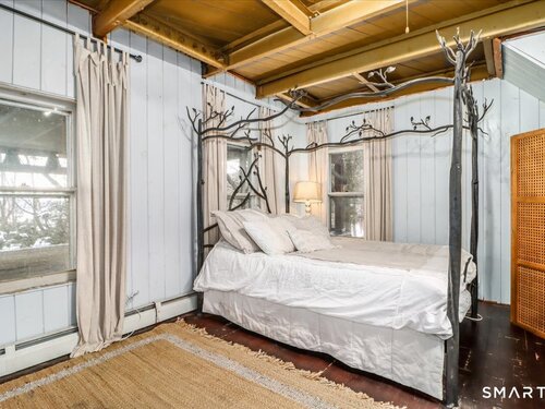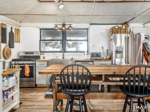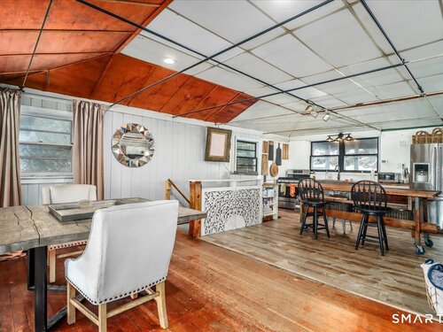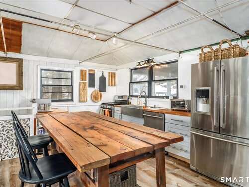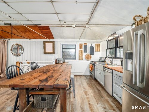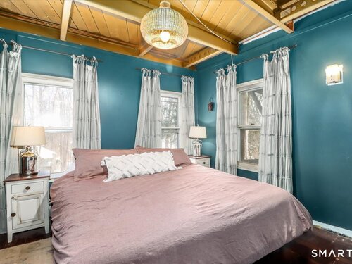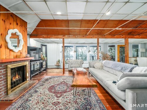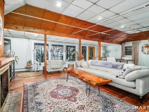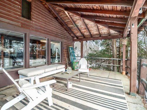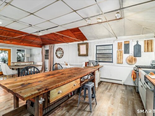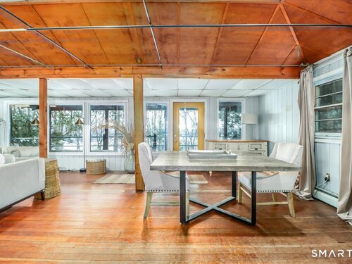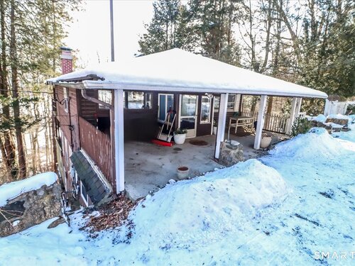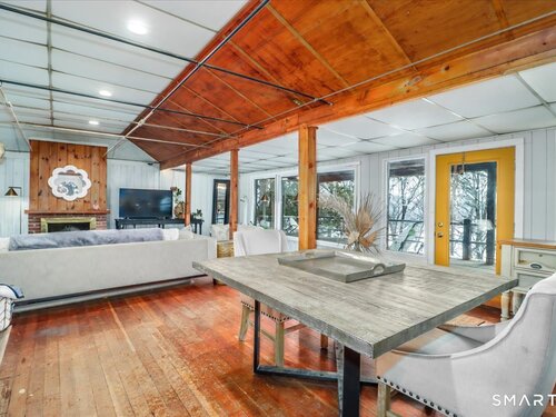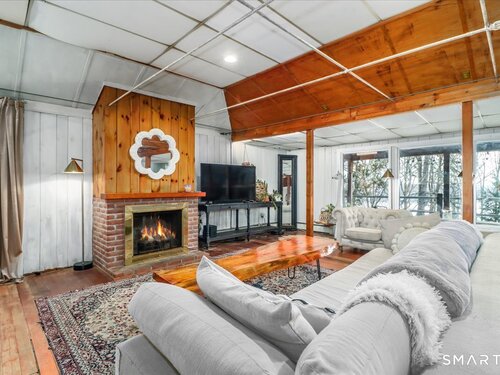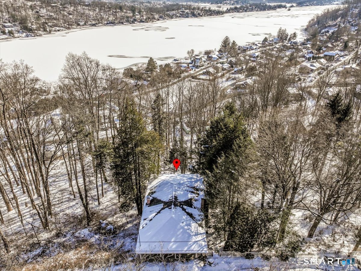 Tucked among the trees with seasonal views of Candlewood Lake, this storybook cottage feels like a hidden retreat where creativity and nature meet. The first floor features an open floor plan with an updated kitchen, living room with fireplace, and a dining area with sliders leading to a deck-perfect for enjoying peaceful lake glimpses and the surrounding natural beauty. The home offers 1-2 bedrooms and 2 full bathrooms, providing flexible living space. The lower level has previously been used as an artist/sculptor/ceramic studio and is equipped with 220 amp electrical service, making it ideal for creative pursuits, workshop space, or additional flexible use. Outside, the property showcases rare and interesting features including old outdoor kilns, a pumphouse, and a second driveway, adding to the home's distinctive appeal. A special retreat for artists, weekenders, or anyone seeking a serene escape near Candlewood Lake. It is truly a unique setting rich with character!