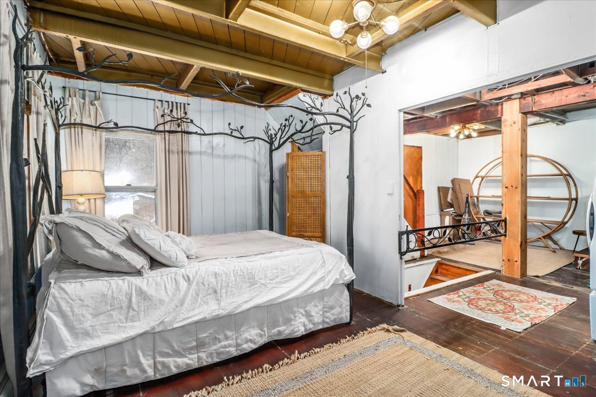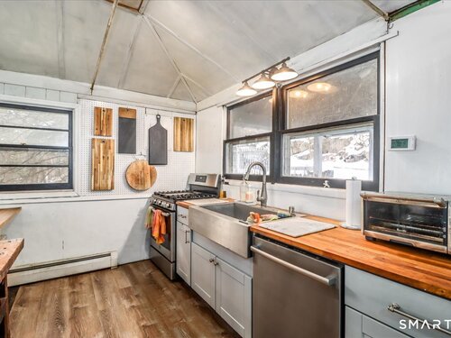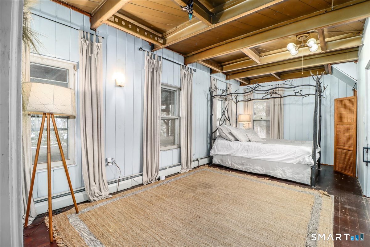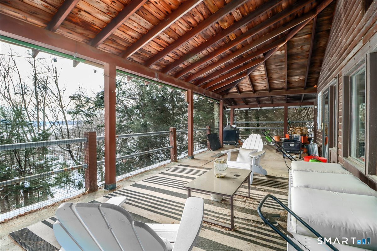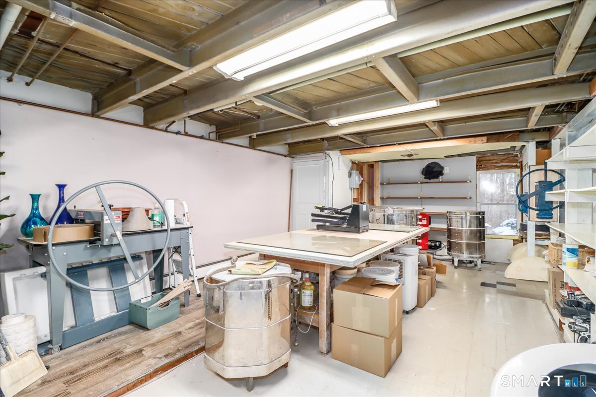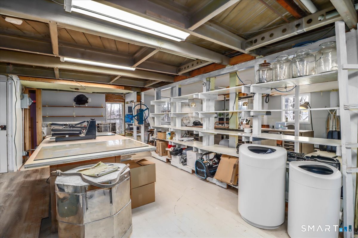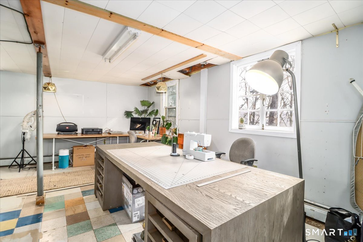 Tucked among the trees with seasonal views of Candlewood Lake, this storybook cottage feels like a hidden retreat where creativity and nature meet. The first floor features an open floor plan with an updated kitchen, living room with fireplace, and a dining area with sliders leading to a deck-perfect for enjoying peaceful lake glimpses and the surrounding natural beauty. The home offers 1-2 bedrooms and 2 full bathrooms, providing flexible living space. The lower level has previously been used as an artist/sculptor/ceramic studio and is equipped with 220 amp electrical service, making it ideal for creative pursuits, workshop space, or additional flexible use. Outside, the property showcases rare and interesting features including old outdoor kilns, a pumphouse, and a second driveway, adding to the home's distinctive appeal. A special retreat for artists, weekenders, or anyone seeking a serene escape near Candlewood Lake. It is truly a unique setting rich with character!