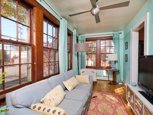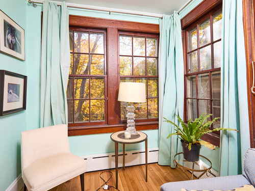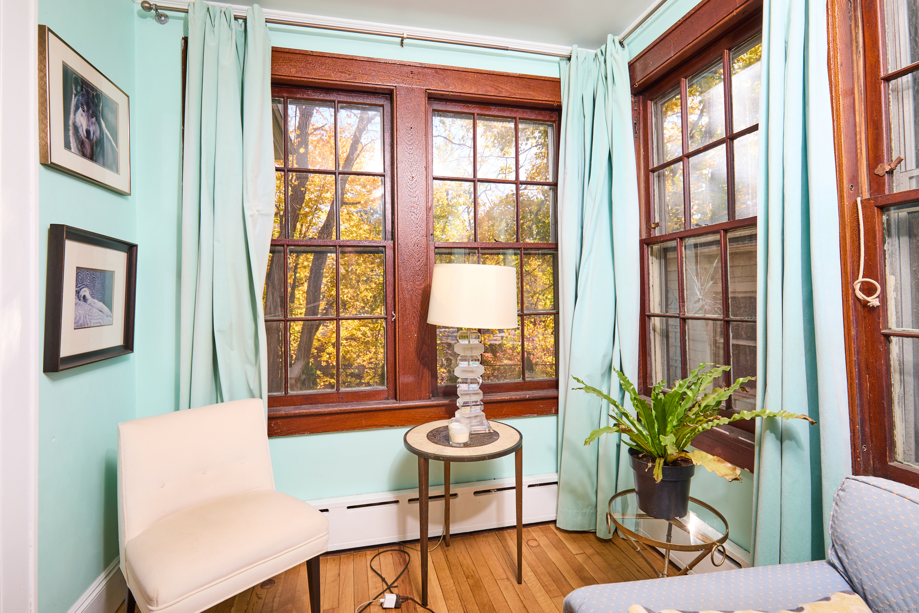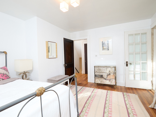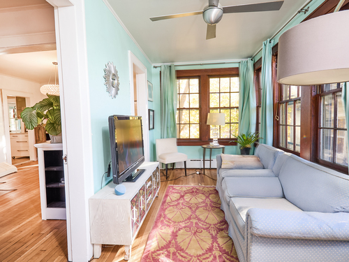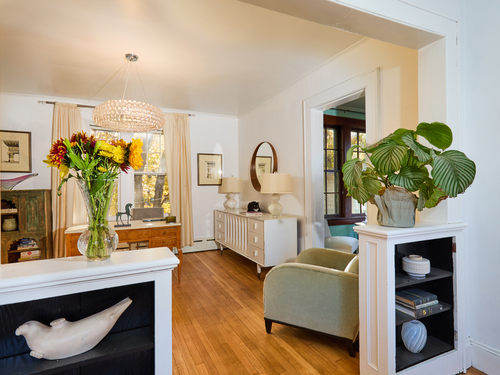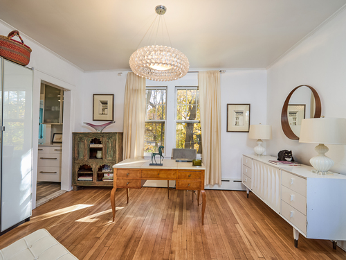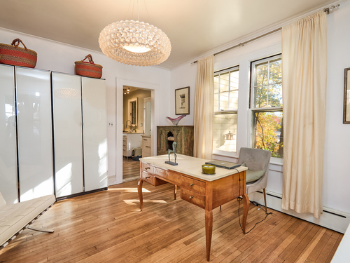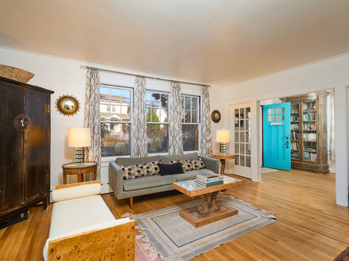 Built-Ins, Fireplace, French Doors, Hardwood Floor