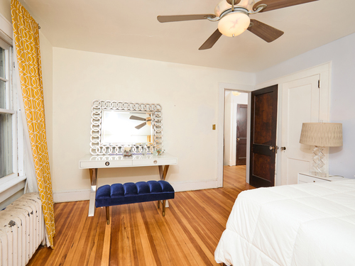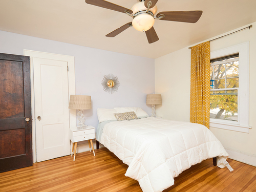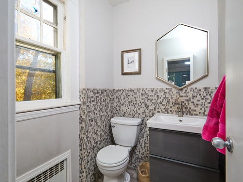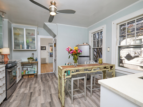 Ceiling Fan, Quartz Counters, Dining Area, Half Bath, Tile Floor