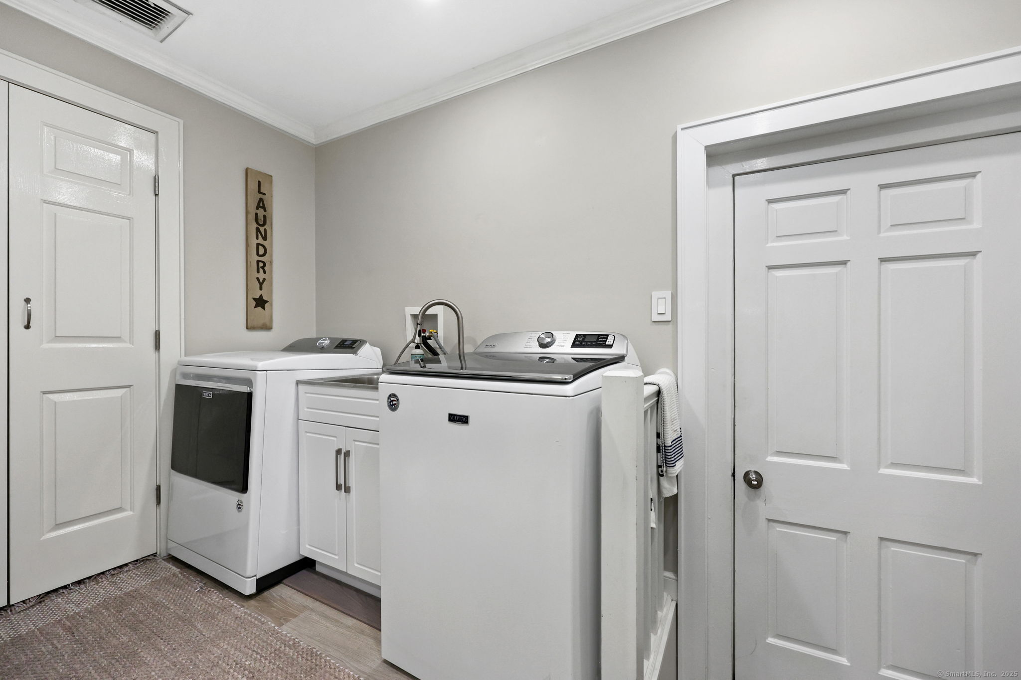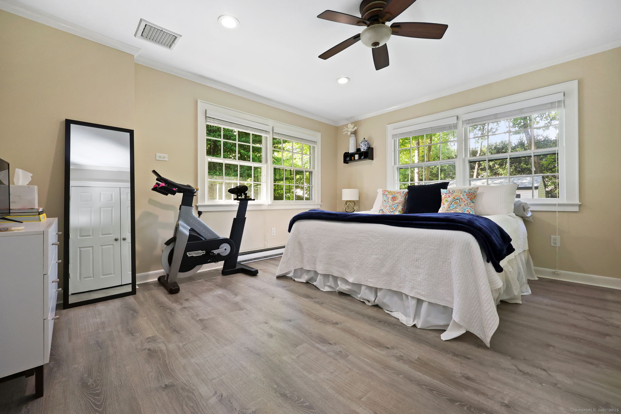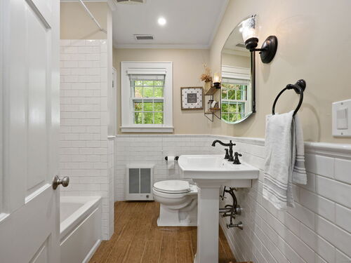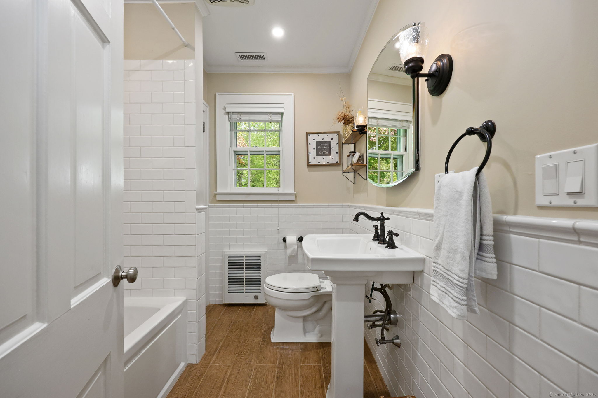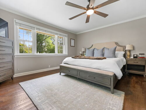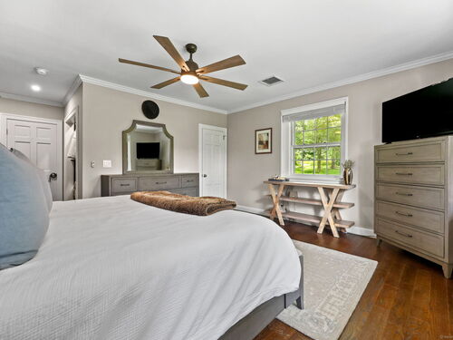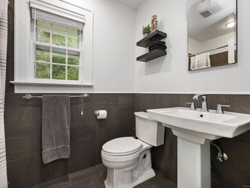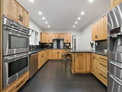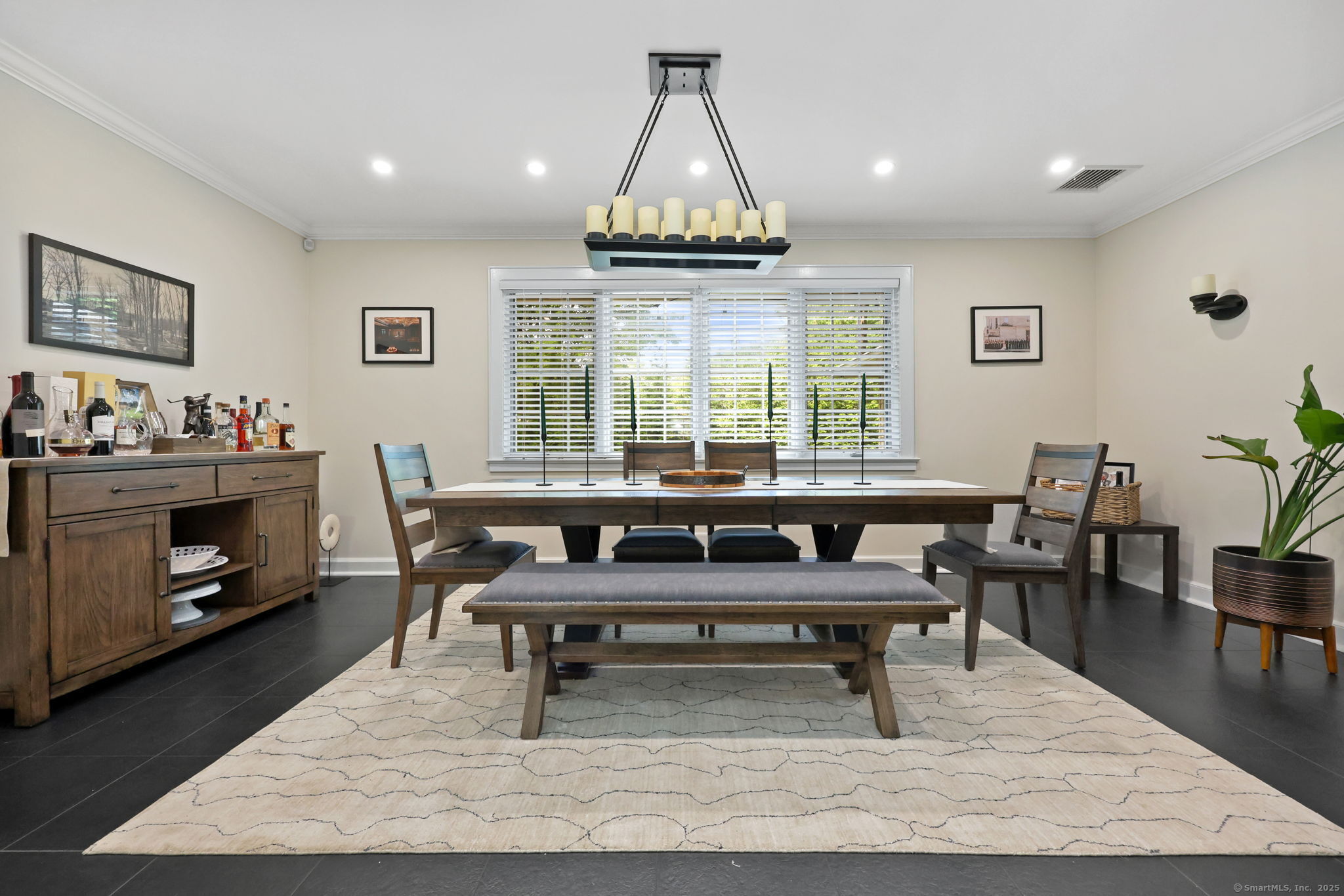 Beautifully updated 4-bedroom ranch on one level acre in a prime location close to train stations. A wraparound driveway leads to a spacious family room with fireplace, play area, and multiple seating areas. The primary suite includes a walk-in closet and en-suite bath, plus two additional bedrooms and a full bath. Dining room with bar and kitchen open to a large Azek deck, ideal for entertaining. Two-car garage and shed. Recent updates include landscaping with 55 Green Giant arborvitae for privacy and screening, new tile entry, fresh interior and exterior paint, upgraded HVAC, duct insulation, hot water heater (2024), and new attic and crawl space insulation for efficiency. A Tom Fazio-designed Swilcan Bridge replica adds a distinctive touch for golf enthusiasts.