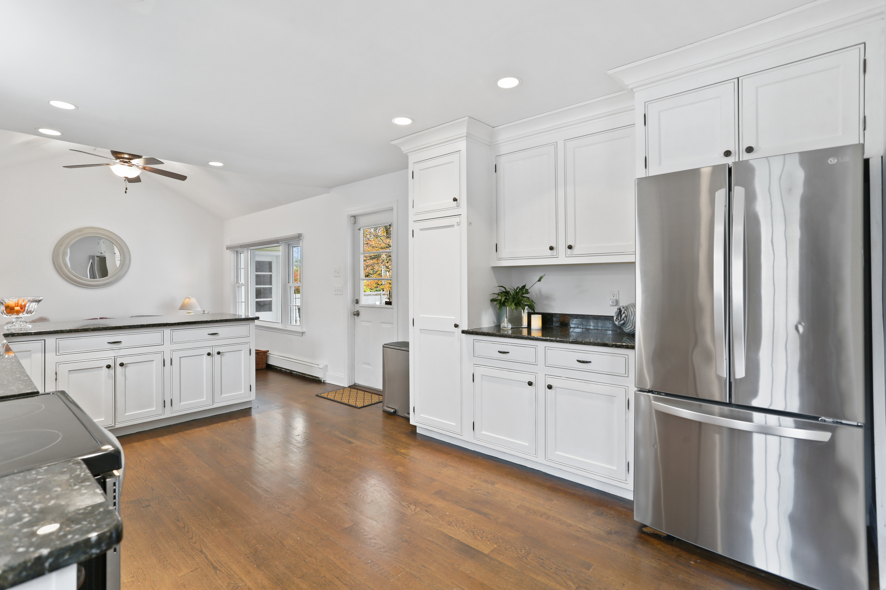 Lovable Ranch Style Home in convenient Lower Easton located on level lot at end of cul-de-sac. Sunny and welcoming home with excellent room scale throughout. Living Room/Family Room boasts wood-burning Fireplace and picture window. Dining Room opens nicely to either Living Room or Kitchen. Spacious Kitchen offers granite counters, newly painted Cabinets (lots of storage space), stainless steel appliances and plenty of room to entertain! Sweet Sitting Area by Breakfast Bar offers more space to hang out or spend solitary time. Home Office/Possible 4th Bedroom (no closet) has Skylight; adjacent Full Bath has room for Washer & Dryer (currently in place) 16 Manor Lane has 3 Bedrooms & Full Hallway Bathroom. Lovely Backyard has sun-filled wooden Deck opening to patio flanked by stone wall. Cozy & Charming and conveniently located minutes to Merritt Parkway and Easton's landmark farms such as Silverman's.