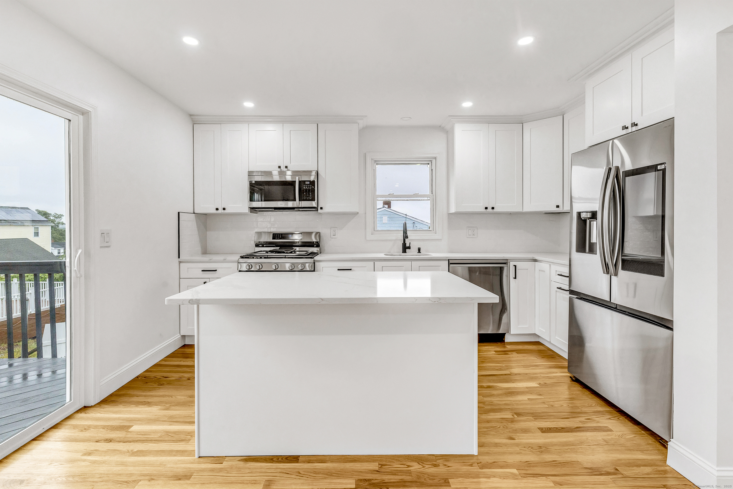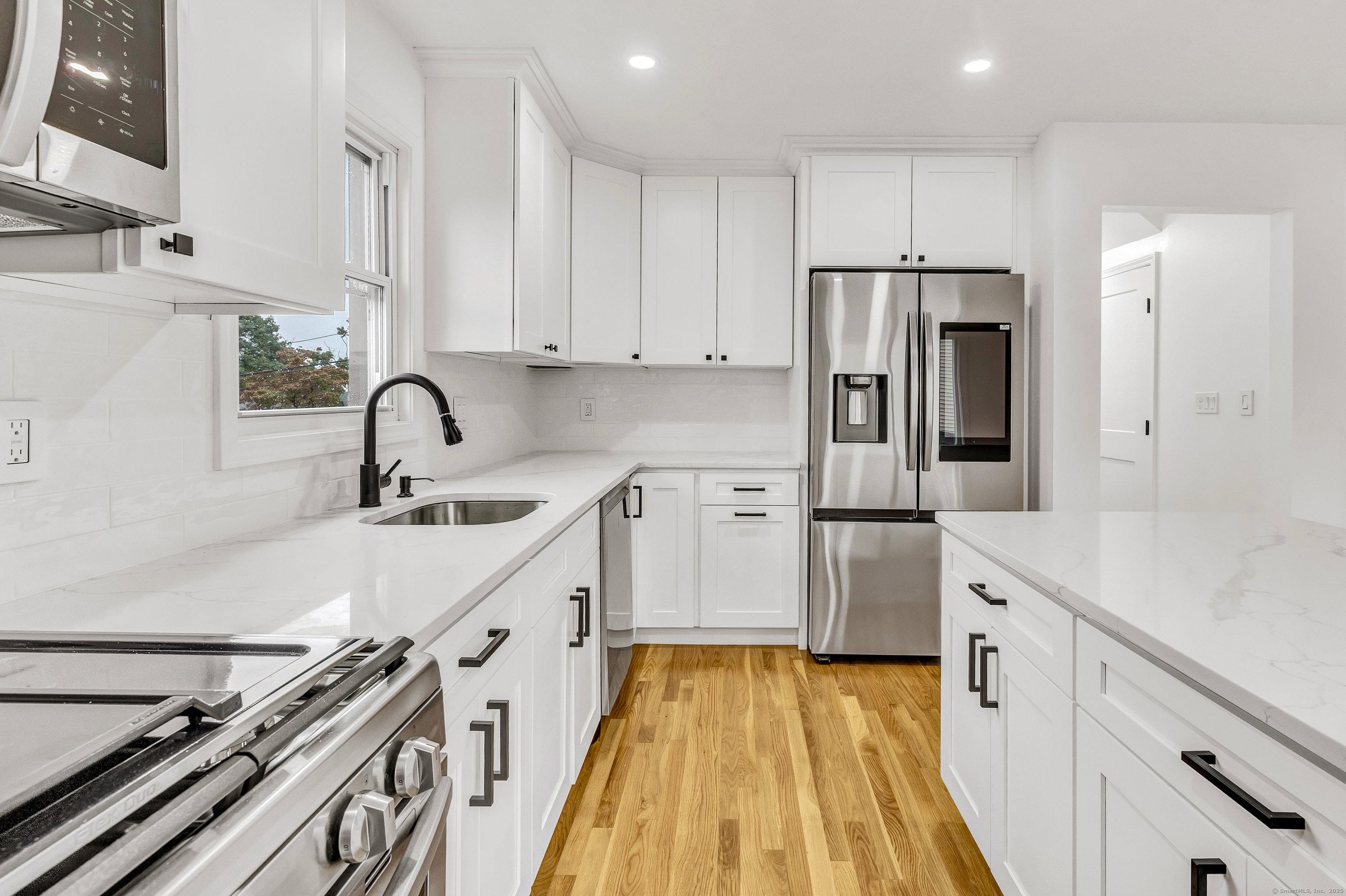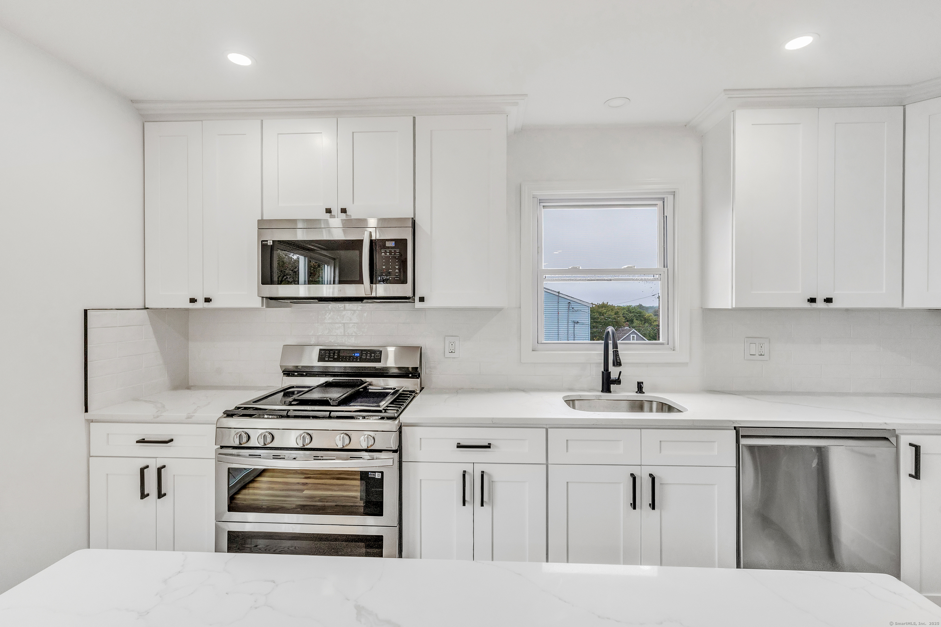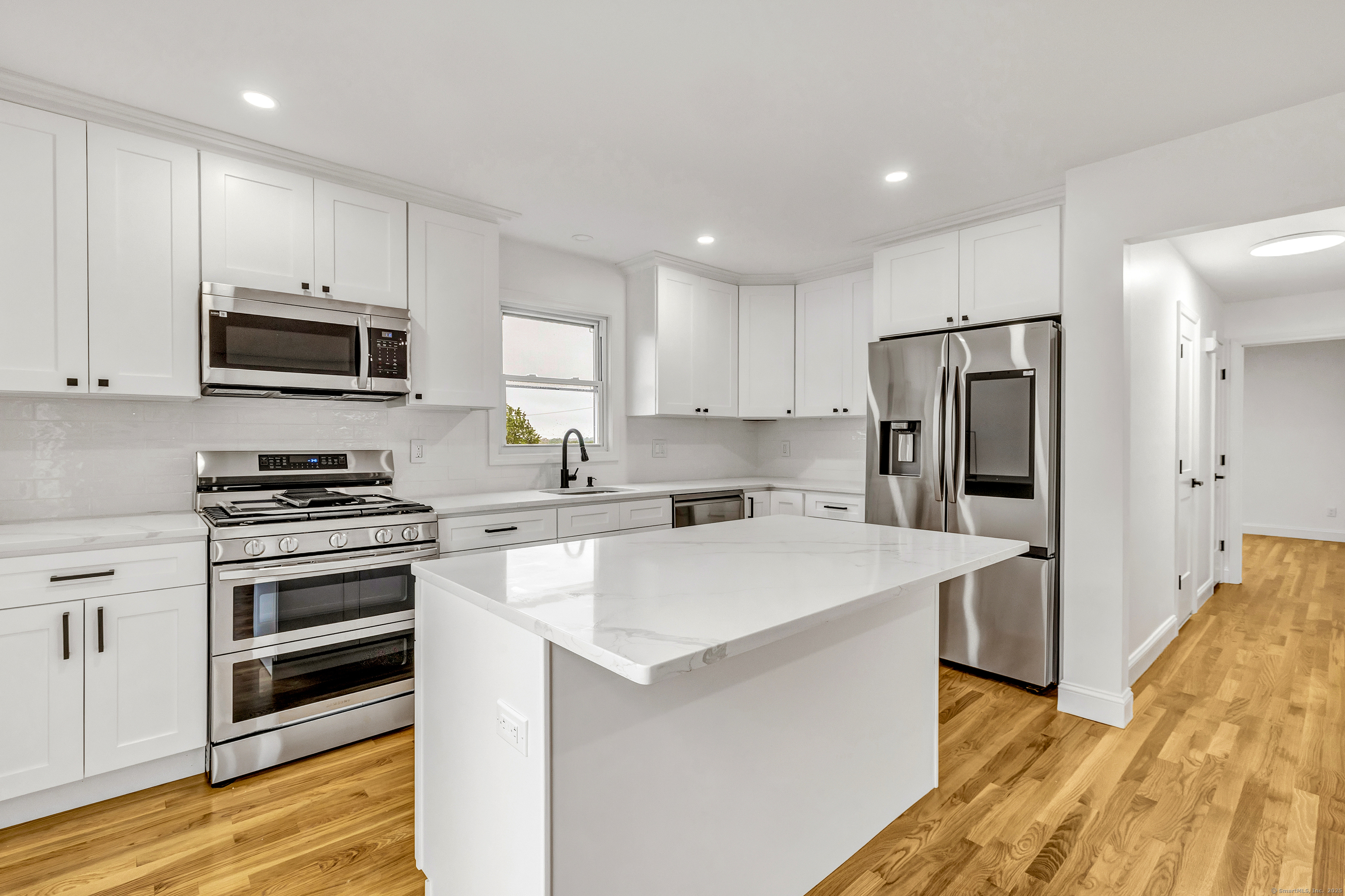 Newly remodeled stunning corner-lot Cape Cod, located in Bridgeport's North End. Offering over 2,700+ sq. ft. of beautifully remodeled living space with 3 bedrooms and 2 full baths. Fully upgraded for modern comfort, it features foam insulation, central air, gas heat, a tankless water heater, and a gorgeous eat-in kitchen with smart stainless steel appliances. The finished basement adds extra living space, a laundry room, and garage access, while outside you'll find a newly paved driveway, connected deck, and exceptional curb appeal-perfect for relaxing or entertaining. Conveniently located near highways, shopping, and public transportation, this move-in-ready home perfectly blends comfort, efficiency, and style-schedule your showing today