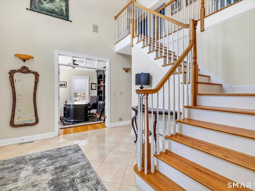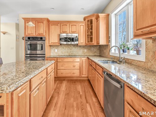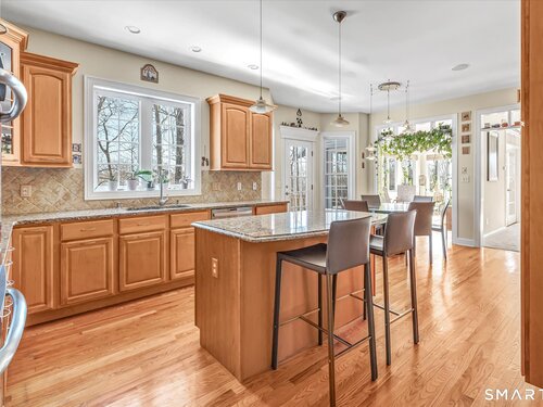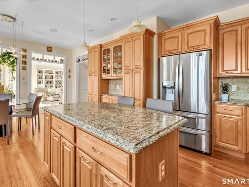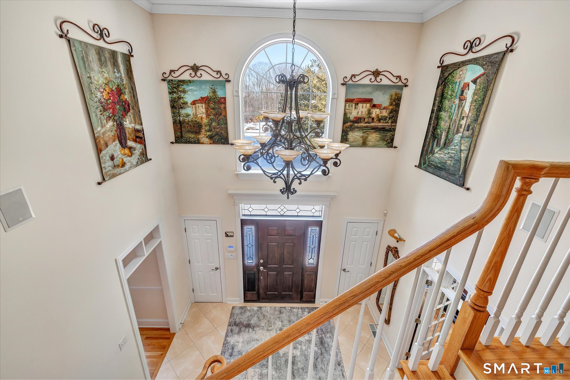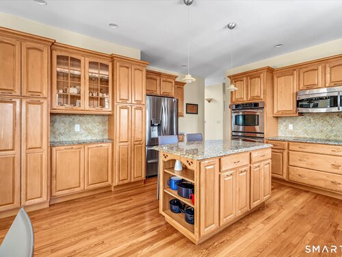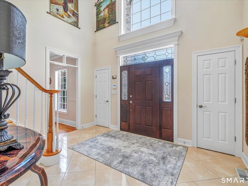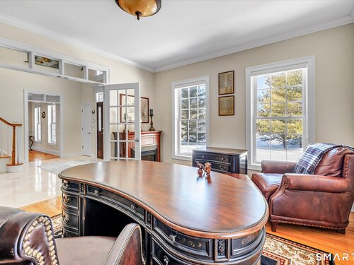 Custom-built "Trumbull"-style brick-front home set in the sought-after Huntington Woods community, offering exceptional space, comfort, and versatility. A grand two-story foyer with dual coat closets welcomes you into a thoughtfully designed interior featuring a formal office/den and elegant dining room, both with hardwood flooring. The spacious kitchen boasts granite countertops, center island, and a walk-out bay dining area with access to a rear deck and private backyard-perfect for everyday living and entertaining. A cozy family room perched over the three-car garage showcases a stone-surround fireplace and glass doors leading to a sun-filled sunroom. The main level also includes a fifth bedroom and full bath with convenient laundry access, ideal for guests or multi-generational living. Upstairs, you'll find four generously sized bedrooms, including a luxurious primary suite with tray ceiling, walk-in closet, and spa-like bath featuring heated tile floors, double vanity, whirlpool tub, and tiled shower, along with a hall bath offering heated marble floors. The walk-out lower level includes rough plumbing for a future bath and direct access to the three-car garage, providing endless potential for expansion. Beautiful rear yard! Sale subject to seller finding suitable housing (actively looking).