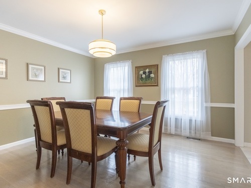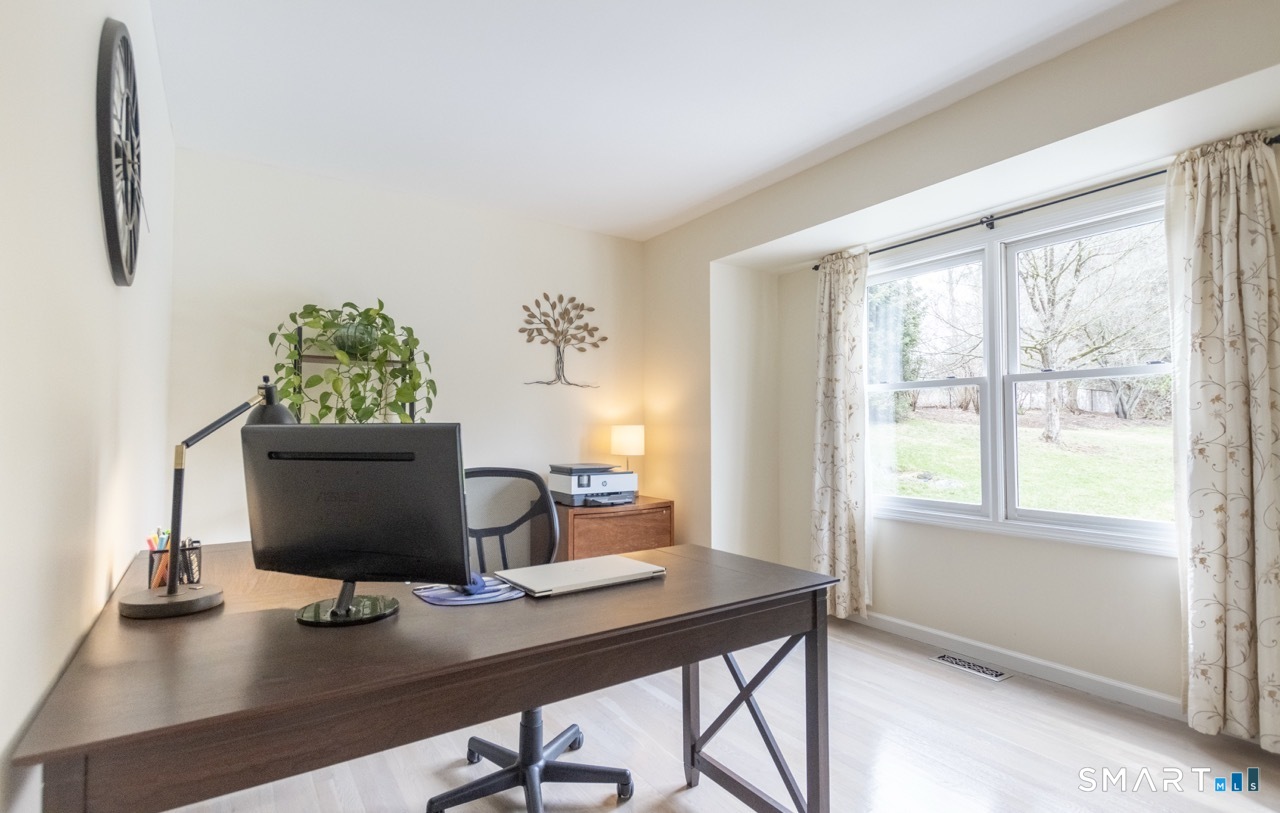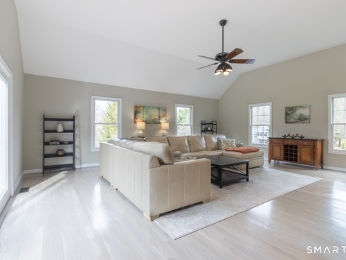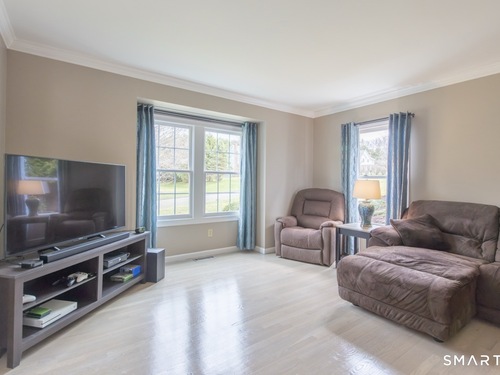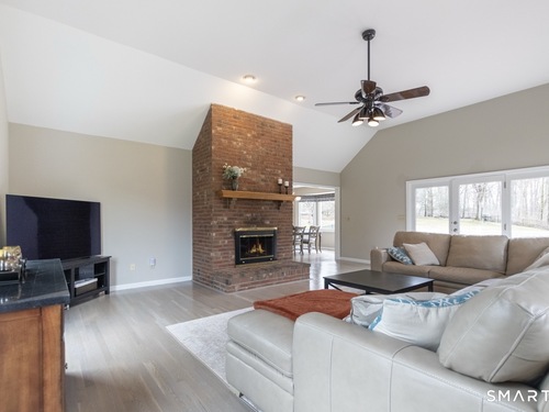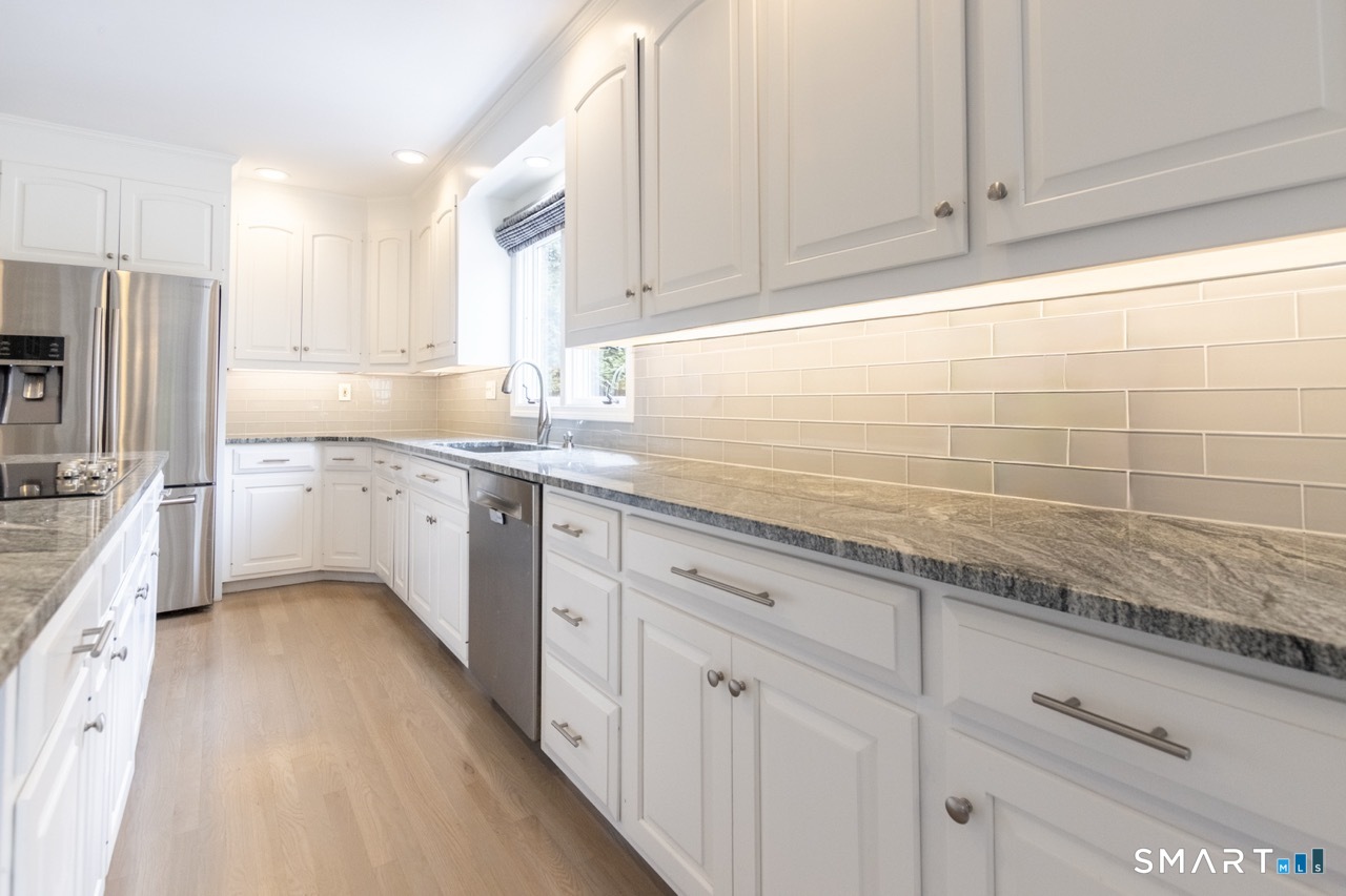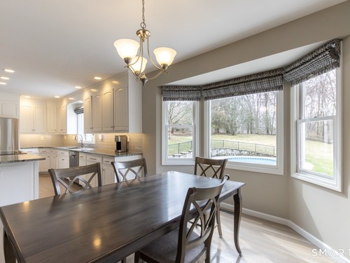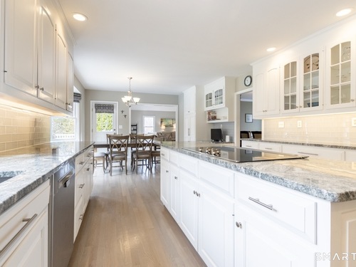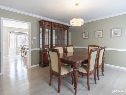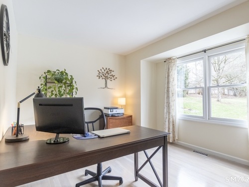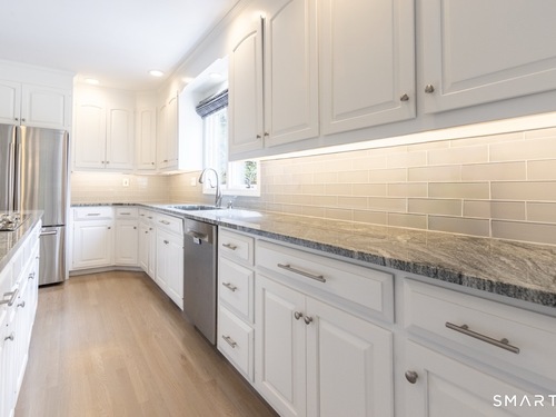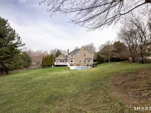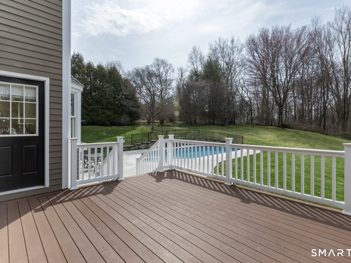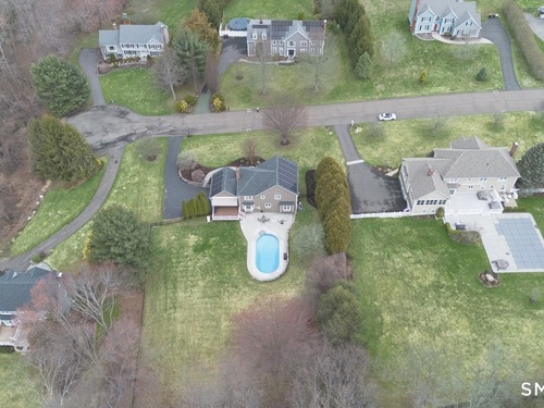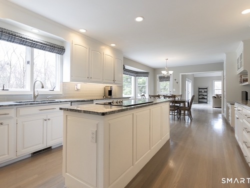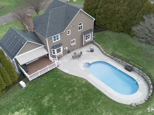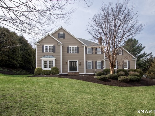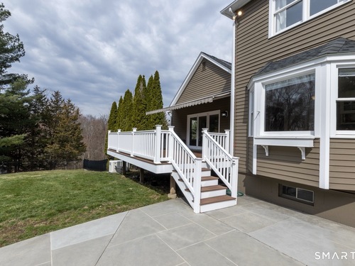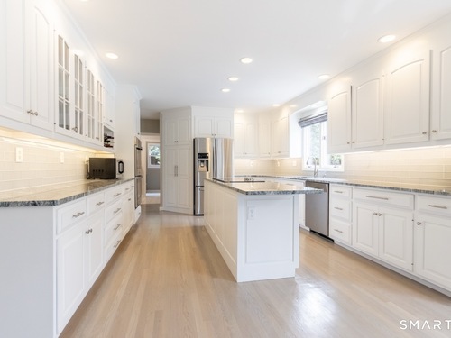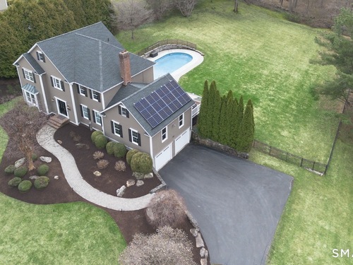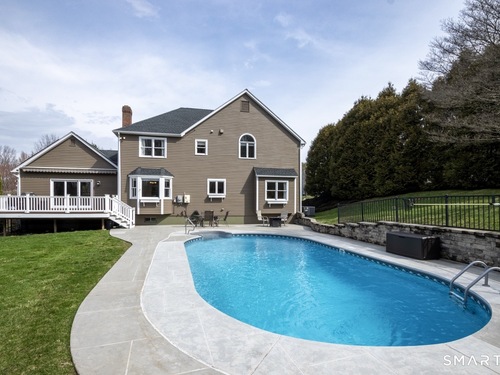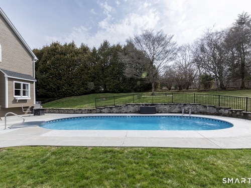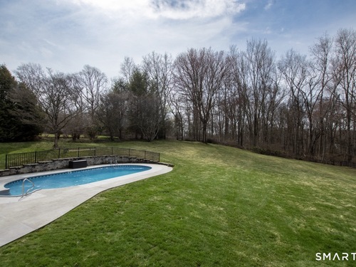 Set at the end of a quiet Nichols cul-de-sac, this sun-filled center hall Colonial offers a rare combination of privacy, space, and thoughtful updates on a level one-acre property with an in-ground pool. The home opens to a bright interior with beautifully refinished light-stained hardwood floors throughout. The main level features a spacious great room with a wood-burning fireplace and an updated eat-in kitchen with center island, granite countertops, generous cabinetry, and seamless access to the deck with awning-ideal for outdoor dining overlooking the peaceful yard, patio, and pool. The terrific floorplan also offers a formal dining room, living room and office all with gleaming hardwood floors. Upstairs, the home offers a well-appointed primary suite with an updated bath, along with a refreshed hall bathroom serving additional bedrooms. Meticulously maintained by the original owner, recent improvements include a whole-house generator, roof (2021), solar panels for reduced utility costs, 2023 A/C system, updated deck, professional landscaping, high-end fencing, resurfaced patio, and newer garage doors. The full basement also offers ample storage and future expansion potential. Ideally located with convenient access to Route 8, Merritt Parkway, I-95, and Metro-North. Experience the charm of Nichols with community events and optional membership to the Nichols Improvement Association.