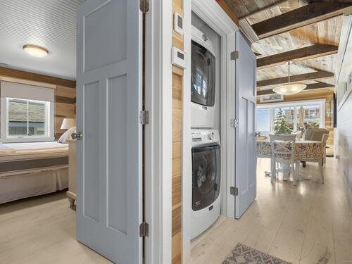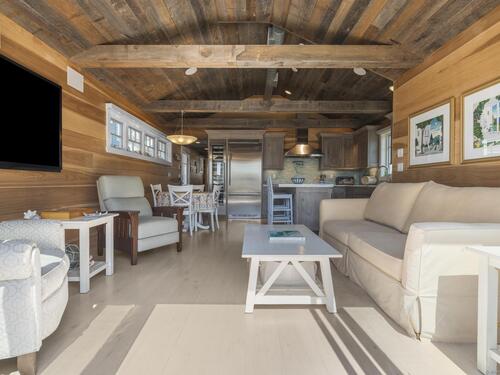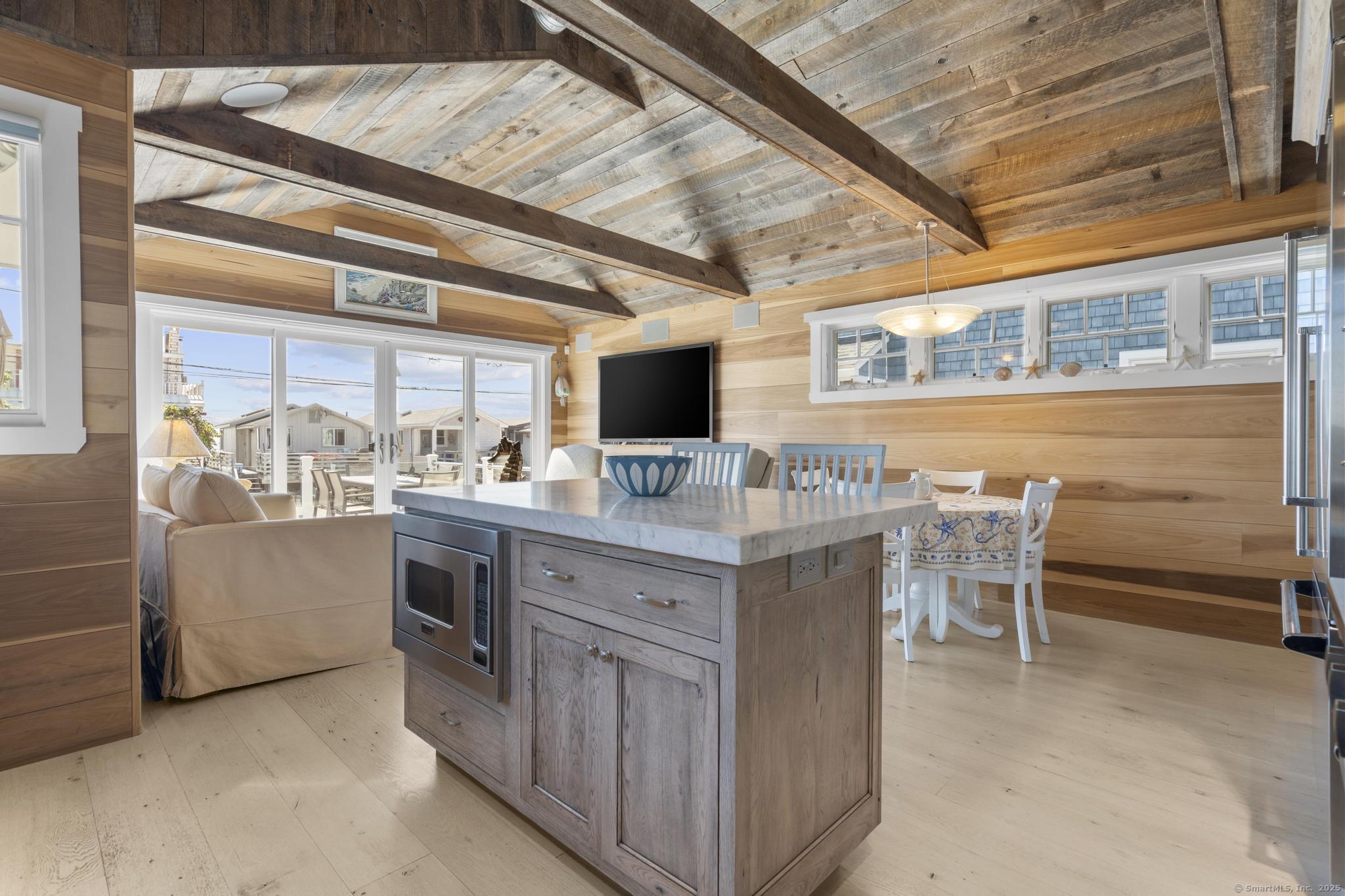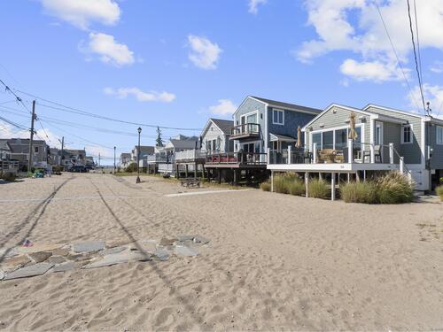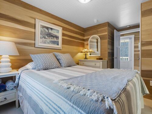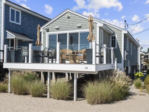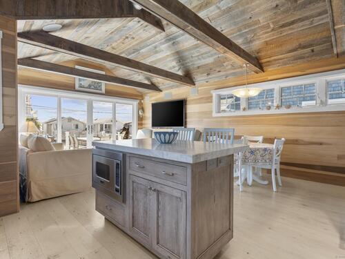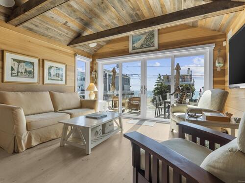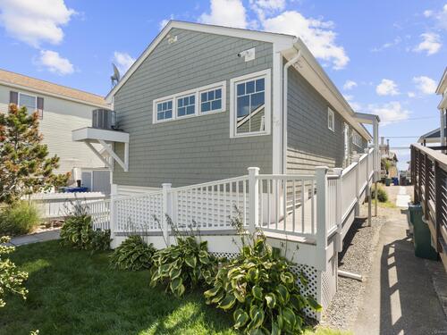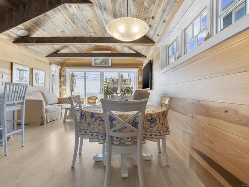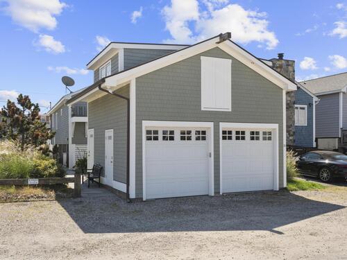 Step into this beautifully renovated 2-bedroom, 1 1/2-bathroom coastal haven, where luxury meets relaxed beachside living. Every detail has been thoughtfully curated with designer finishes, creating a seamless blend of modern elegance and coastal charm. The gourmet kitchen is a chef's dream, featuring Viking appliances, marble countertops, and custom cabinetry-perfect for entertaining or everyday living. Vaulted ceilings bathe the home in natural light, while rich Poplar wood interior walls add warmth and character throughout. The spa-inspired bathroom offers a serene retreat. Just steps from private beach access, this home provides the ultimate combination of comfort, style, and location. The HOA even offers amenities like a beach volleyball setup right across from the house, adding to the active, coastal lifestyle. Unique to this community, the home features the only 2-car garage, totaling 800 square feet. The garage itself offers 400 square feet of parking space, while the 400-square-foot area above provides incredible potential for an in-law suite, guest quarters, or home office. Both levels are equipped with mini-splits for heating and air conditioning, making the entire space fully climate controlled. Here, every day feels like a getaway-because at the beach, there's never a bad day.
