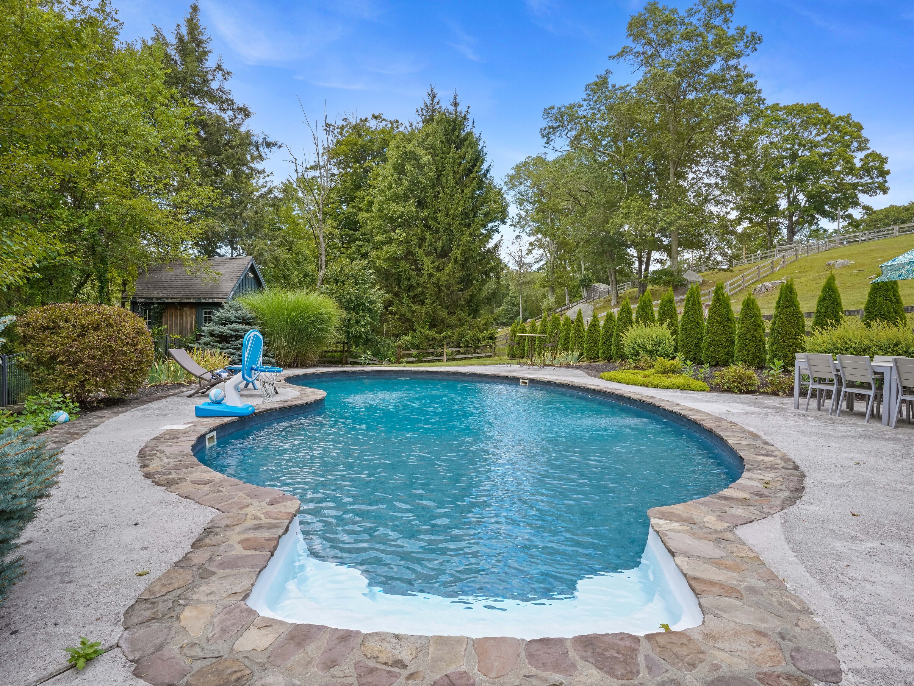 Your new life begins here. Amazing move-in, ready colonial in desirable Sandy Hook neighborhood of Newtown, CT. This one has it all! With space to spread out or gather together, either enjoying time by the pool, games in the yard, watching a movie in the great room, or sharing stories around the kitchen island. The main level has your great room connected to dining and eat in kitchen, perfect for holidays, gatherings or morning coffee. Plus the den and office for additional space or quiet moments. Upstairs are 3 generous bedrooms with 2 full baths, while downstairs has the bonus room ideally for games, music or exercise. Just some of the features; gorgeous redone master bath, In-ground pool with new liner, central A/C, new roof, (less than 12 months), Ductless heat/A/C downstairs, Generator hook up, new water PH system. Come see what life is like in your own, private oasis.
