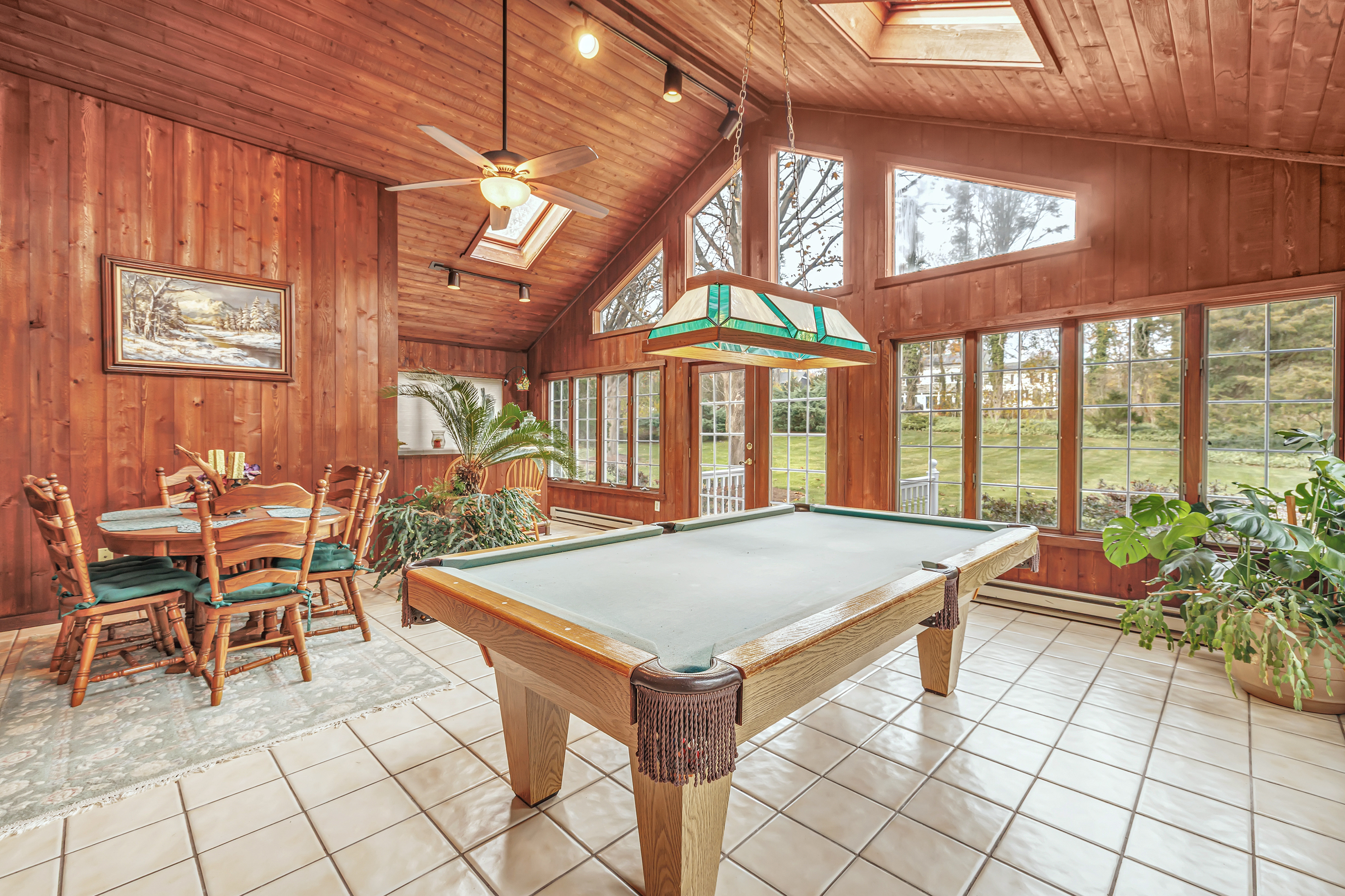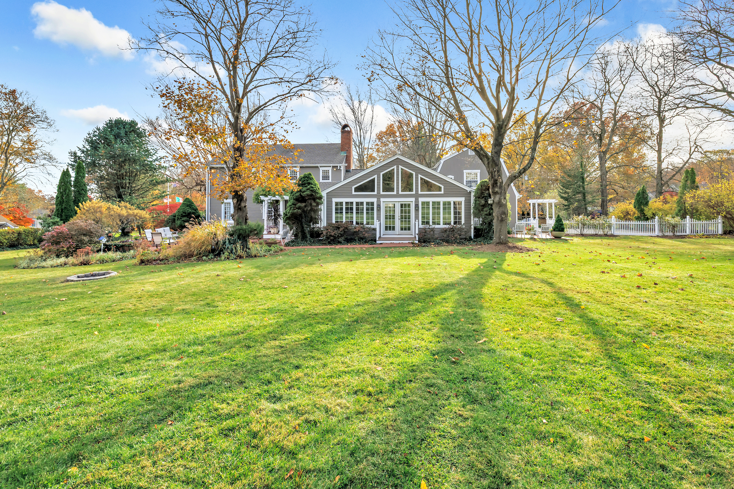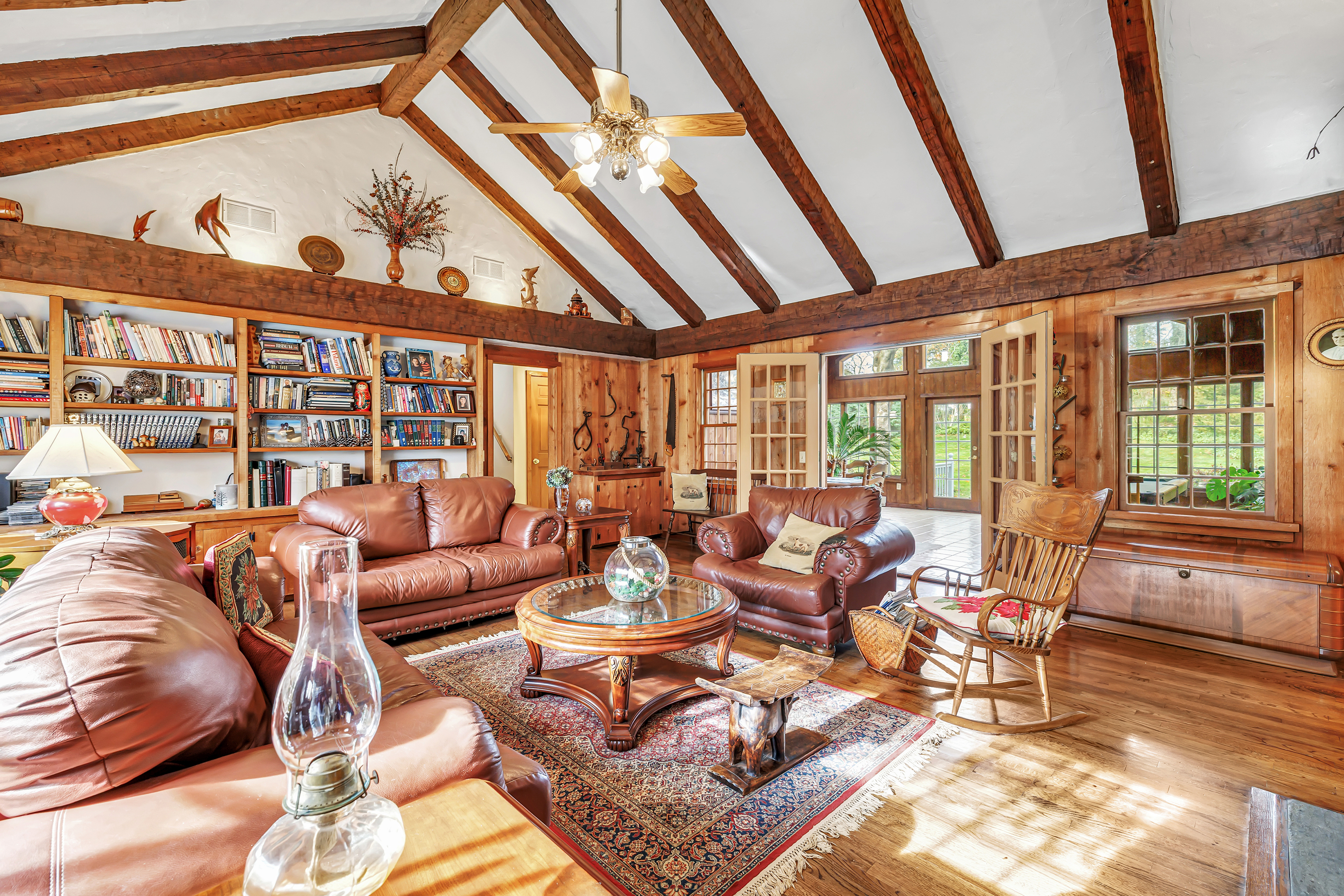 Experience timeless craftsmanship and modern comfort in this stunning Gunther-built custom home in Stratford, CT. Perfectly set on nearly one acre of beautifully landscaped property in one of Stratford's most desirable neighborhoods, this home is just steps from Booth Memorial Park. Inside, you'll find warm, light-filled spaces with classic design touches custom built-ins, exposed beams, and large windows throughout. The spacious dining room opens through French doors to a private patio and backyard, perfect for entertaining or relaxing outdoors. The great room features cathedral ceilings, rich woodwork, built-in bookcases, and a dramatic fireplace centerpiece. A four-season sunroom with wet bar, French doors, and pool table (included) offers the ultimate space for gatherings, game nights, or cozy weekends at home. The kitchen is beautifully updated with solid cherry cabinetry, granite countertops, and terra-cotta tile floors. Upstairs, enjoy three generous bedrooms, including a luxurious primary suite with walk-in closet, Jacuzzi soaking tub, and separate shower. A private one-bedroom, one-bath suite above the garage is ideal for guests or in-laws. This exceptional Stratford home combines timeless craftsmanship, quality finishes, and an unbeatable location-ready for you to move in and make it your own.