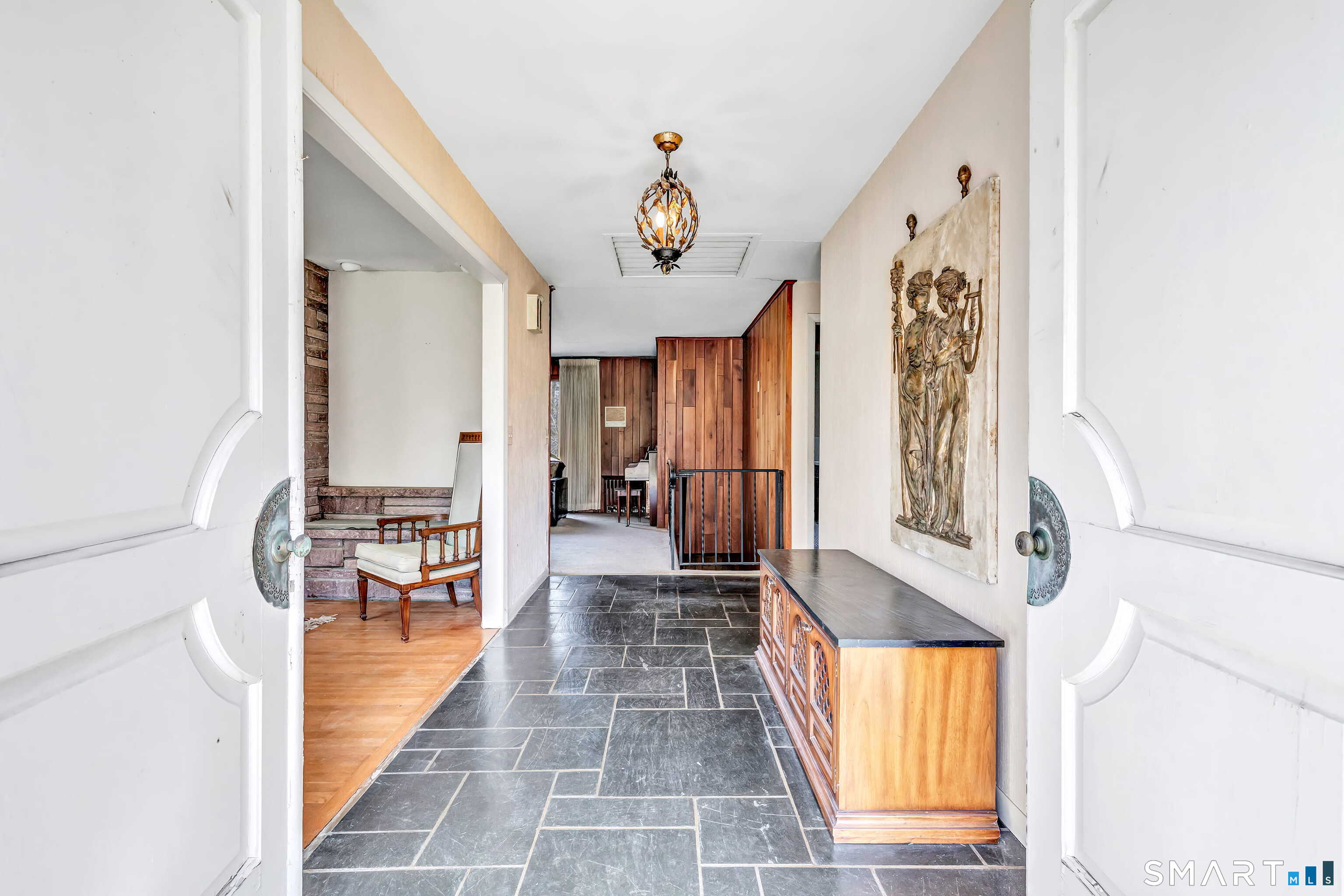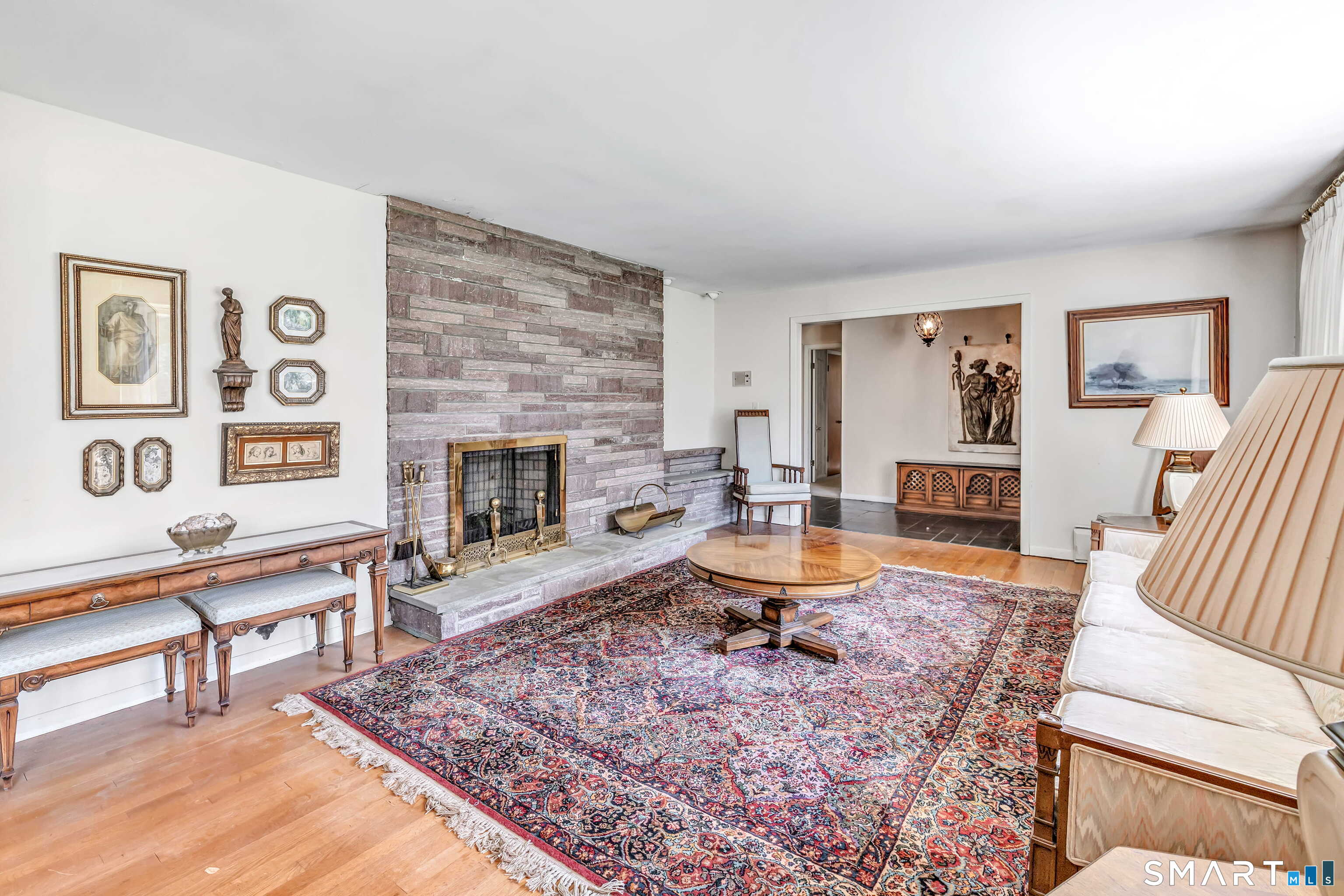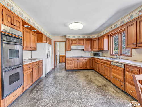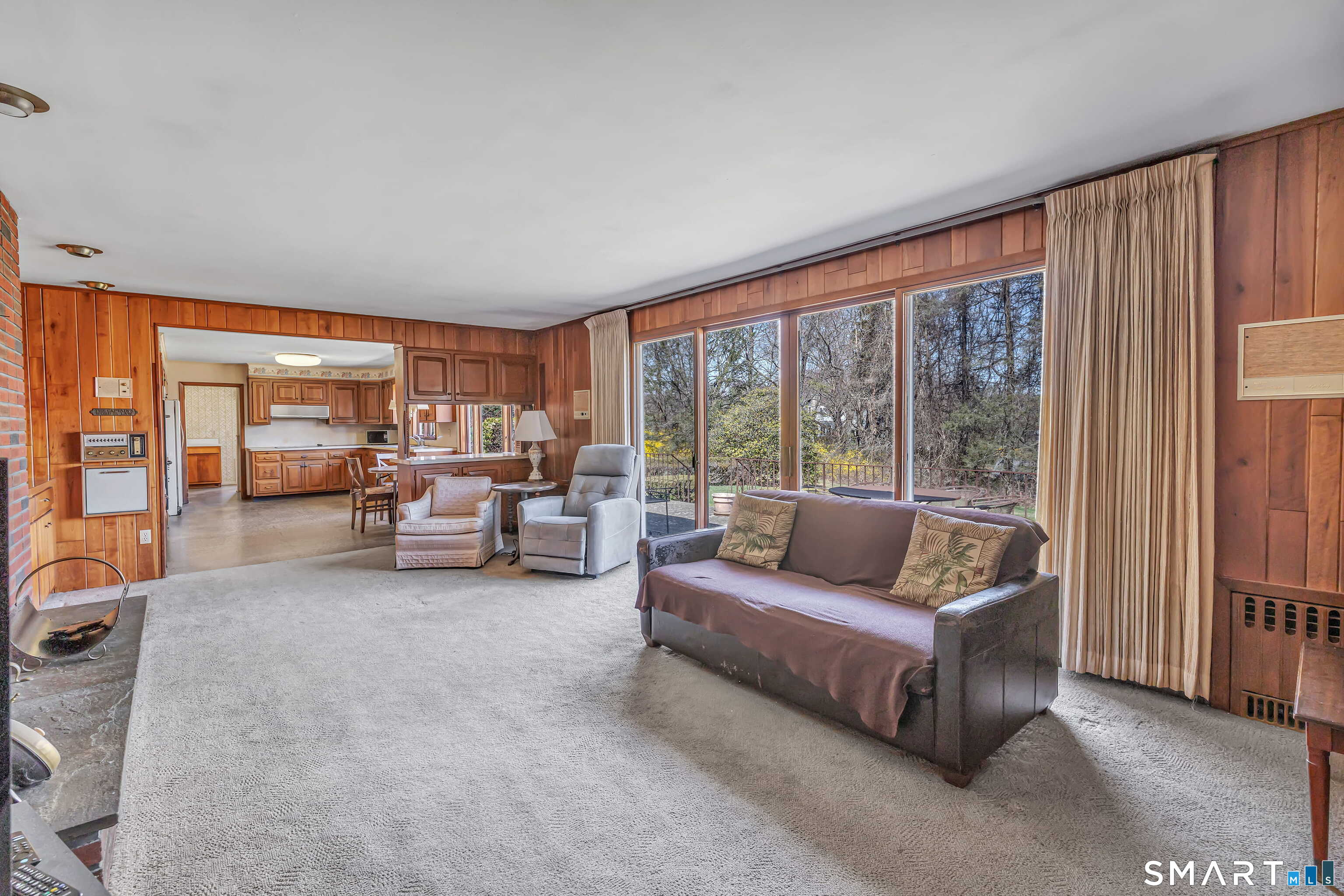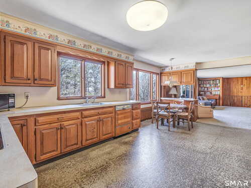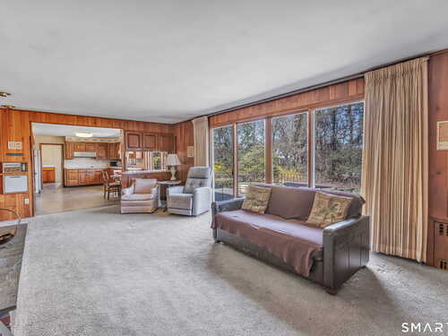HIGHEST & BEST OFFERS DUE TUESDAY 4/21 @2PM. Set behind a stone wall in lower Easton, this sprawling ranch offers space, privacy & an incredible opportunity to create something truly special. Double doors open to a slate-floored foyer flanked by the living and sleeping spaces. The floor-to-ceiling stone-facing wood-burning fireplace and bay window mirror each other and create a balanced feel in the living room. Hardwood floors continue here & in the dining room. A pocket door opens to the eat-in kitchen, the perfect place to design your dream space! Tucked away is the laundry, access to the 2 car garage & backyard, mudroom & half bath. The family room features a second floor-to-ceiling fireplace, built-ins, and sliders to the patio. Don't miss the decorative built-in record player, in-wall ironing board & vintage wallpaper in the half bath, all charming reminders from an earlier era. 3 spacious bedrooms and 2 full baths. The primary suite has 3 closets & a renovated full bath. The walk-out LL adds valuable square footage and flexibility with space for an office, playroom or gym. The patio spans the rear of the home, overlooking the private .89 acre property. Enjoy a home that offers both convenience and a peaceful retreat. Imagine spending your time picking fruit at Silverman's, pumpkin picking at Sport Hill Farm, hiking Devil's Den & having breakfast at Greiser's. At 160 Sport Hill Rd, you'll experience the best of Easton & its natural beauty. As-is