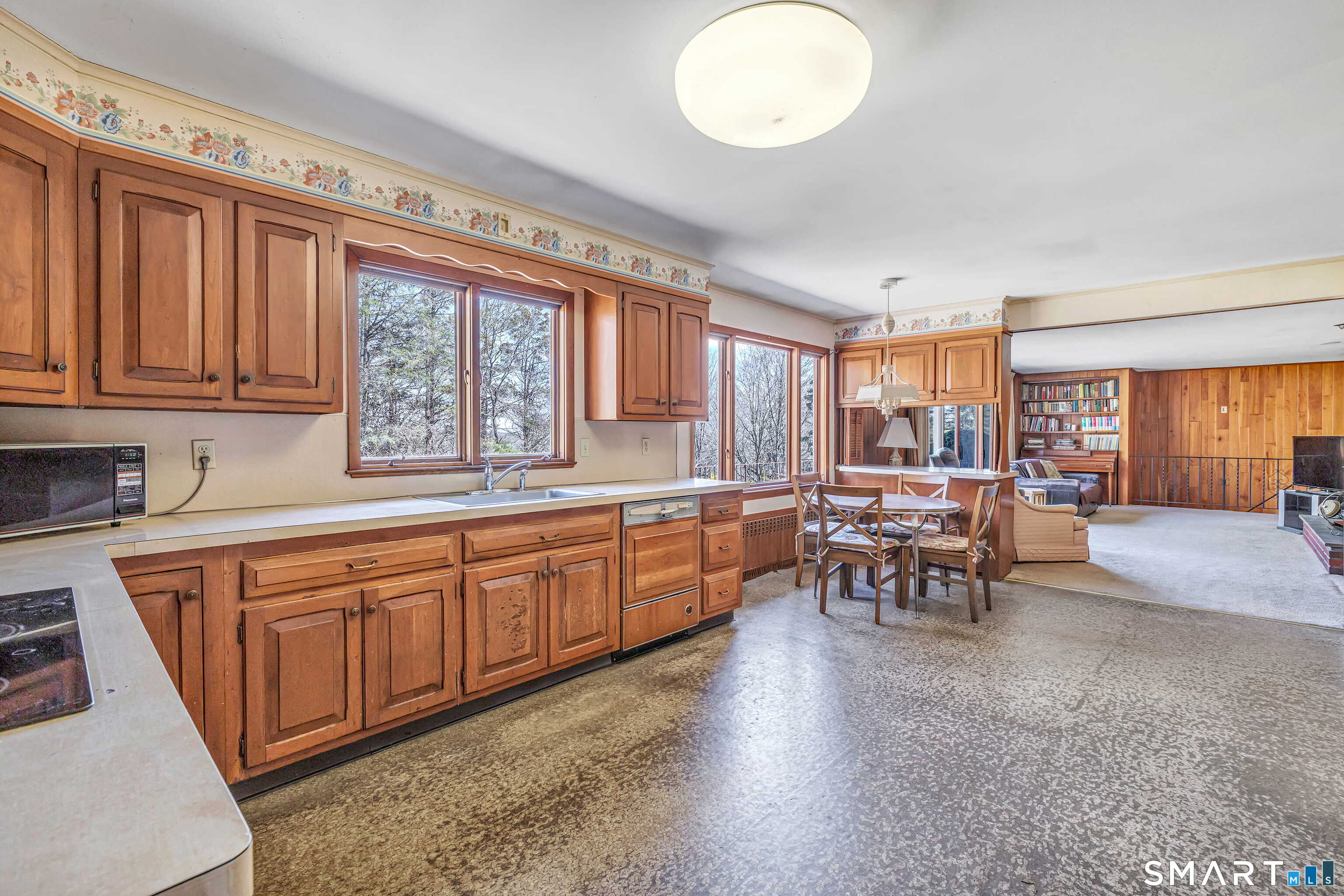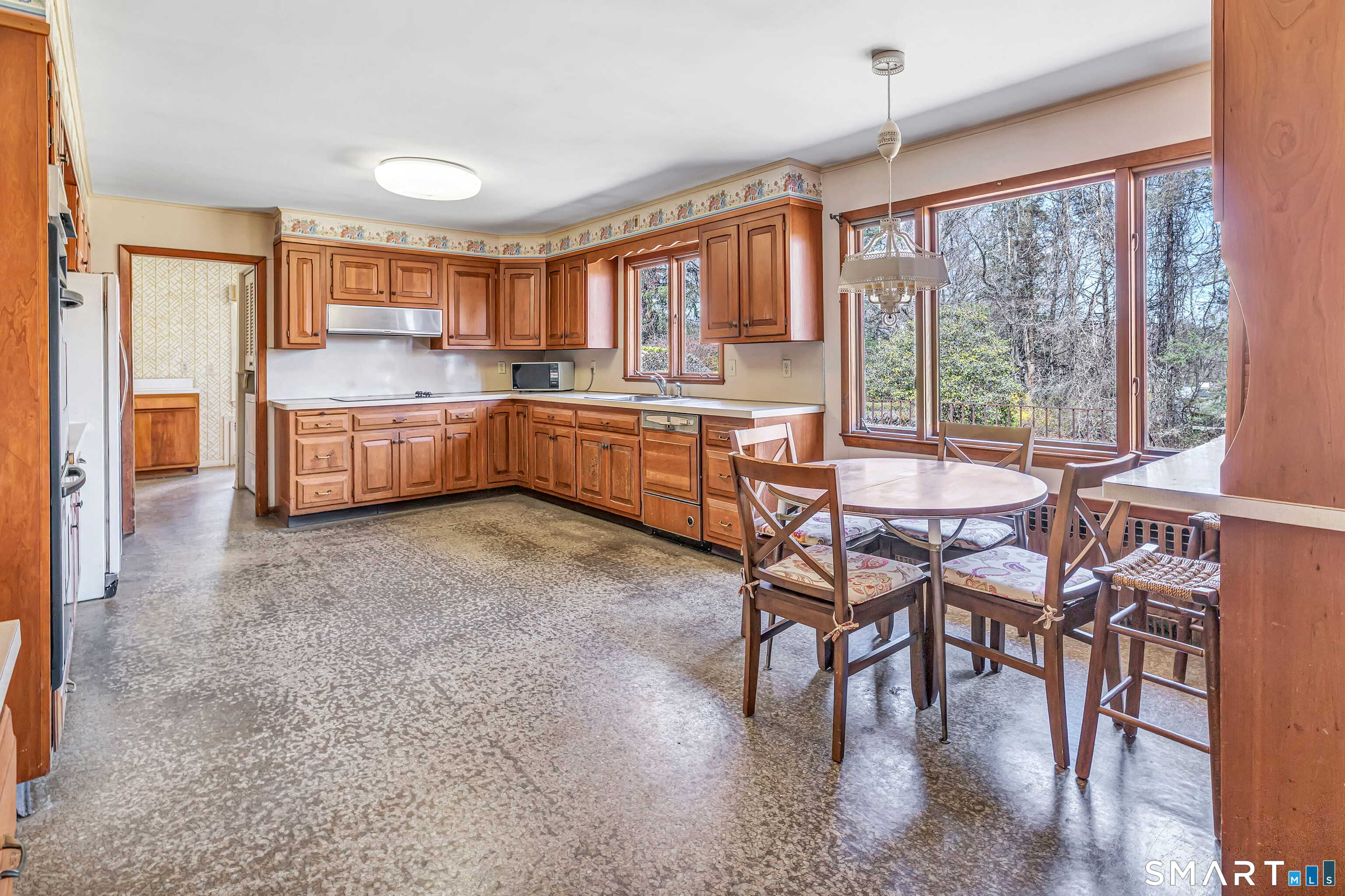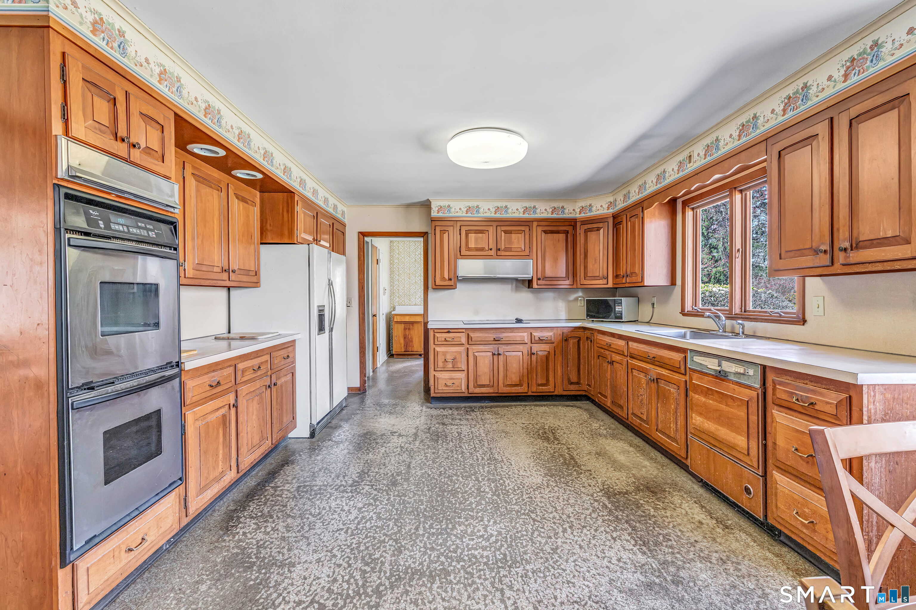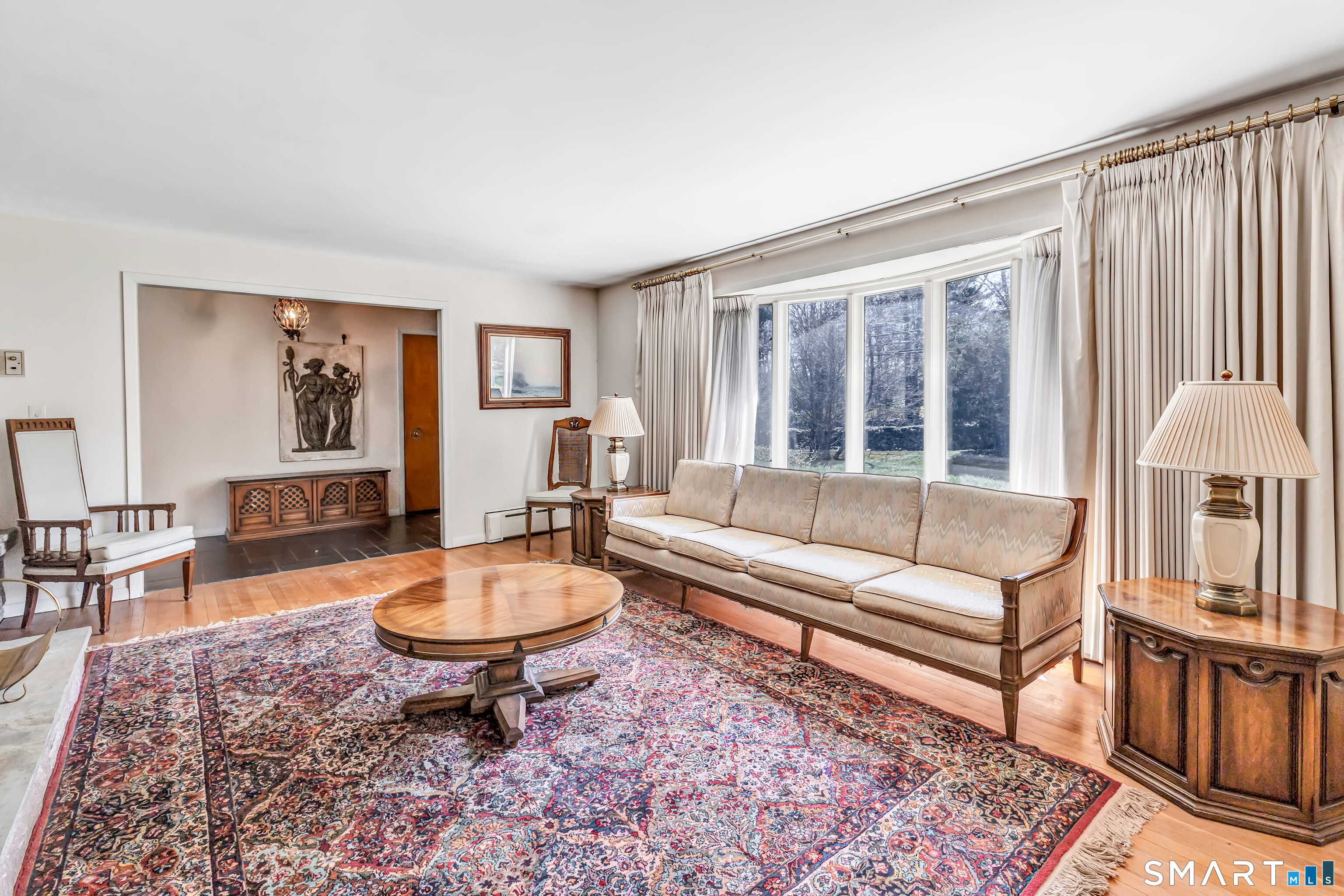 HIGHEST & BEST OFFERS DUE TUESDAY 4/21 @2PM. Set behind a stone wall in lower Easton, this sprawling ranch offers space, privacy & an incredible opportunity to create something truly special. Double doors open to a slate-floored foyer flanked by the living and sleeping spaces. The floor-to-ceiling stone-facing wood-burning fireplace and bay window mirror each other and create a balanced feel in the living room. Hardwood floors continue here & in the dining room. A pocket door opens to the eat-in kitchen, the perfect place to design your dream space! Tucked away is the laundry, access to the 2 car garage & backyard, mudroom & half bath. The family room features a second floor-to-ceiling fireplace, built-ins, and sliders to the patio. Don't miss the decorative built-in record player, in-wall ironing board & vintage wallpaper in the half bath, all charming reminders from an earlier era. 3 spacious bedrooms and 2 full baths. The primary suite has 3 closets & a renovated full bath. The walk-out LL adds valuable square footage and flexibility with space for an office, playroom or gym. The patio spans the rear of the home, overlooking the private .89 acre property. Enjoy a home that offers both convenience and a peaceful retreat. Imagine spending your time picking fruit at Silverman's, pumpkin picking at Sport Hill Farm, hiking Devil's Den & having breakfast at Greiser's. At 160 Sport Hill Rd, you'll experience the best of Easton & its natural beauty. As-is