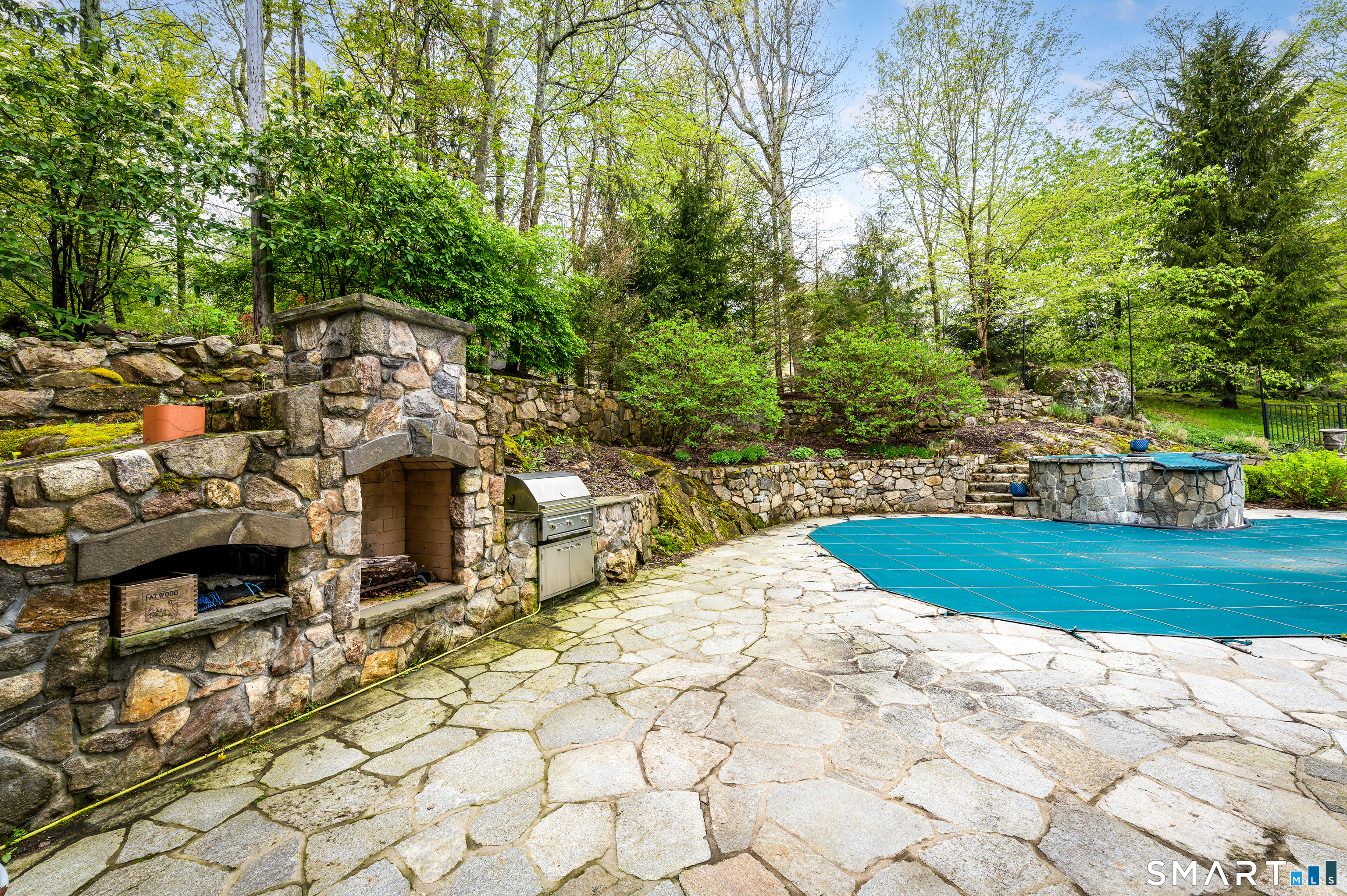 Stunning rear yard with in ground salt water pool, hot tub, outdoor kitchen, fireplace and pizza oven plus plenty of level lawn enclosed in fencing. All of this just steps from the tastefully renovated open concept kitchen great room combination. 6 burner Viking gas stove, SubZero and quartz counters. The kitchen with oversized center island is flanked by a breakfast bar and dining area with builtins. Luxury master suite with his/her walk in closets, French doors to private balcony plus a newly renovated spa bath. Formal living room/dining room with two sided gas fireplace. 10' ceilings, main level home office with a wall of built ins and a lower level rec room with a game day worthy bar, ample space for indoor fun and a separate gym. A luxury home of refined taste.