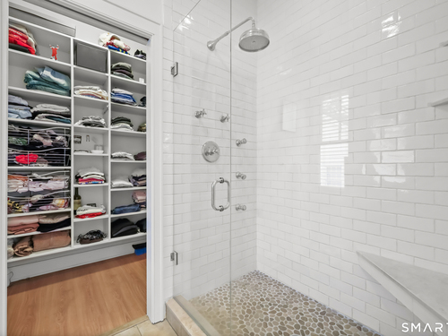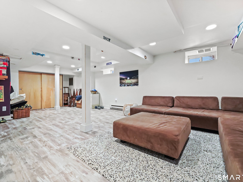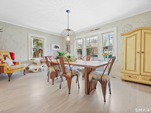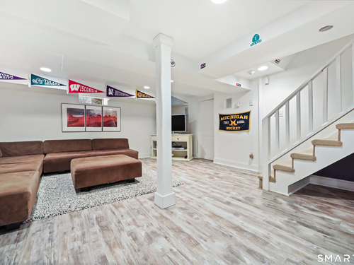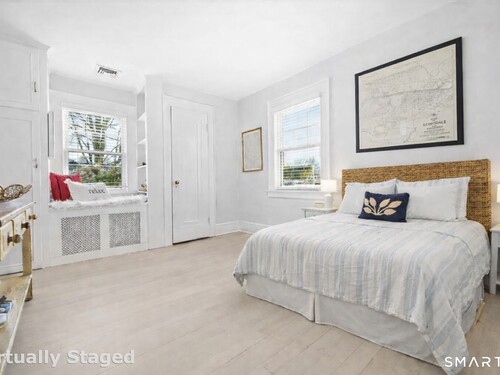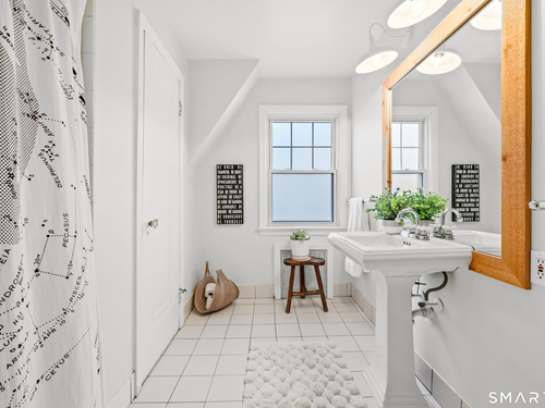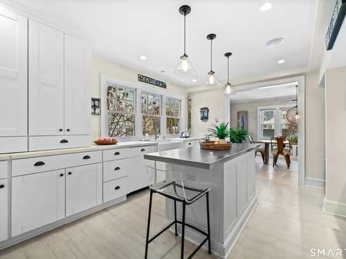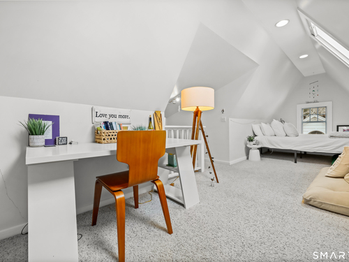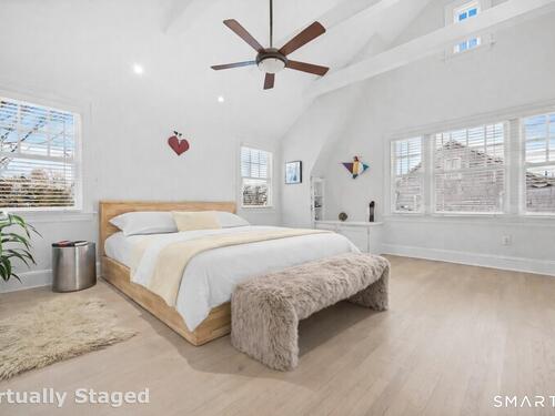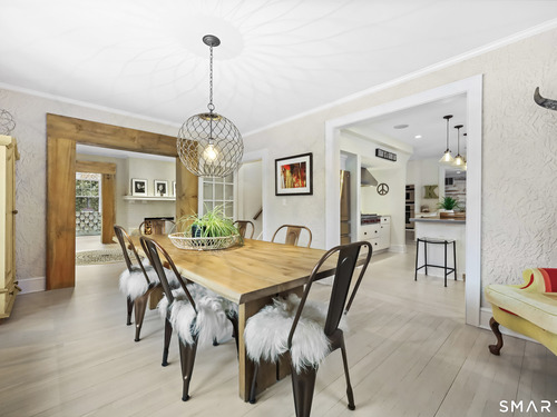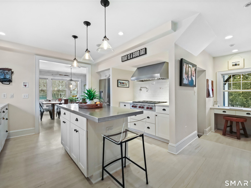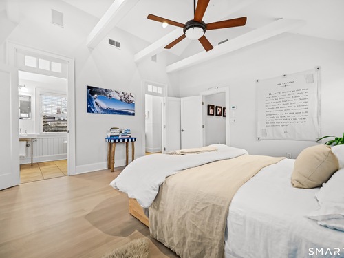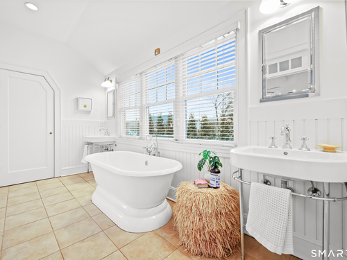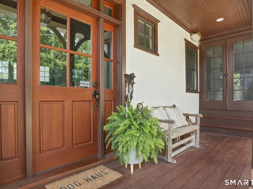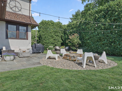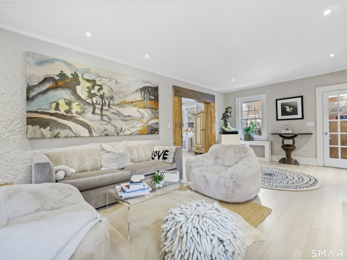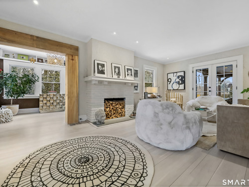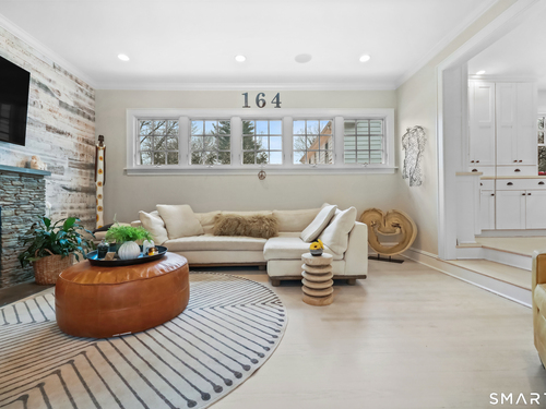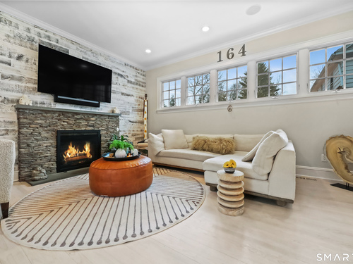 Nestled in Fairfield's highly sought-after University neighborhood, this exceptional home beautifully blends timeless vintage charm with a warm, modern aesthetic. Set on a private, arborvitae-lined property, the outdoor space features a stone patio and gas fire rock seating area. Inside, the inviting layout offers effortless flow and abundant natural light. The living room, anchored by a wood-burning fireplace and French doors to the patio, opens seamlessly to the dining room and sunny kitchen. The custom kitchen connects to a family room with soaring 10-foot ceilings & roaring stone fireplace. Spacious primary bedroom with vaulted ceilings, beams, bath with glass shower, soaking tub & walk-in closet is a lovely oasis. Guest room with ensuite bath & walk-in closet plus 2 additional bedrooms complete the 2nd level. 3rd level bonus area offers flexible space with 5th bedroom. The finished lower level provides versatility and extra living space. Additional amenities include, study, mudroom, 2 laundry rooms, irrigation system, 2 car garage and much more. Ideally located just minutes from vibrant Fairfield town center and train (1 mi), Beach (1.3 mi), Marina (1.1 mi), Tennis & golf. Waterfront community offering historic charm, dining, shopping, arts & 2 universities, just 50 miles from NYC.