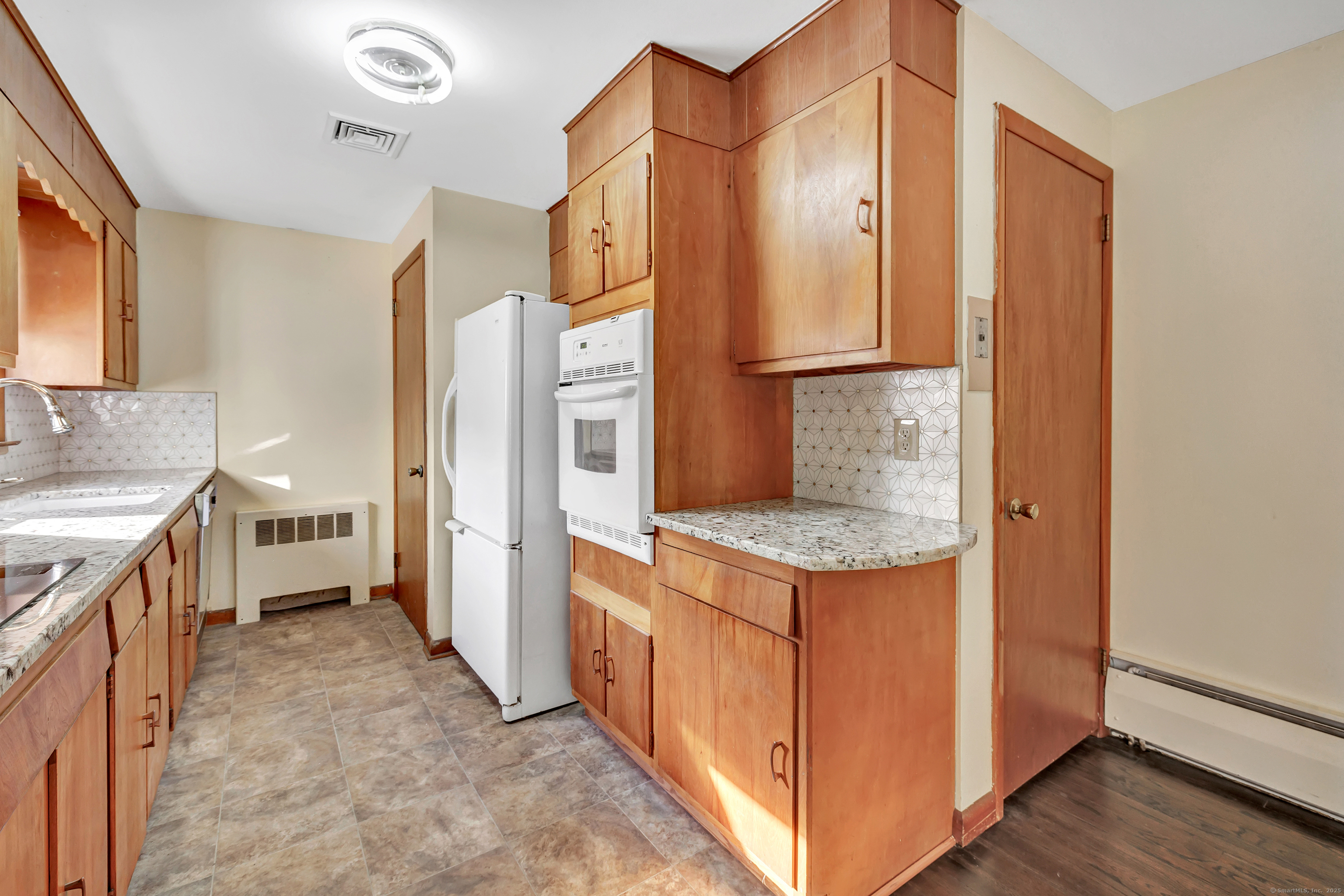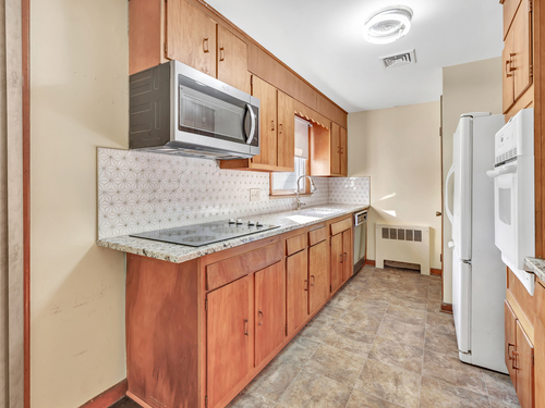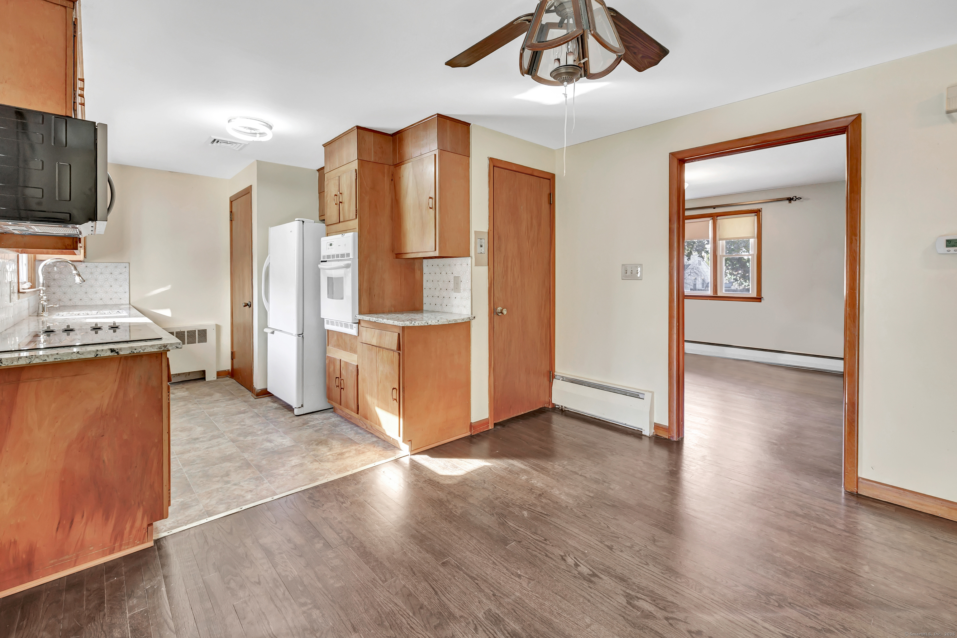 Welcome to effortless one-level living in this super sweet and sunny 2-bedroom gem, where comfort meets harmony in all the right ways. The inviting living room is anchored by a cozy brick fireplace with custom mantel -perfect for chilly nights or a stylish focal point all year round. The fully applianced galley style kitchen with granite counters offers both efficiency and charm, and there's even a pantry for added storage, as well as an easy flow into the dining area. Sliders lead to a bright sunroom-ideal as-is or a perfect candidate for future expansion. Enjoy the convenience of an attached garage, a full unfinished basement with endless possibilities, and a fenced-in yard ready for play, pets, or your next garden project. Light, bright, and ready for you, this home is packed with value and waiting for its next chapter with you.