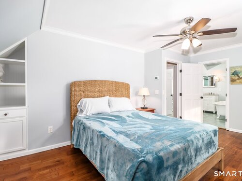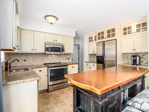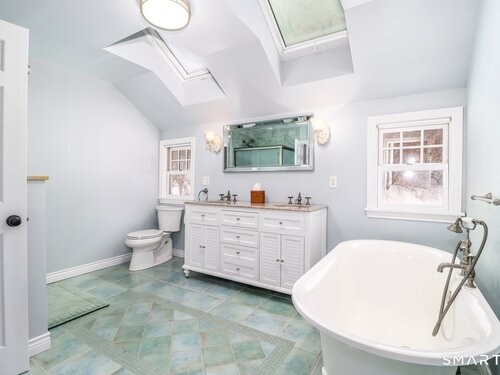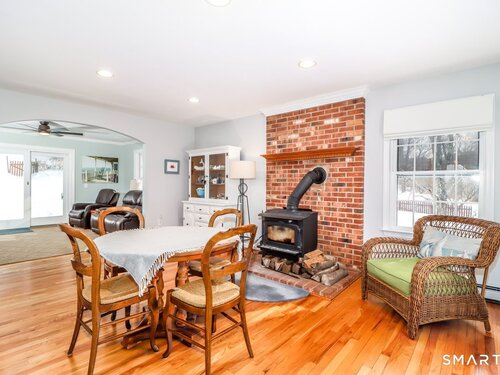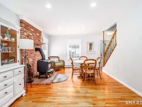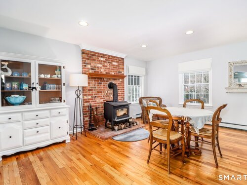 Extremely charming and sunny 4 bedroom cape in move in condition. Great curb appeal and awesome fenced in lot with gardens, stonewalls and level side yard. Cozy eat in kitchen with stainless appliances. Living room with woodstove. Family room with sliders to low deck and private back yard. Main level bedroom with private entrance. Hardwood floors throughout. Upper level with large primary bedroom with walk in closet. 2 more large bedrooms. Awesome bathroom with heated tile floor, skylites, double sink and clawfoot tub. Crown moldings. 2 car garage. Laundry with slop sink. Tons of character and built ins/moldings. Hurry !!