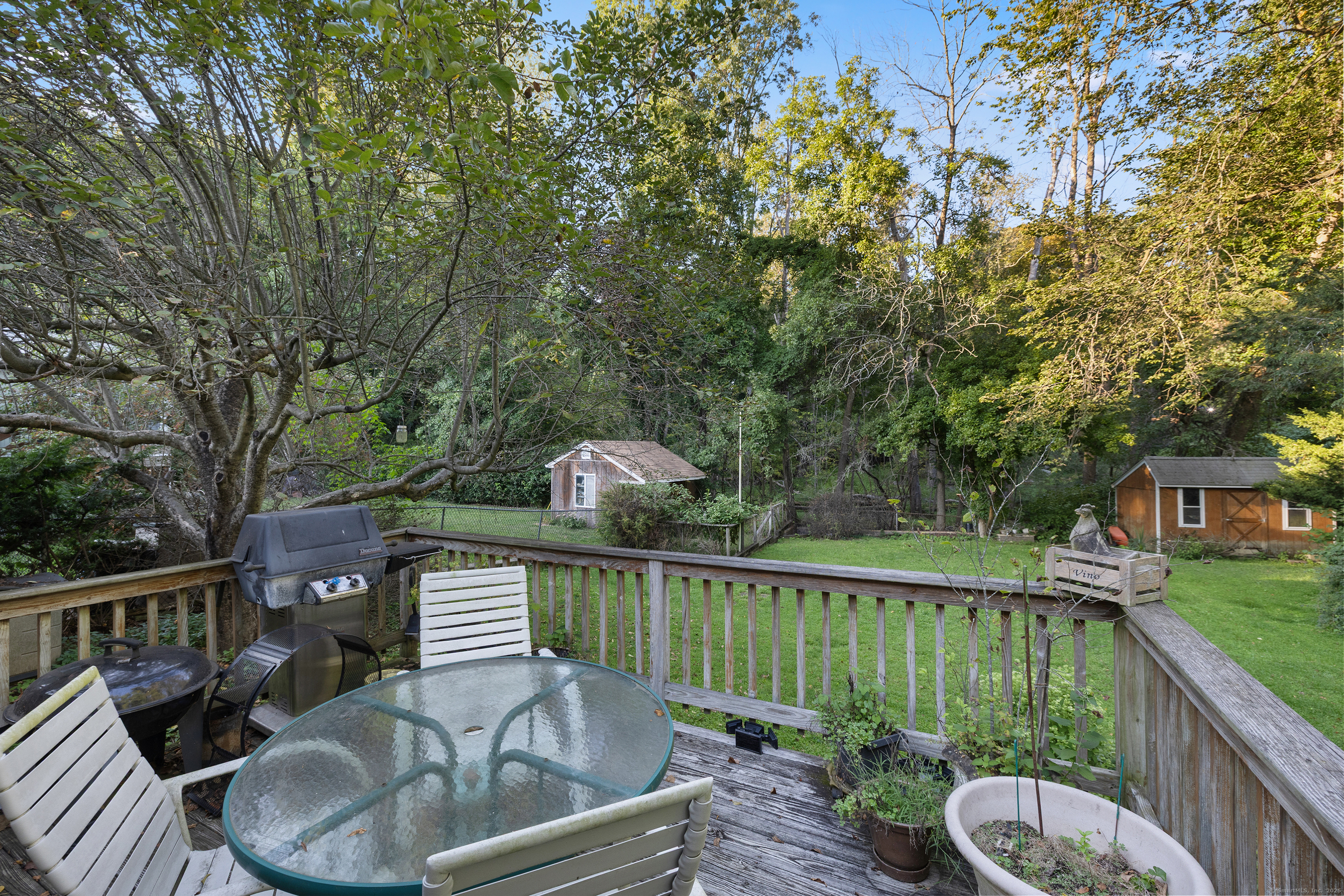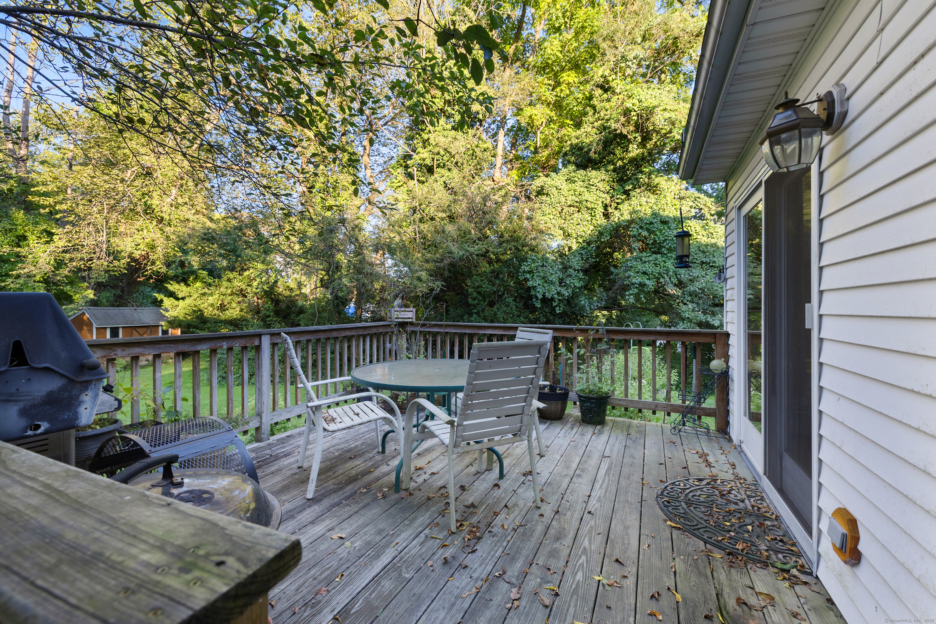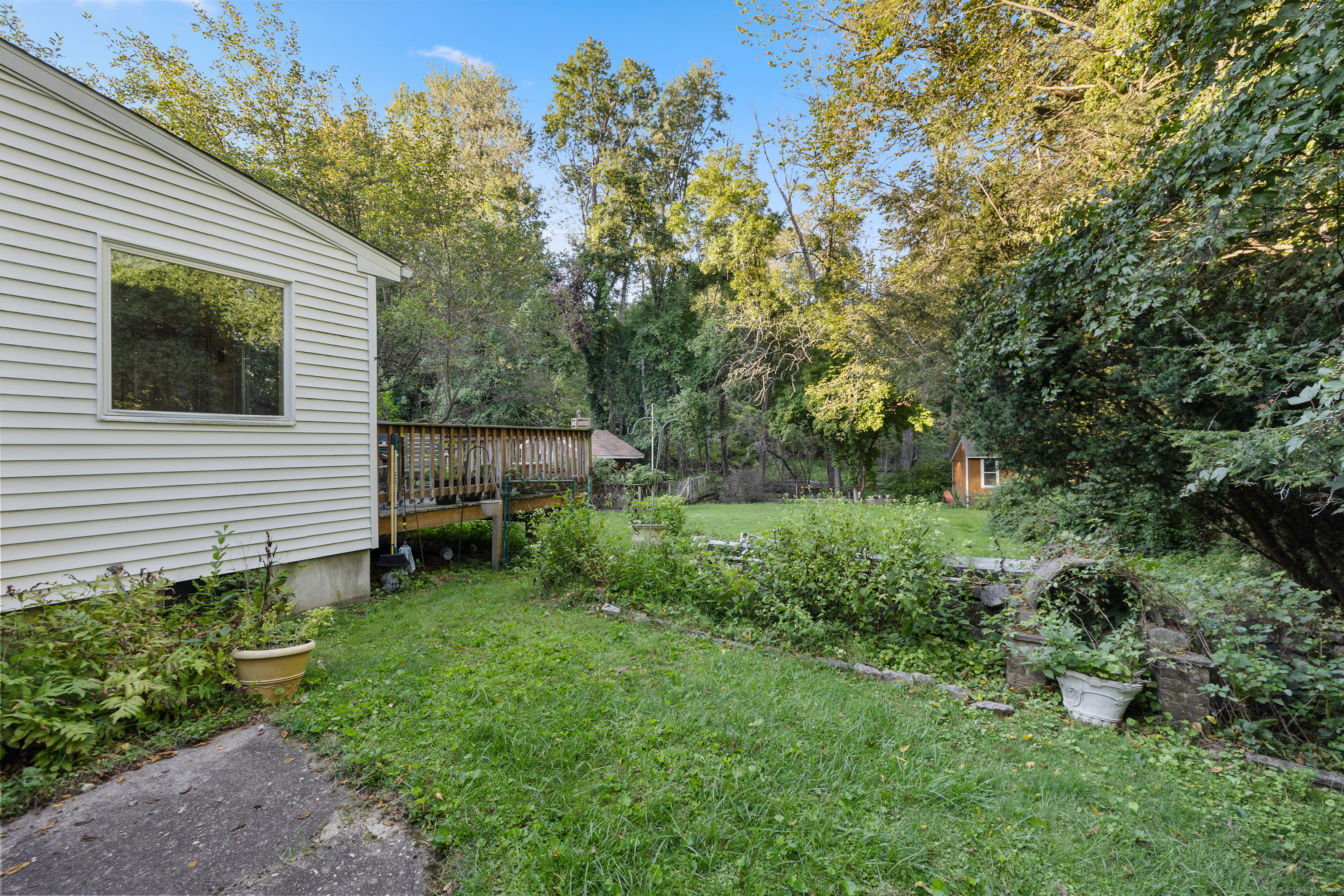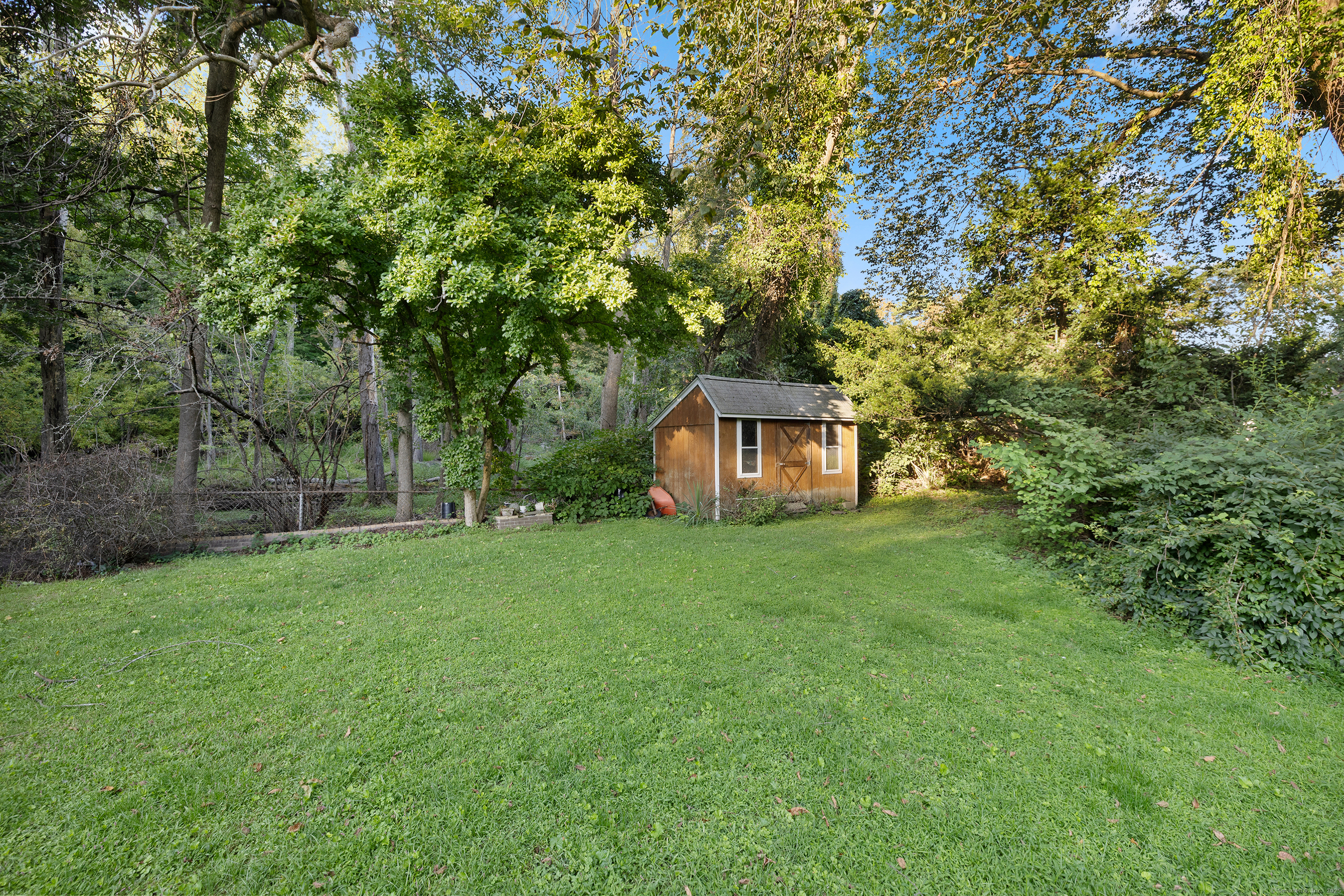 Welcome to your outdoor oasis at 17 Old Barn Road South! This charming Bull's Head Cape offers a serene retreat with exceptional outdoor living space, yet only minutes from all that downtown Stamford has to offer. The three-bedroom home has been lovingly cared for by the same owner for over 50 years. The front yard presents desirable curb appeal with its manicured lawn, mature plantings and location opposite trees & greenery. Step through the front door and into a living room or dining room, depending on one's needs, with a parquet floor and recessed lighting. A step down family room provides a quiet sanctuary with a wood burning stove and sliders overlooking the spacious backyard. The kitchen features a terra-cotta tile floor, all stainless-steel appliances, loads of counter space, a large skylight and plenty of room for a kitchen table or breakfast nook set. Sliders to the wooden deck provide a lovely view of the backyard and mature McIntosh apple tree. The convenience of a newer washer & dryer, tucked away behind bi-fold doors, completes the kitchen. The main level primary bedroom is large and boasts an ensuite bath, hardwood floor and ample closet space. There's also an additional room, which could serve as a possible guest bedroom or home office. A second full bath completes the main level floor plan. Ascend the carpeted staircase, and there's another full bath, with bedrooms on either side, both featuring hardwood floors, providing both privacy and convenience.