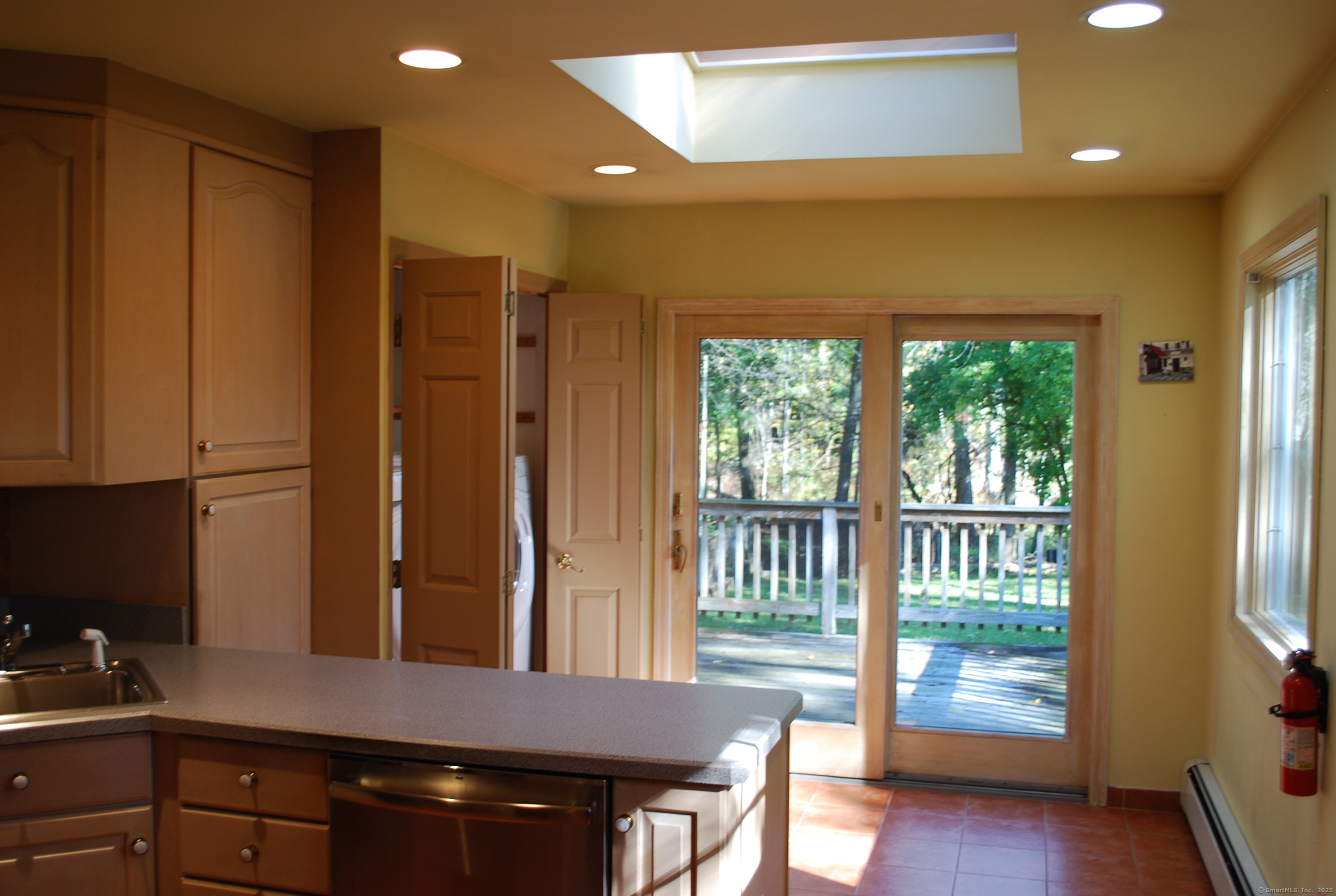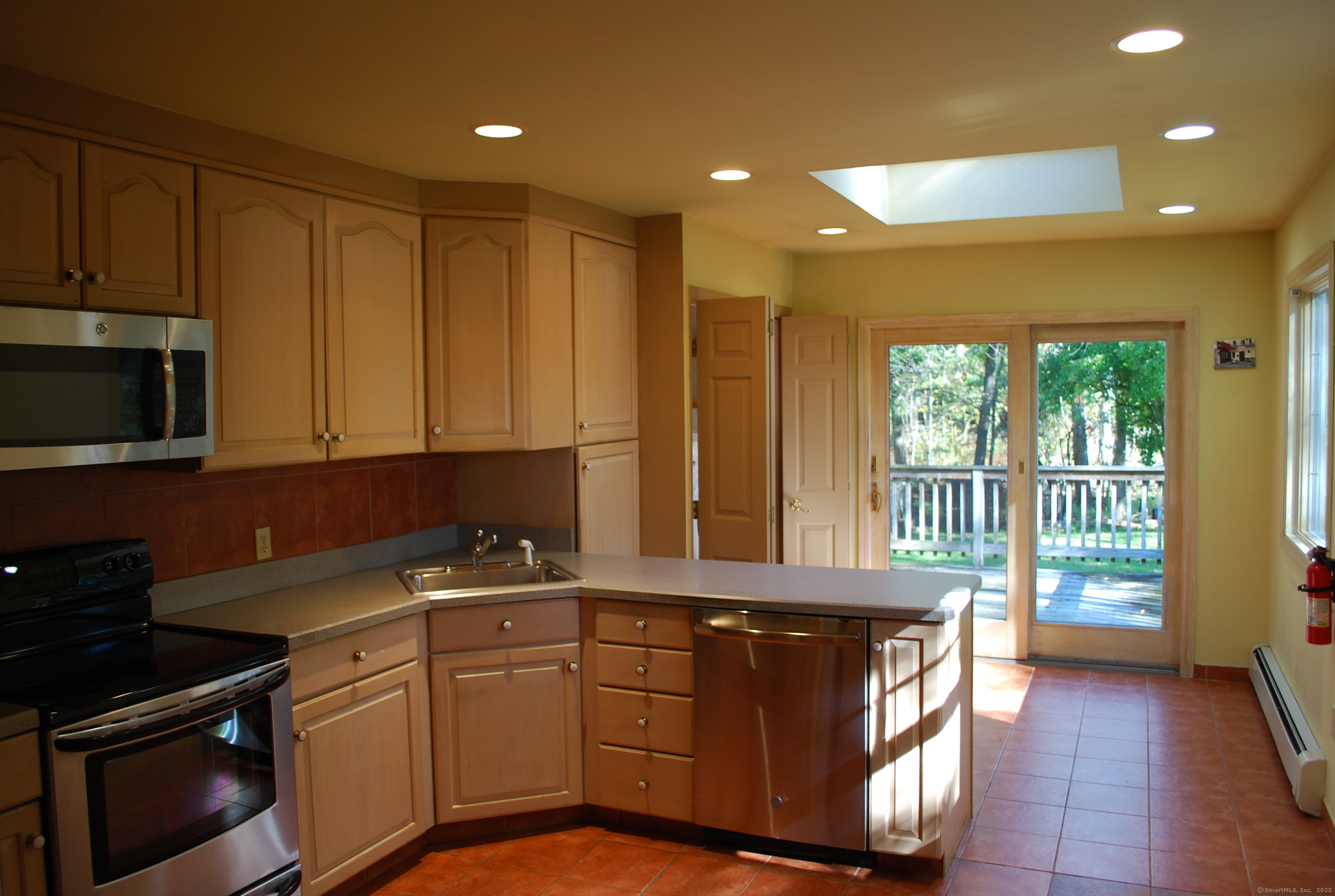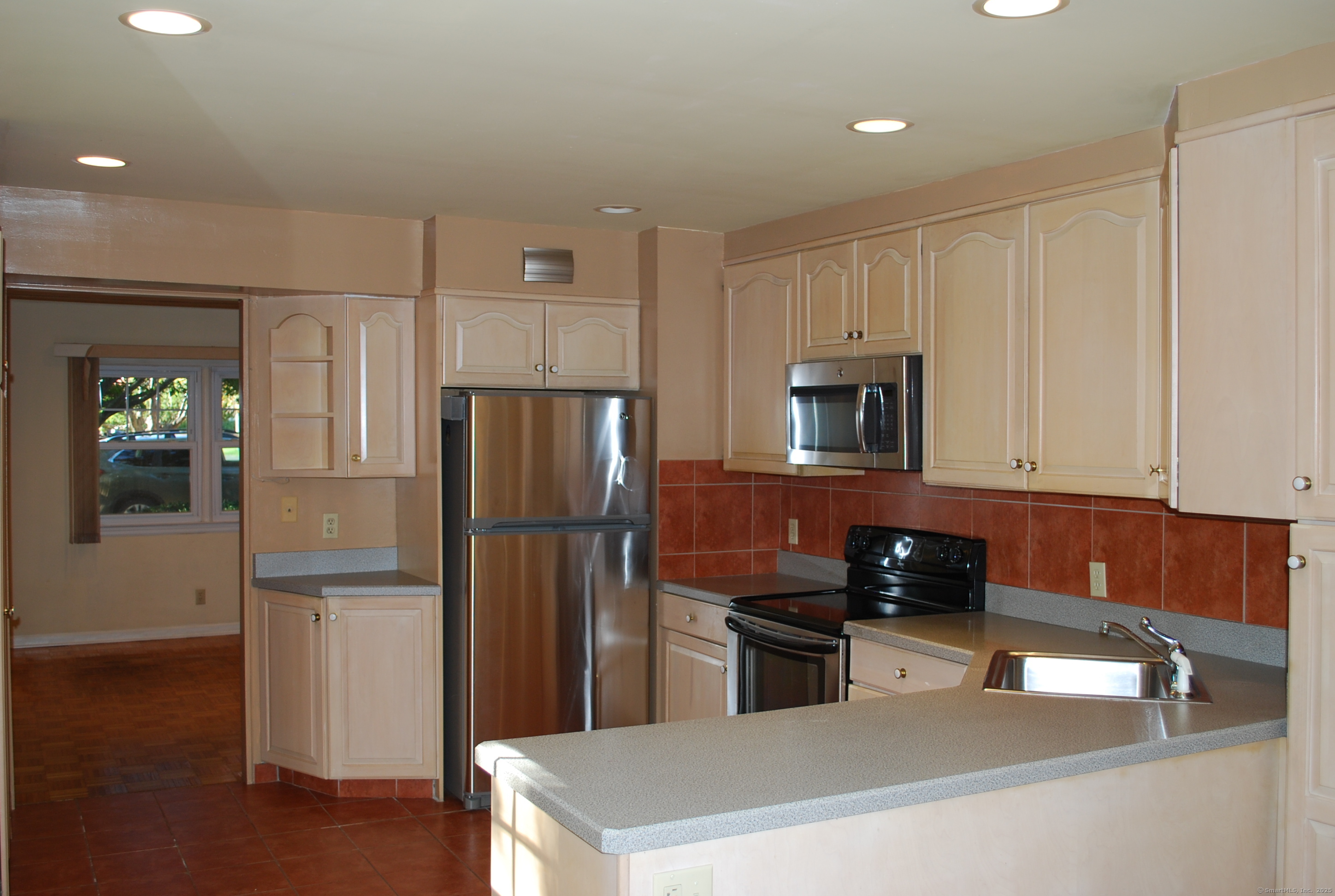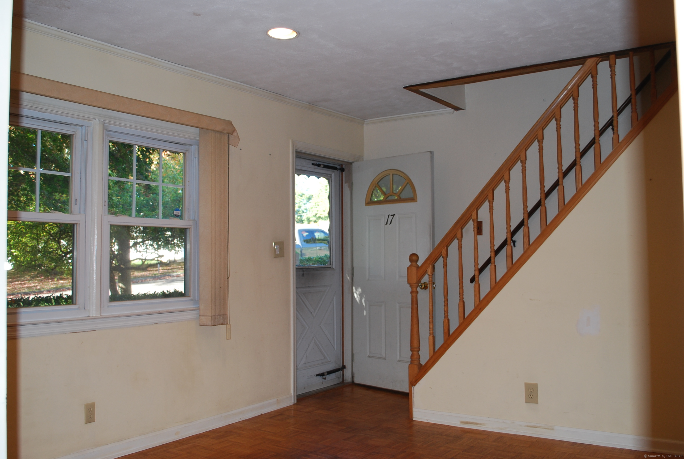 Welcome to your outdoor oasis at 17 Old Barn Road South! This charming Bull's Head Cape offers a serene retreat with exceptional outdoor living space, yet only minutes from all that downtown Stamford has to offer. The three-bedroom home has been lovingly cared for by the same owner for over 50 years. The front yard presents desirable curb appeal with its manicured lawn, mature plantings and location opposite trees & greenery. Step through the front door and into a living room or dining room, depending on one's needs, with a parquet floor and recessed lighting. A step down family room provides a quiet sanctuary with a wood burning stove and sliders overlooking the spacious backyard. The kitchen features a terra-cotta tile floor, all stainless-steel appliances, loads of counter space, a large skylight and plenty of room for a kitchen table or breakfast nook set. Sliders to the wooden deck provide a lovely view of the backyard and mature McIntosh apple tree. The convenience of a newer washer & dryer, tucked away behind bi-fold doors, completes the kitchen. The main level primary bedroom is large and boasts an ensuite bath, hardwood floor and ample closet space. There's also an additional room, which could serve as a possible guest bedroom or home office. A second full bath completes the main level floor plan. Ascend the carpeted staircase, and there's another full bath, with bedrooms on either side, both featuring hardwood floors, providing both privacy and convenience.