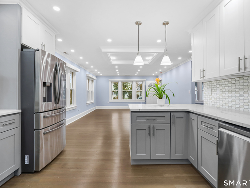 Move right in to this beautiful, totally renovated ranch with open floor plan and natural light. Brand New Granite Kitchen with all new appliances with center island. Living Room is a large open space and opens to the kitchen. 2 Bedrooms on Main Level with walk up attic that could easily be finished for additional space. Totally finished Lower with 2 Bedrooms and a full Bath, plus Family Room with a separate entrance. Gas Heating and cooking. Central Air. One detached garage with electrical power that used to power an above ground pool. Beautiful, level deep fenced in yard with a custom built shed. Convenient location near Route 7, I-95 shopping, etc.