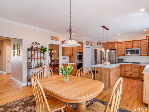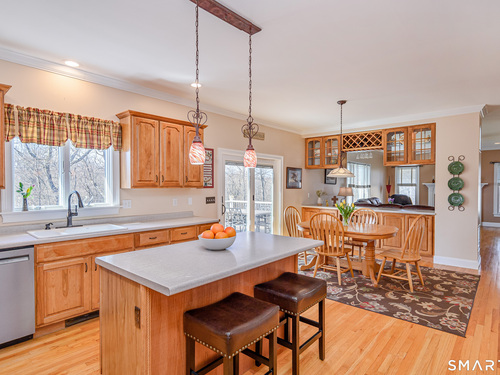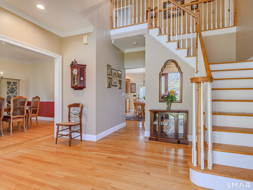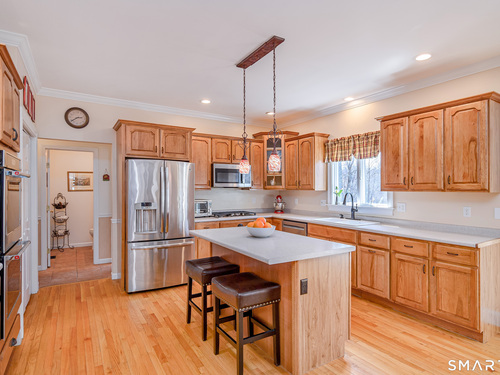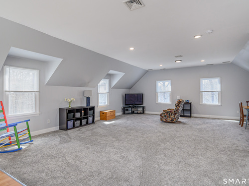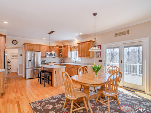 Nestled on the prestigious west side of New Fairfield, just minutes from the NY line, this exceptional home offers over 4,000 sq ft of finished living space. Featuring 4 bedrooms and 3.5 baths, including a fully finished walk-out lower level with full bath, recreation room, and dedicated gym space, this home provides both comfort and versatility. Set on a quiet cul-de-sac, the property boasts a spacious gourmet eat-in kitchen with center island, stainless steel appliances, propane cooking, and seamless flow into the inviting family room with fireplace. A large composite deck off the kitchen overlooks the private backyard adorned with perennial gardens and offers ample space for a future pool. The main level also includes formal living and dining rooms with hardwood floors, a convenient half bath, and a laundry room with utility sink and access to the attached 2.5-car garage with abundant storage. Upstairs, the primary suite features a private full bath and walk-in closet, accompanied by three additional bedrooms, a full hall bath, and a generous playroom ideal for a home office or additional space for overnight guests. The lower level expands the living area with a full bath, recreation room space with sliders to the backyard, gym area, and extensive unfinished storage and mechanical space. A walk-up attic provides additional storage or potential for future expansion. Recent updates (~ 5 years) include 40'x15' composite deck, siding, roof, windows, driveway,