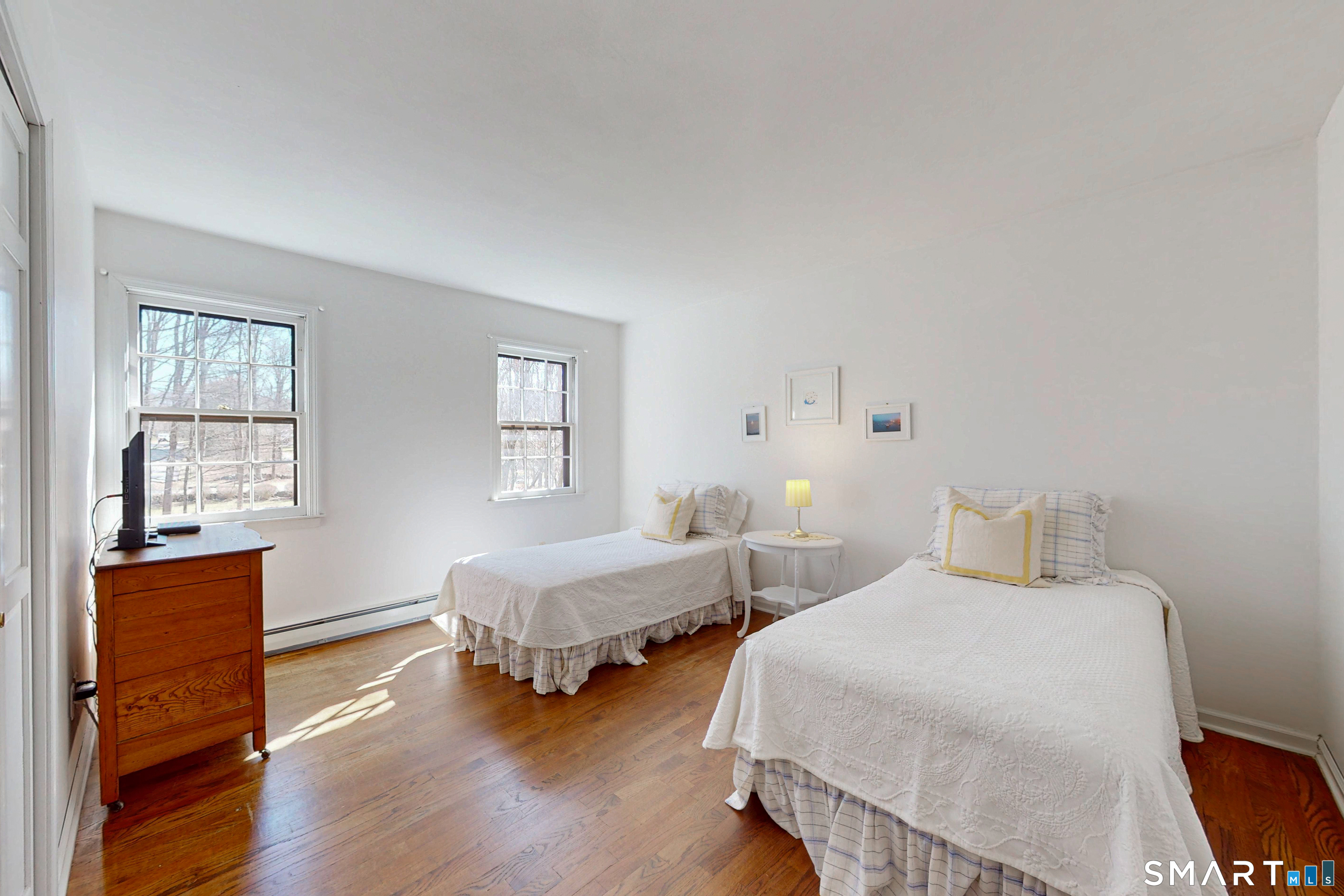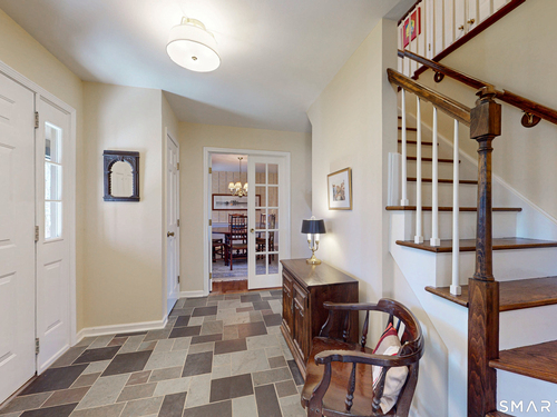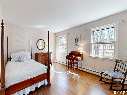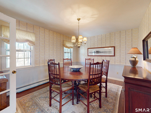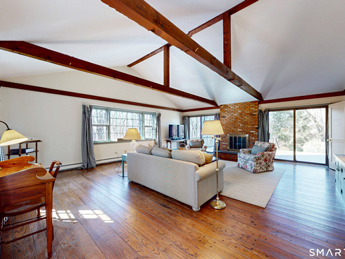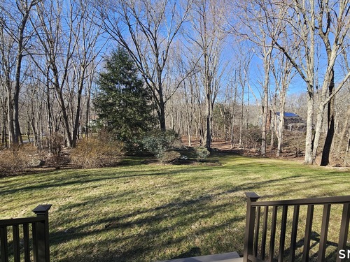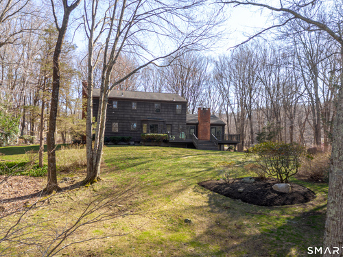 Tucked back, this Colonial sits on 2.33 private acres surrounded by mature landscaping and a peaceful, natural backdrop. A covered front porch offers a welcoming first impression and sets the tone for what's inside. The floor plan flows comfortably from room to room. A front to back living room with a wood burning fireplace offers generous space to gather or unwind, while the formal dining room is well positioned for special occasions. The vaulted family room is filled with natural light and features a second fireplace along with sliders that lead out to the large rear deck. Hardwood flooring runs through most of the main living areas. The kitchen has been updated with newer cabinetry and appliances and includes a pantry, dining area, and direct access to the deck. Upstairs, the primary bedroom includes a full bath with a dressing area, along with three additional bedrooms, all with hardwood flooring, and a hall bath. The layout is well balanced with flexibility for a variety of needs. The full unfinished lower level offers potential for future living space. Central air throughout the upper level. Outside, the expansive deck overlooks a private yard with established plantings, creating a quiet setting to relax or entertain! This is a home that has been well cared and loved, with pride of ownership seen throughout. Conveniently located just minutes to center of town, shopping, dining, and I-84. Enjoy all that the Newtown community has to offer.