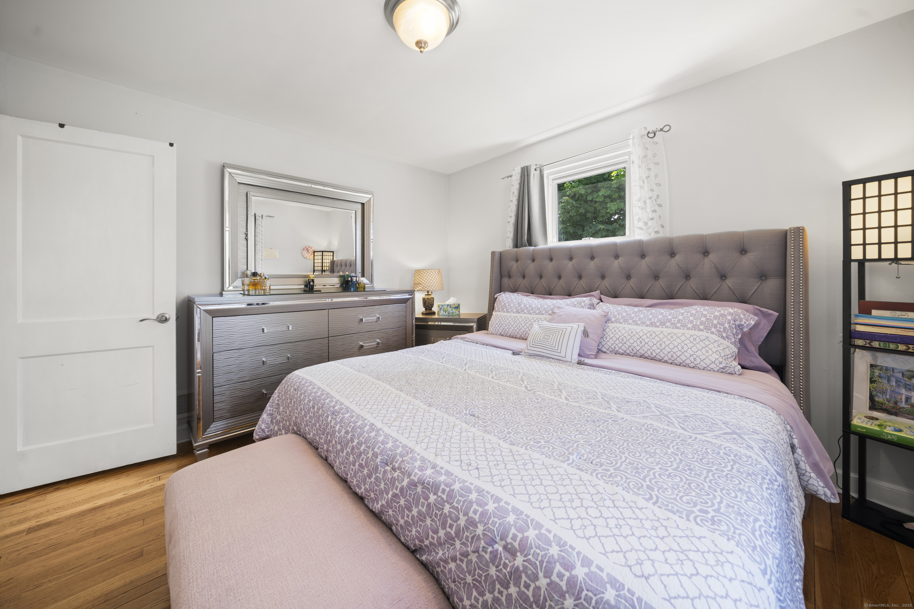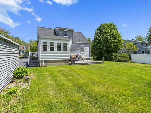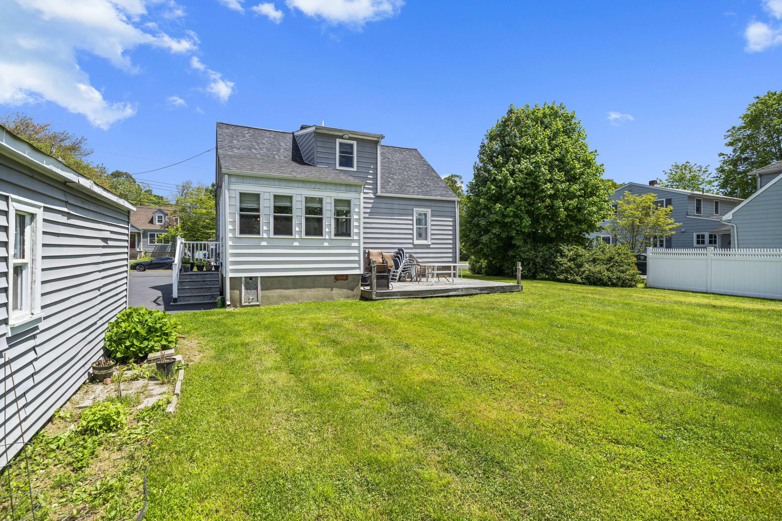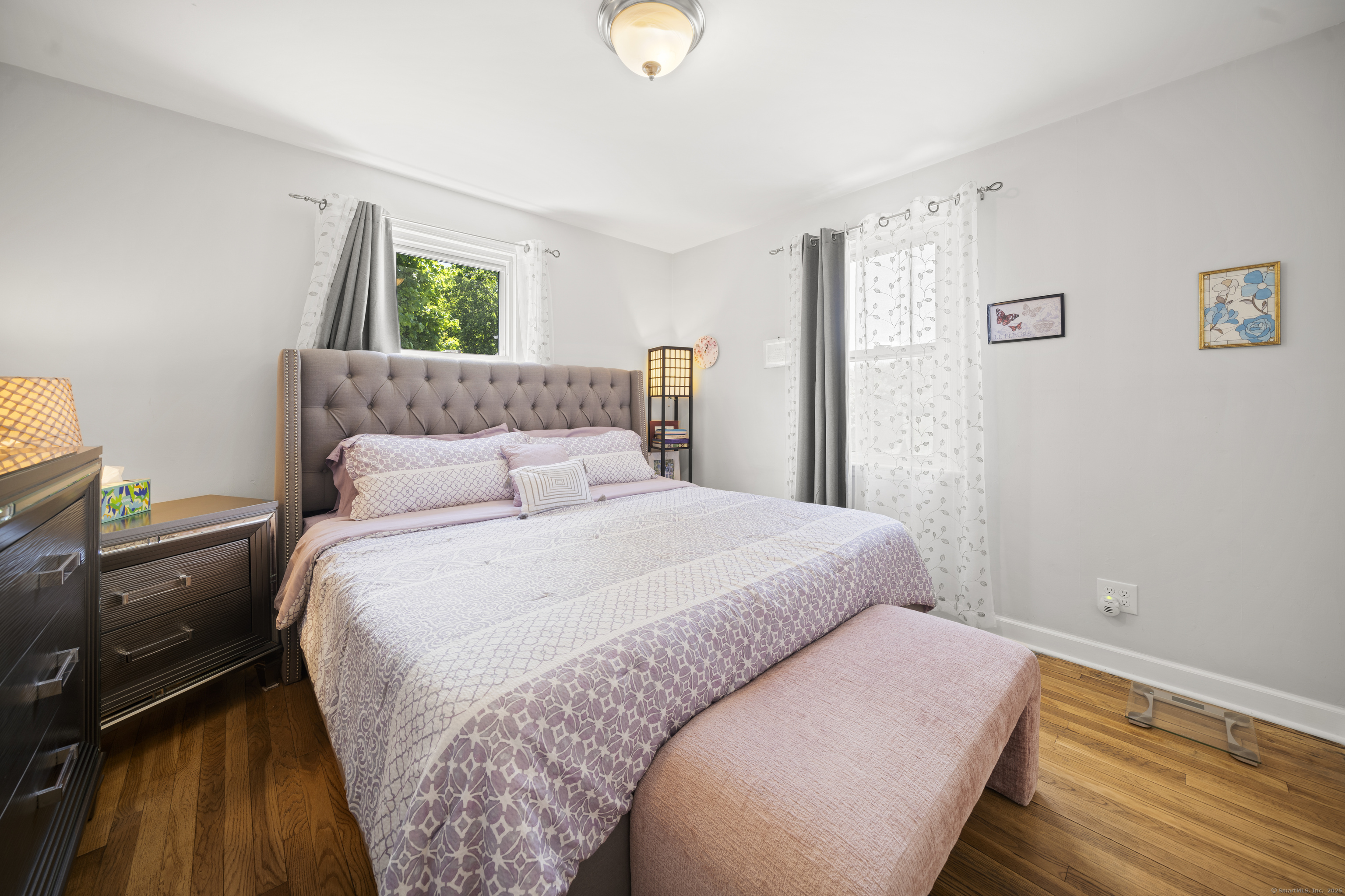 Welcome to this beautifully maintained Cape offering timeless charm and modern comfort. With three spacious bedrooms and two full bathrooms, this inviting residence provides a flexible layout. Step inside to find a warm and welcoming interior, featuring gleaming hardwood floors, freshly painted walls, and plenty of natural light. The home is equipped with central air conditioning to keep you cool and comfortable year-round. The kitchen is well-appointed and opens to a cozy dining area-ideal for everyday meals or entertaining. Upstairs, you'll find generously sized bedrooms with ample closet space, while the main level includes a convenient first-floor bedroom and full bath. Outside, enjoy a flat, landscaped backyard, perfect for barbecues, play, or relaxation. The yard offers space for a garden or patio, and it's easy to maintain. This home combines classic design with thoughtful updates, making it a true gem in a desirable neighborhood.