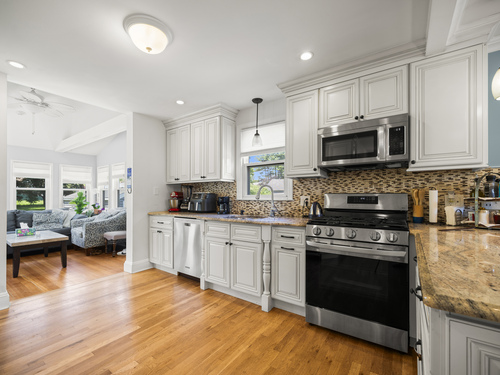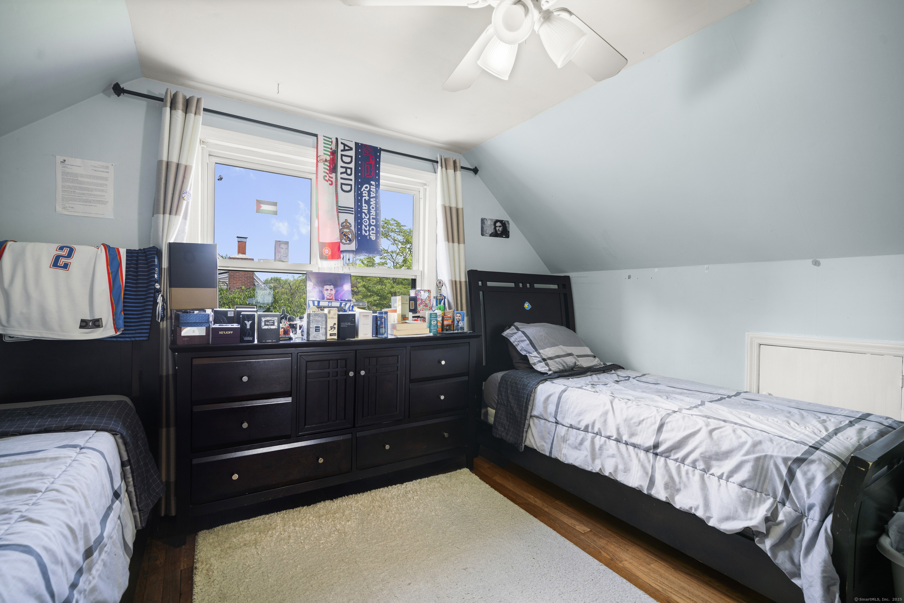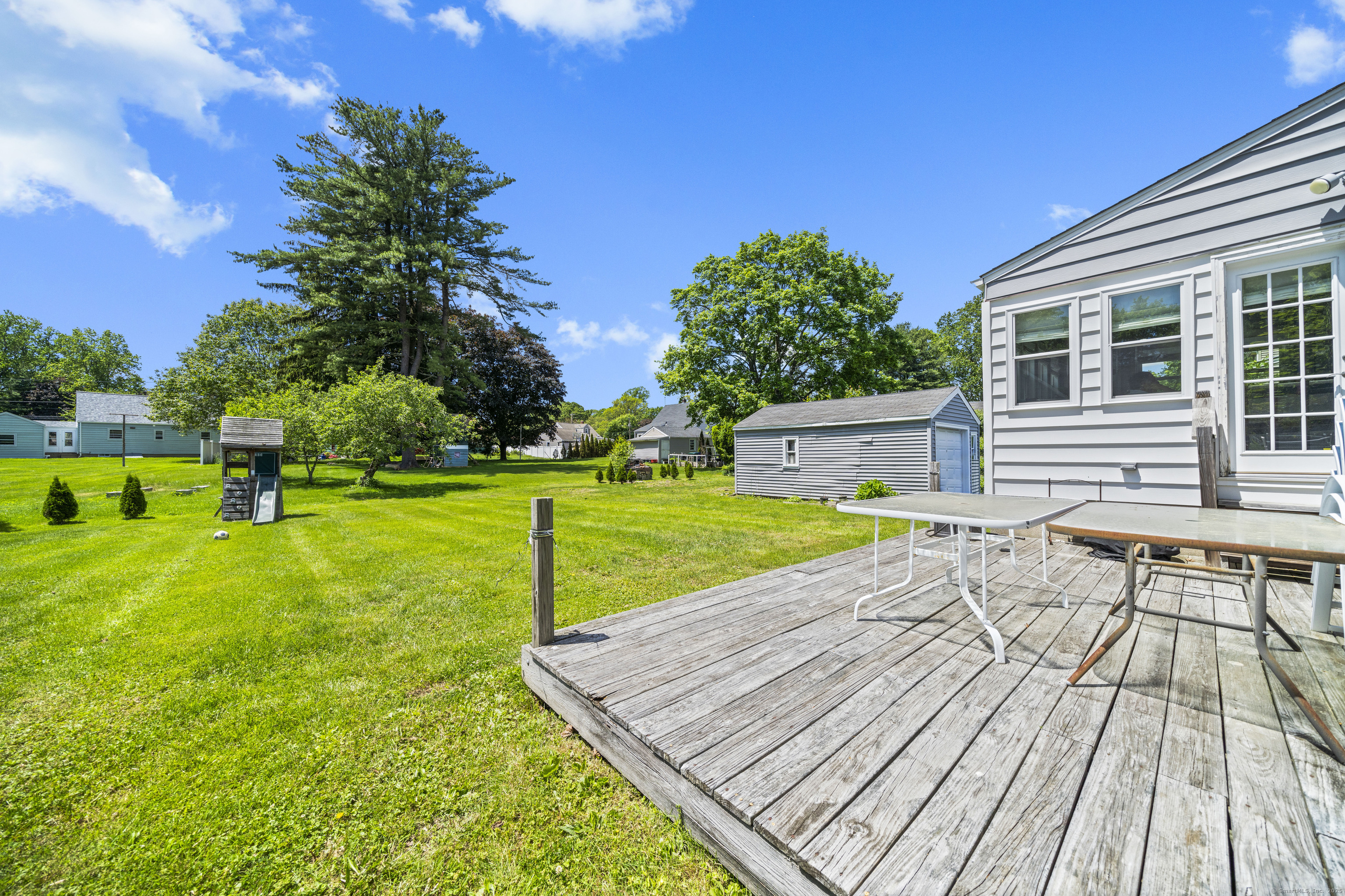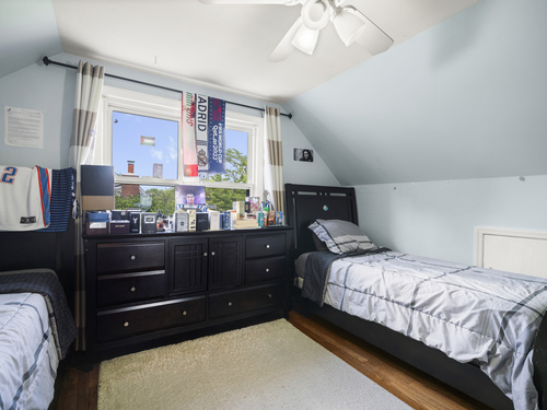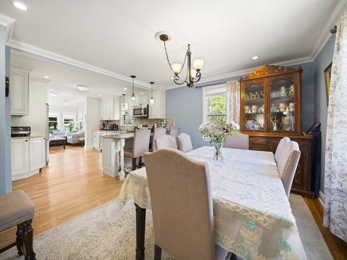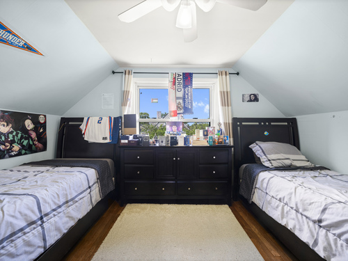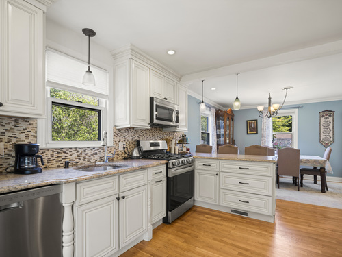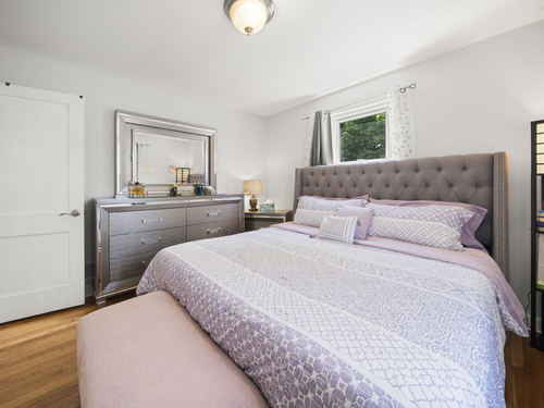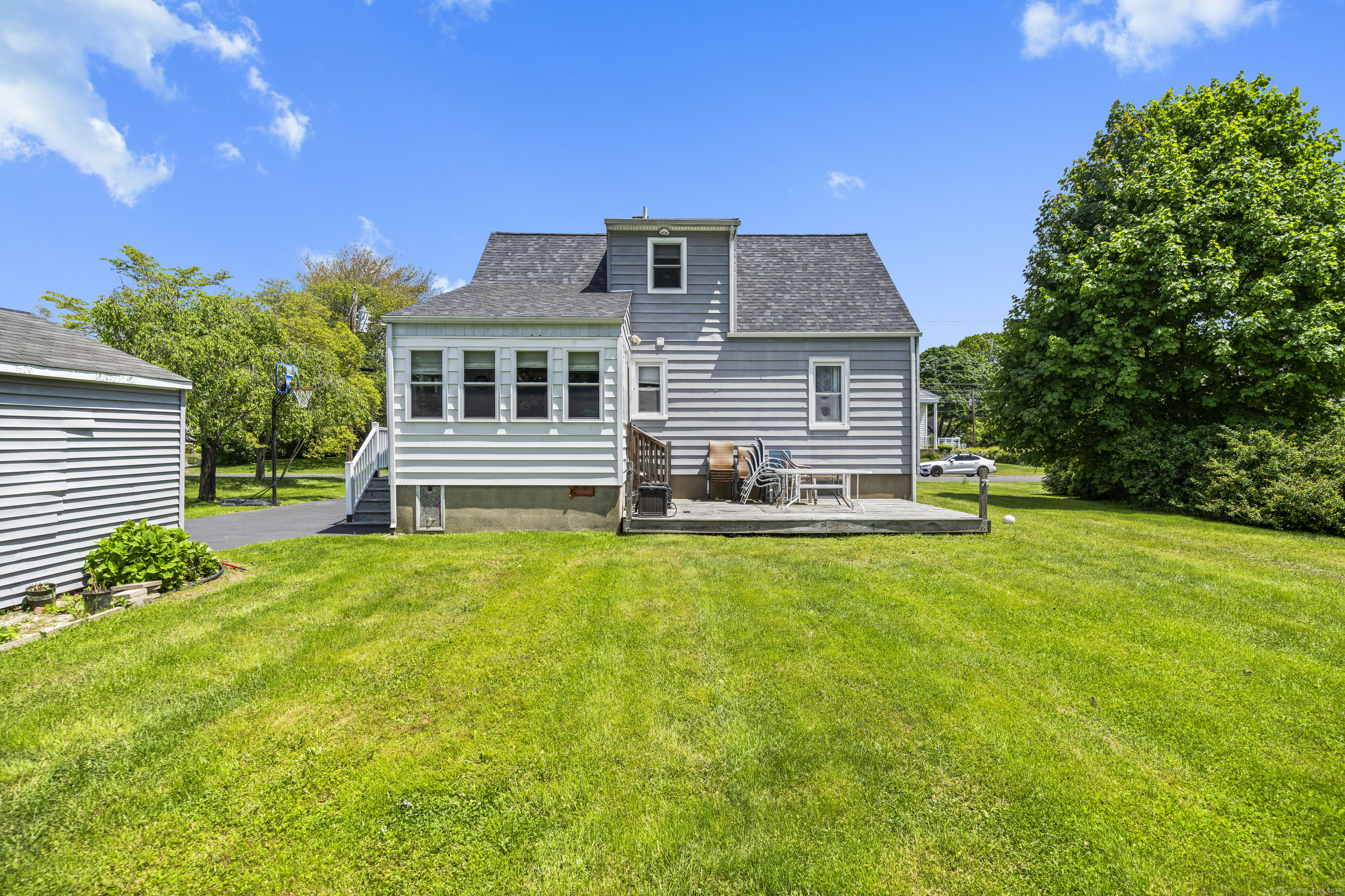 Welcome to this beautifully maintained Cape offering timeless charm and modern comfort. With three spacious bedrooms and two full bathrooms, this inviting residence provides a flexible layout. Step inside to find a warm and welcoming interior, featuring gleaming hardwood floors, freshly painted walls, and plenty of natural light. The home is equipped with central air conditioning to keep you cool and comfortable year-round. The kitchen is well-appointed and opens to a cozy dining area-ideal for everyday meals or entertaining. Upstairs, you'll find generously sized bedrooms with ample closet space, while the main level includes a convenient first-floor bedroom and full bath. Outside, enjoy a flat, landscaped backyard, perfect for barbecues, play, or relaxation. The yard offers space for a garden or patio, and it's easy to maintain. This home combines classic design with thoughtful updates, making it a true gem in a desirable neighborhood.