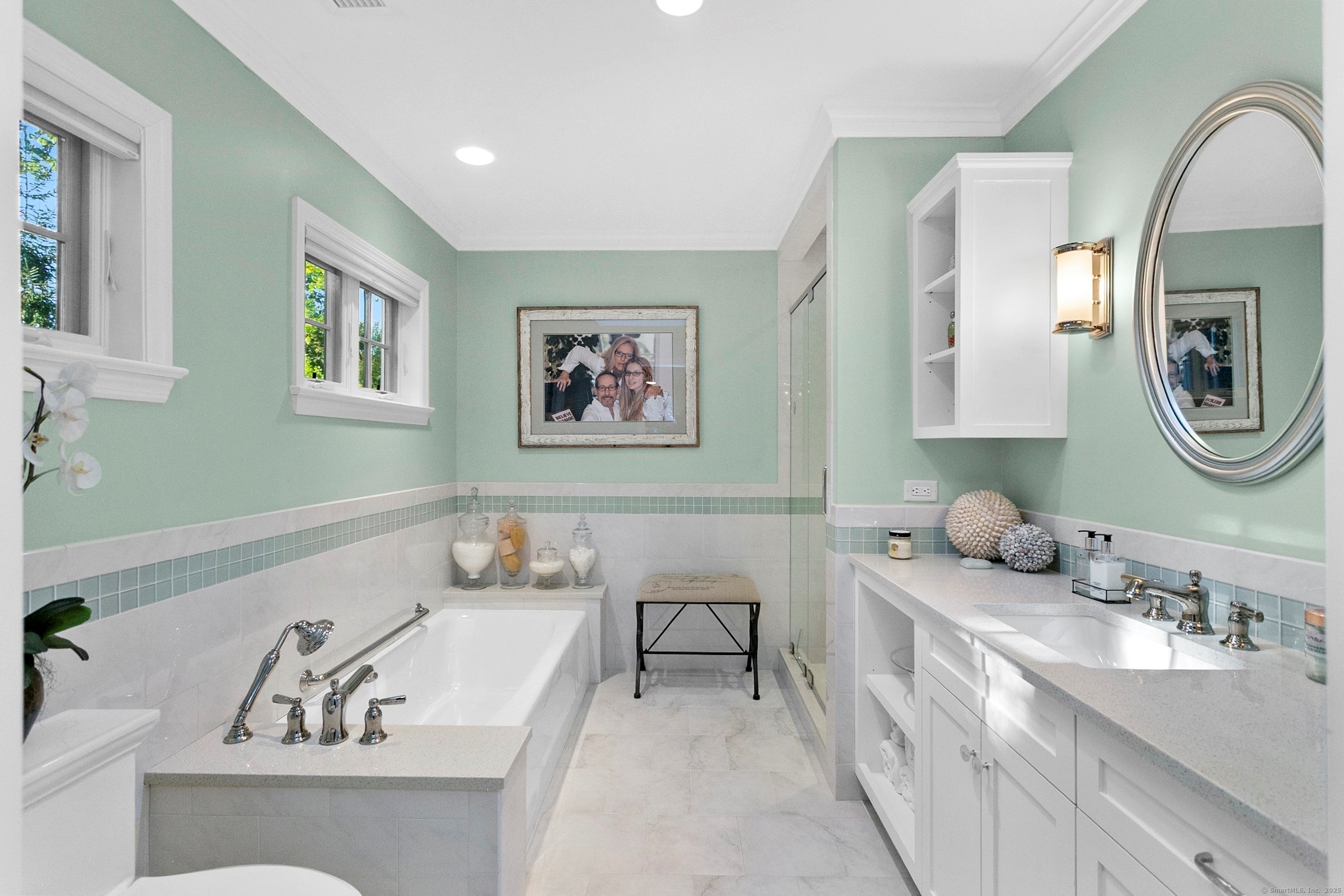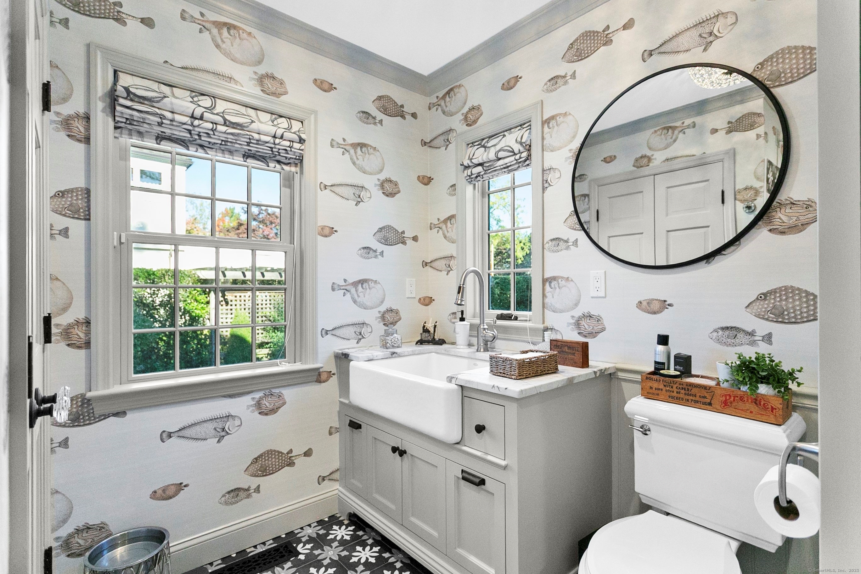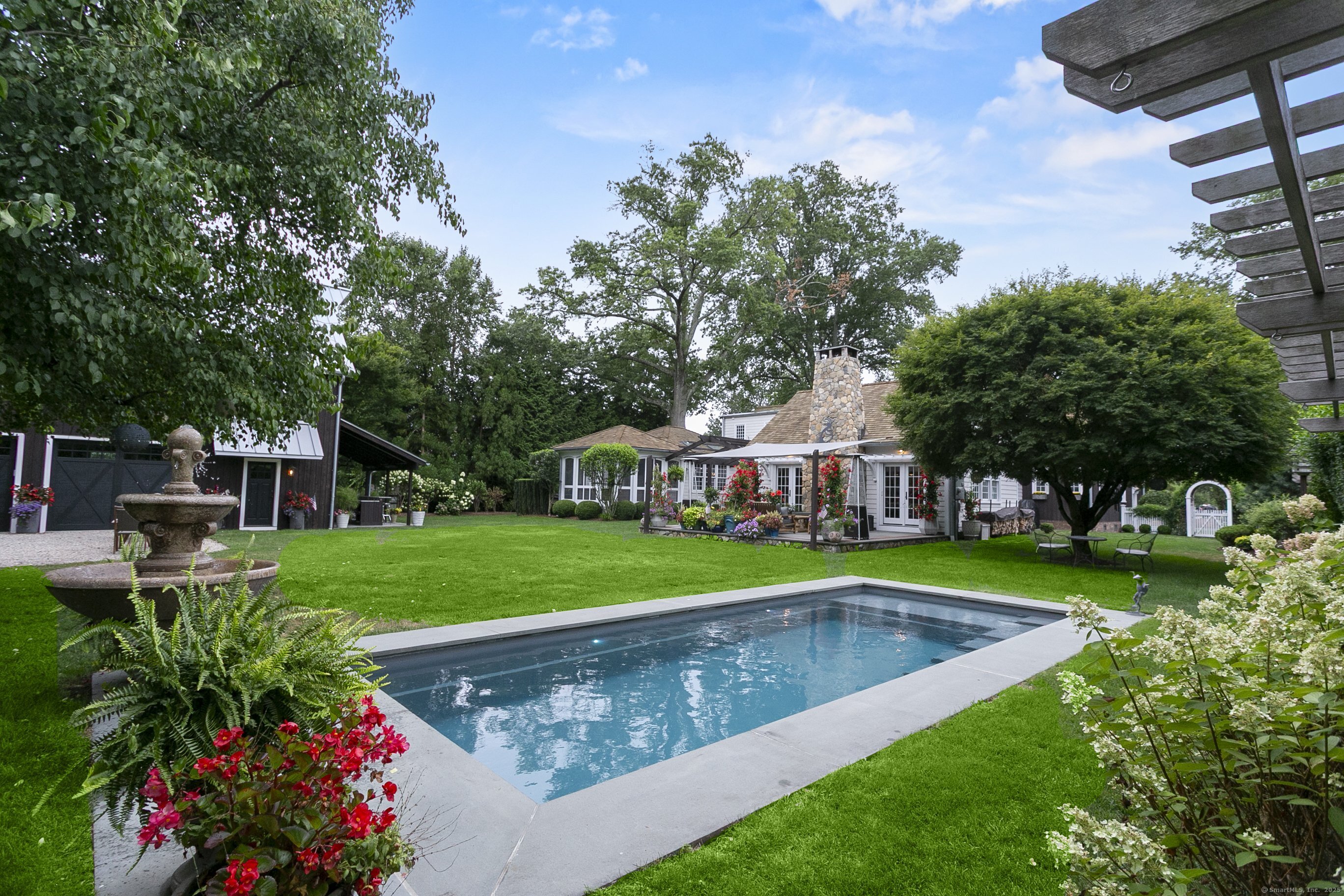 Nestled on one of Fairfield's most coveted streets where the beach, town, & coastal charm are just steps away- this extraordinary 1944 farmhouse is a rare offering that blends timeless New England character w/ every modern luxury. Once part of the Annie B. Jennings estate, this completely reimagined 4,038 sq. ft. residence sits on nearly 3/4 of an acre, an unheard-of expanse in the beach area. Behind its storybook facade lies an entertainer's paradise & a sanctuary for everyday living. Inside, you'll find 2 luxurious primary suites, a state-of-the-art chef's kitchen designed for culinary artistry, & a great room that seamlessly connects warmth, light, & space. The home also incl a private office, fitness studio, & home theatre-every detail curated for today's lifestyle. Step outside, & the magic continues. A courtyard dining area for 14 sets the stage for unforgettable gatherings. Heated saltwater pool, 8-person hot tub, & flagstone patio w/fpl invite relaxation under the stars. An impressive covered outdoor kitchen w/ seating for 6 makes al fresco living effortless & elegant. Completing this dream property is a 2-story barn feat addl garage & legal in-law aptmt-perfect for guests, extended family, or creative studio space. W/ 5 total fireplaces, & a 5 car garage, a workshop, & meticulous craftsmanship throughout, this home represents the pinnacle of Fairfield coastal living. Every inch tells a story. Every detail exudes grace. This is more than a home- it's a legacy property