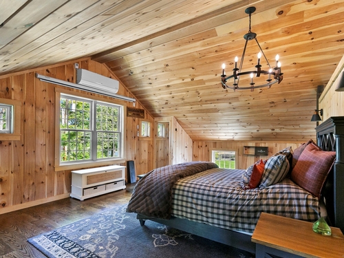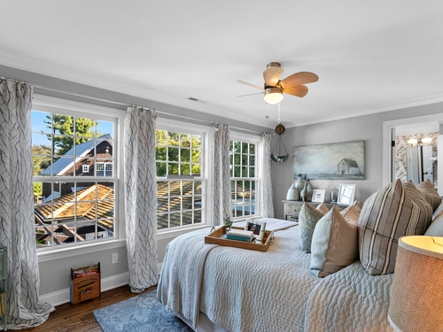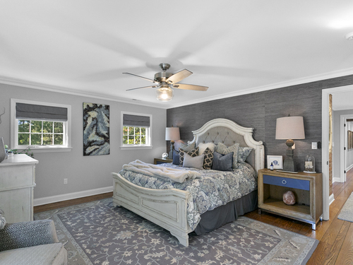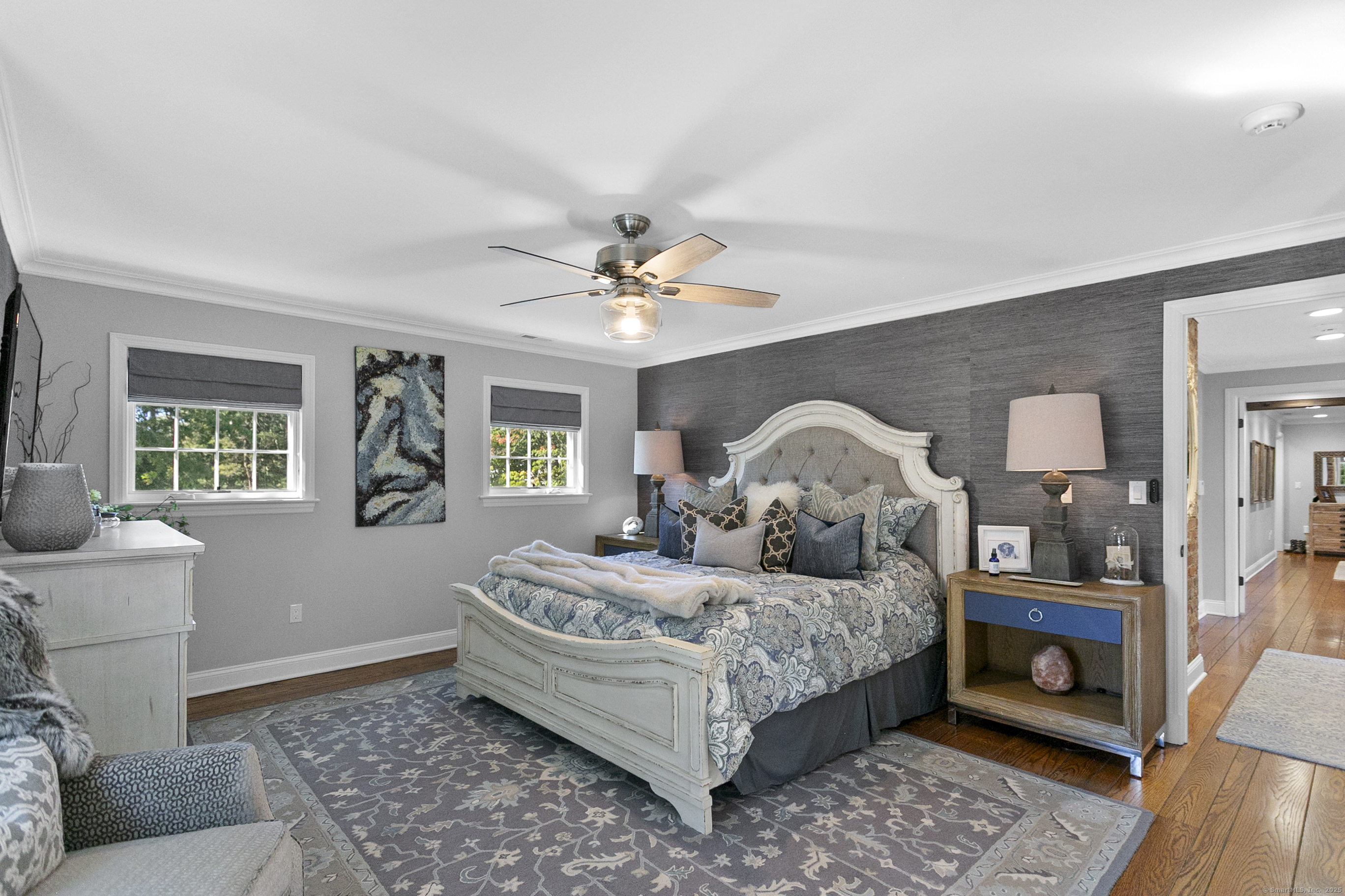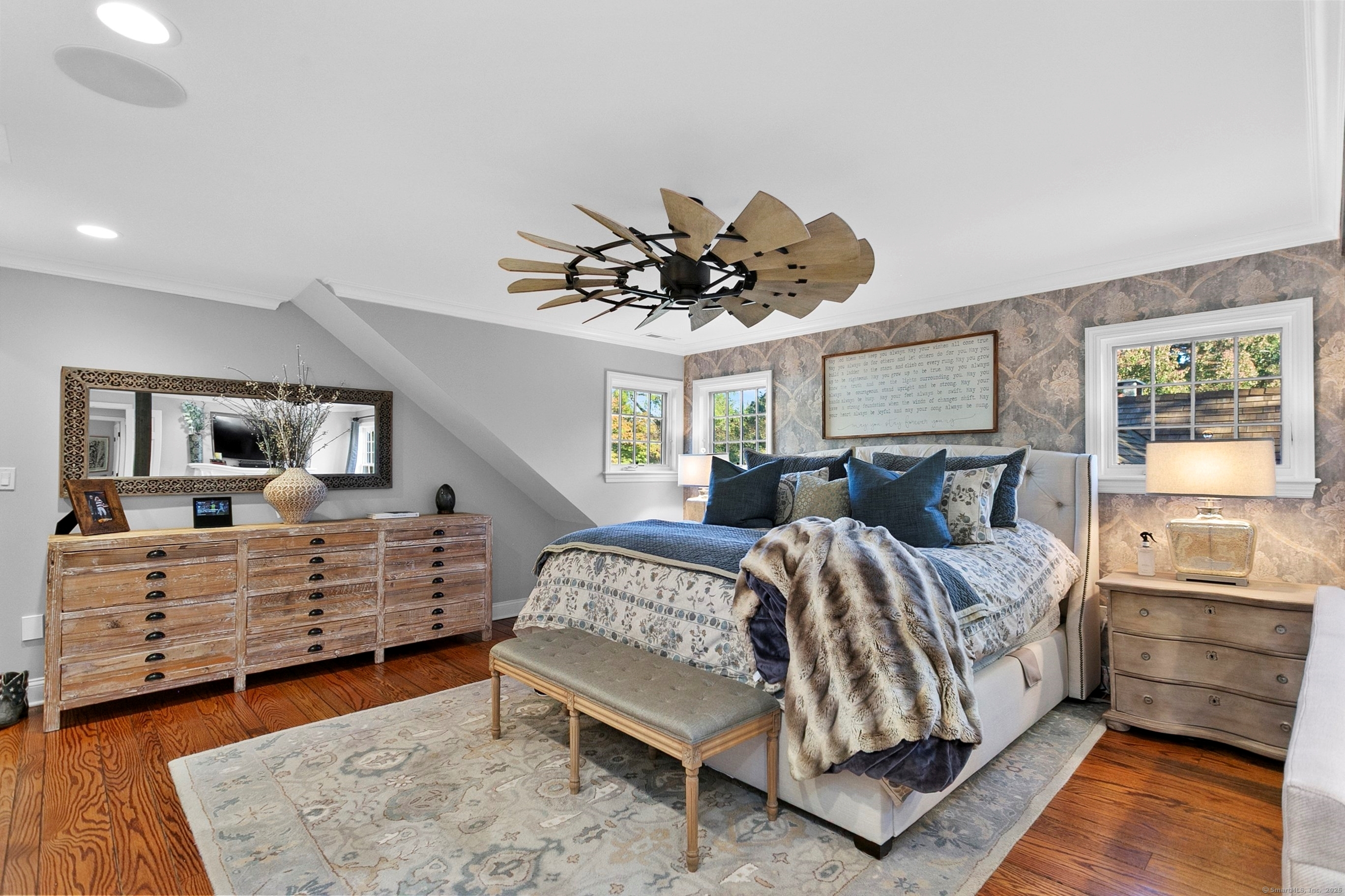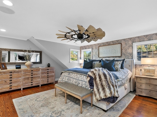 Beams, Bedroom Suite, Ceiling Fan, Gas Log Fireplace, Hardwood Floor